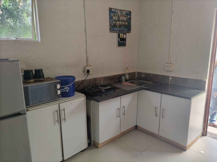 Peaceful urban retreat in Kelvin, Sandton — private garden and expansive yard with braai area and Wendyhouse; renovated kitchen and two bedrooms, two bathrooms.