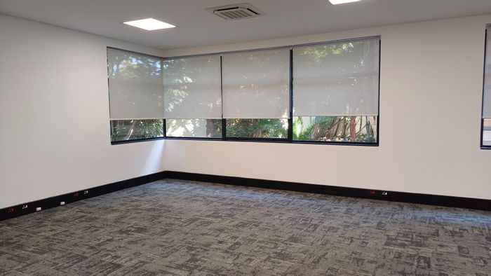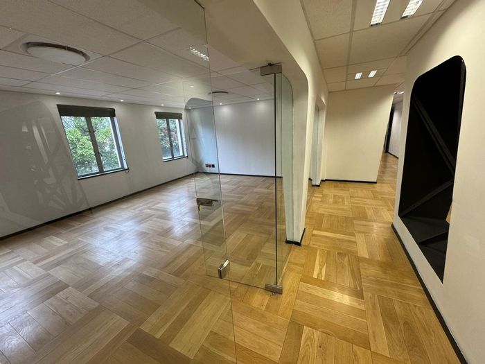 Prestigious Sandton office on Rivonia Road with on-site restaurant, reliable backup generator and secure parking — 242m² first-floor suite offering professional, uninterrupted workspace.