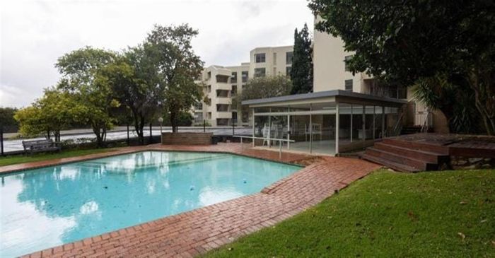 Effortless Sandton living in a fully furnished corner apartment at Sandhurst Towers, steps from Sandton City and Gautrain, open-plan kitchen/lounge, pool and braai area; two bedrooms, two bathrooms.