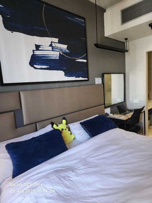Live hotel-style in central Sandown, Sandton with skyline views from a cosy balcony, high-speed Wi-Fi and on-site cinema, gym and restaurant — one bedroom, one bathroom.
