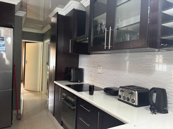 Secure, convenient living near Protea Glen Mall and N12, ideal for commuters and families; open-plan lounge and fitted kitchen, 24-hour security with boom gate, three bedrooms, two bathrooms, covered parking.