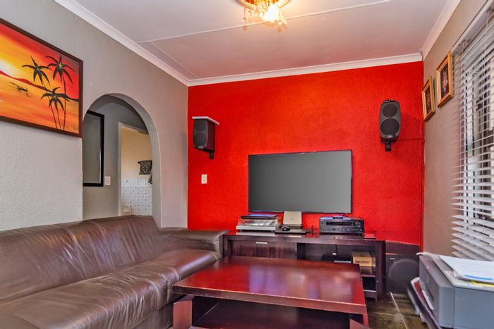 Relaxed family living with easy access to shops, schools and transport in Protea North, Gauteng; veranda and private garden, three bedrooms, guest WC and covered parking for four.