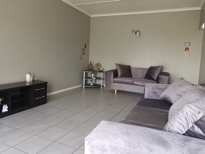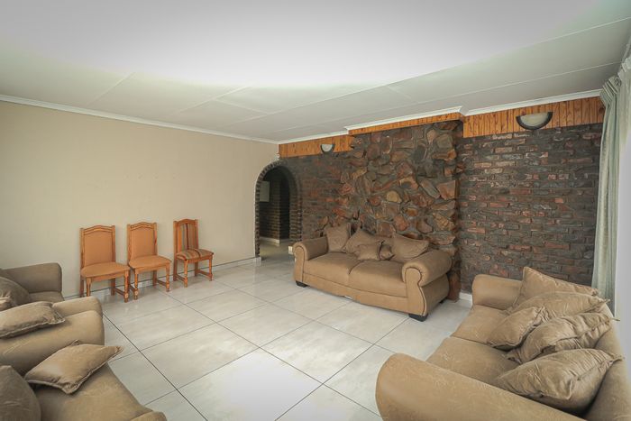 Private, secure living on a generous stand with expansive landscaped grounds and fruit trees; large indoor entertainment area with built-in bar convertible to a two-bedroom flatlet — five bedrooms, three bathrooms.