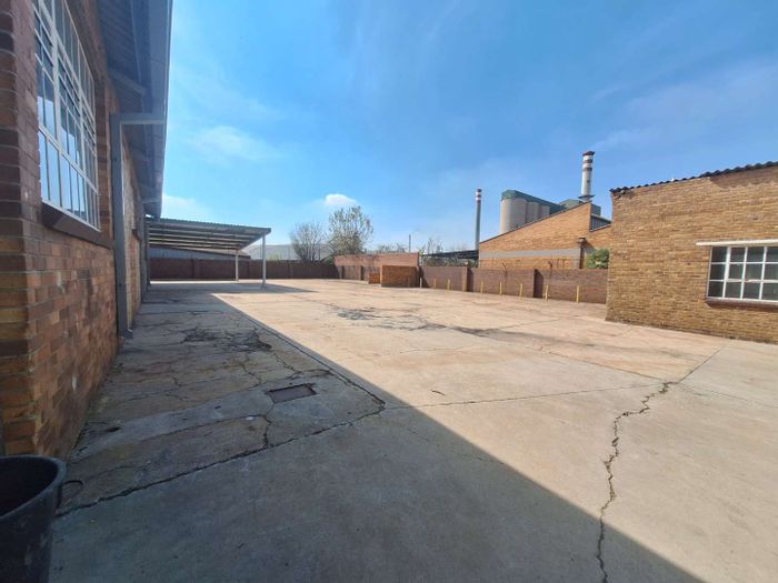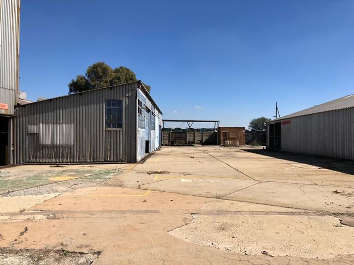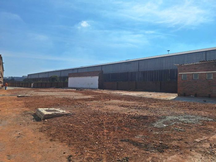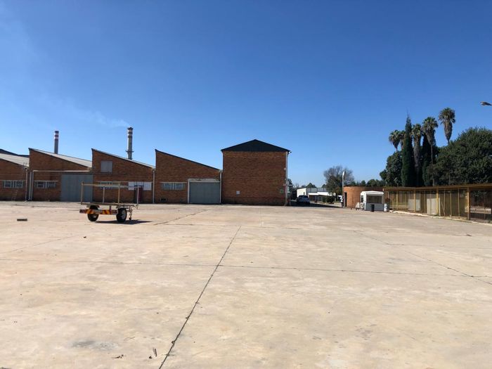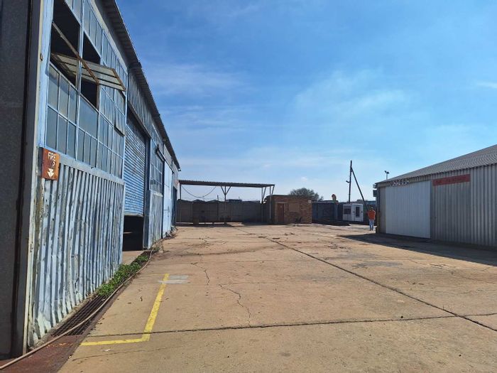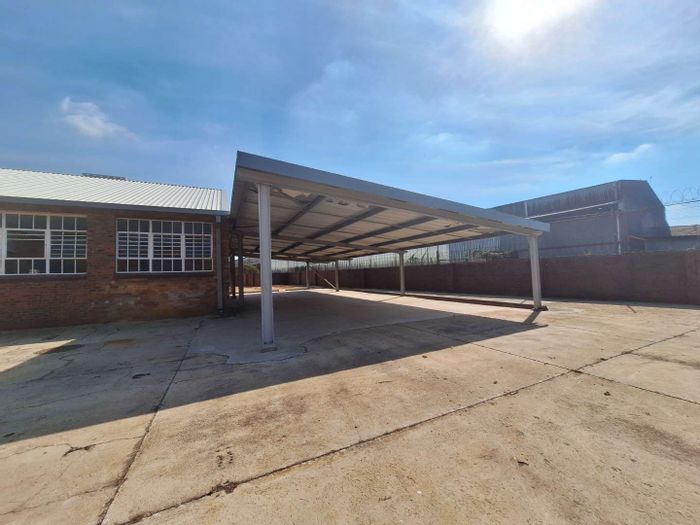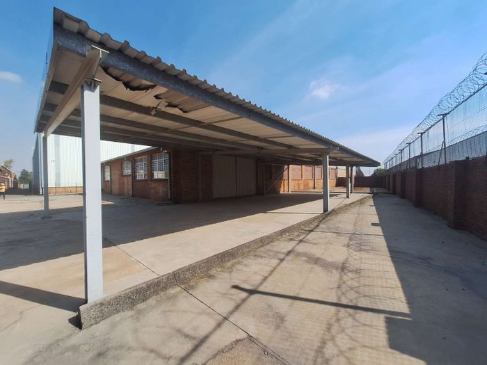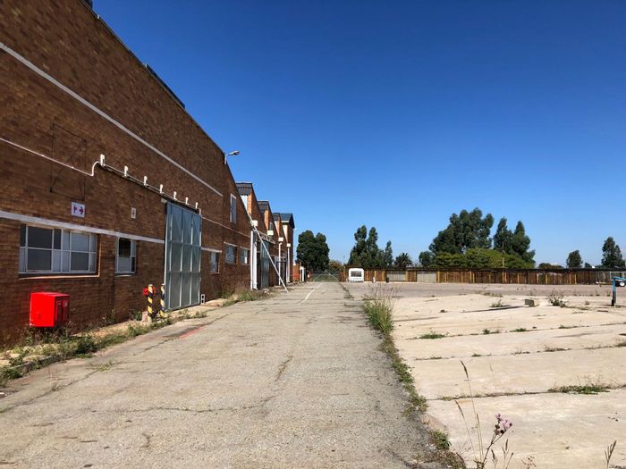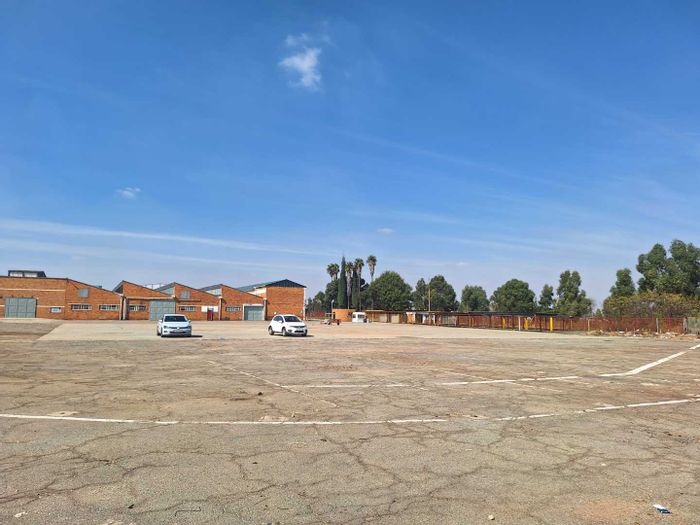 Secure 10,000m² industrial yard in New Era Industrial Park, Springs — 24‑hr guarded entrance and dogs, parking awnings, landlord assists with fencing. Ideal for trucking, logistics; optional 6×90m² mini-storage R45/m².