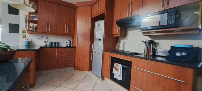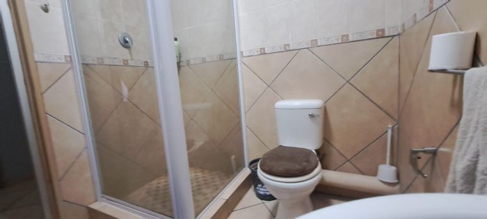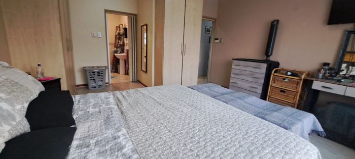 Lock-up-and-go living in a six-unit secure complex near shops and the hospital, with private entertainment area featuring built-in braai and splash pool — two bedrooms, two bathrooms, double garage.