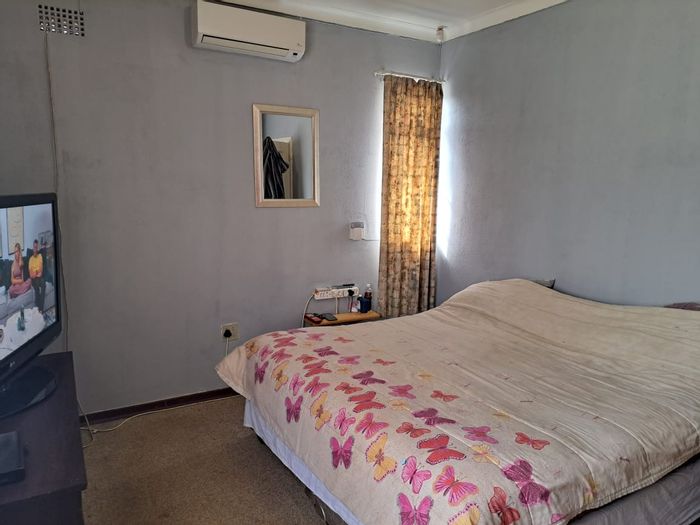 In a family-friendly area, dual-entrance home with rentable full flat, paved low-maintenance yard and covered braai area; enclosed verandas, walk-in dress room, 4 beds, 2 baths, parking.
