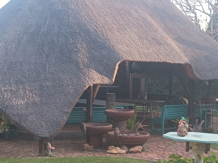 Entertaining family life in a peaceful suburban setting with expansive yard; extra-large wendyhut with built-in braai provides perfect event space. Four beds, two baths, double garage.