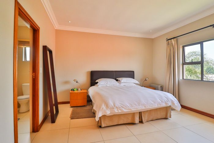 Relaxed waterfront living at Vaal Marina with members-only watersports access; outdoor entertainment deck with pool and jacuzzi, five bedrooms, five bathrooms, double garage.