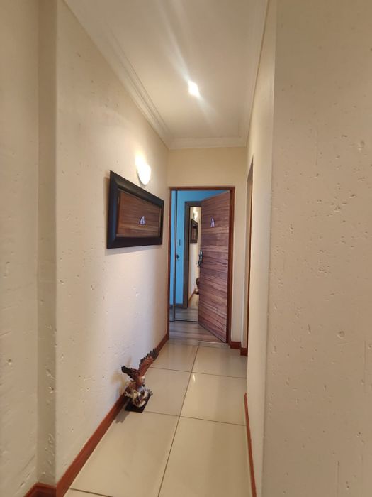 Sunny corner unit in prime Vanderbijlpark, offering generous open-plan lounge and kitchen, private patio and main en-suite — two bedrooms, two bathrooms and covered parking.