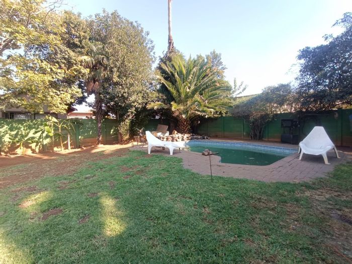 Entertainer’s backyard with pool and lapa on a generous 731 m² plot in a quiet neighbourhood; open-plan living, wooden kitchen and fibre internet. Three bedrooms, two bathrooms, covered parking.
