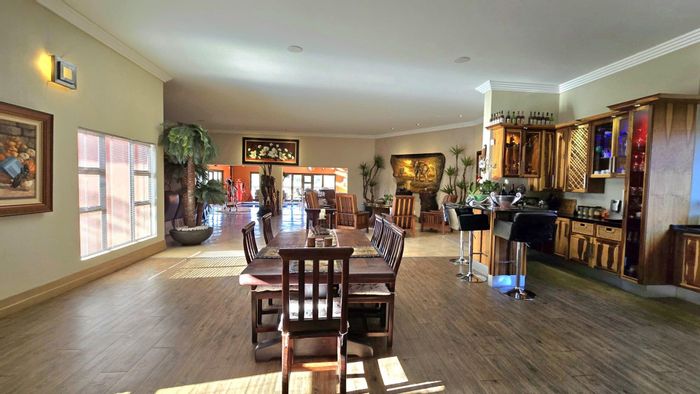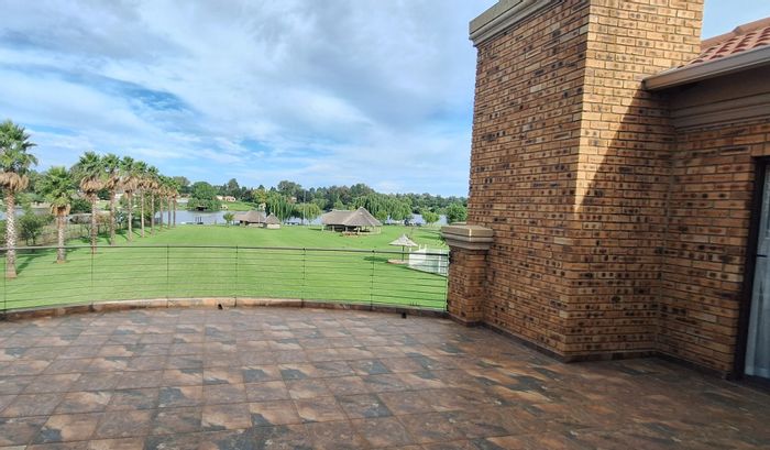 Riverside guest house on the Vaal offering sweeping river views, boat launch, jetty and boathouse, expansive entertainment patio with gas braai, workshop and staff quarters — 7 bedrooms, 4 baths.