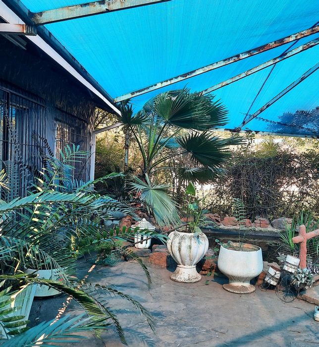 Spacious plot ideal as guesthouse, Airbnb or function venue — massive built-in bar, huge kitchen, dam with fruit trees, three boreholes and 3‑phase power. 4 beds, 5 baths, double garage, 4‑car carport.