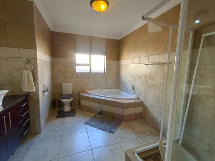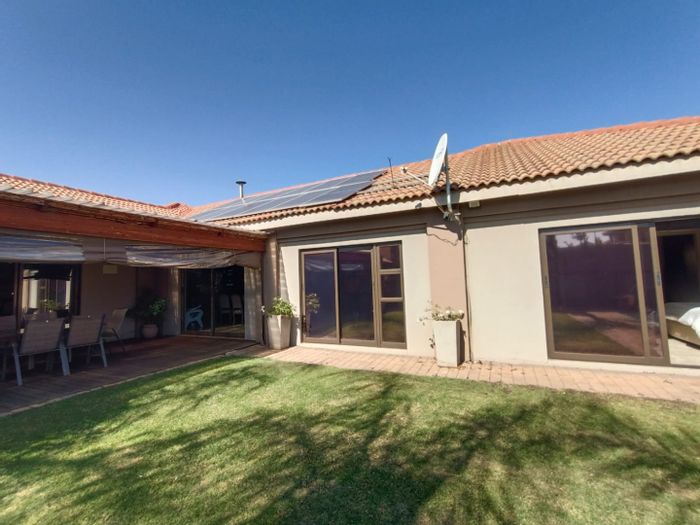 Resort-style living in a 24-hour secure estate with sparkling pool, braai entertainment area and expansive yard. Modern wooden kitchen, main ensuite with dressing room; four beds, two baths, double garage.