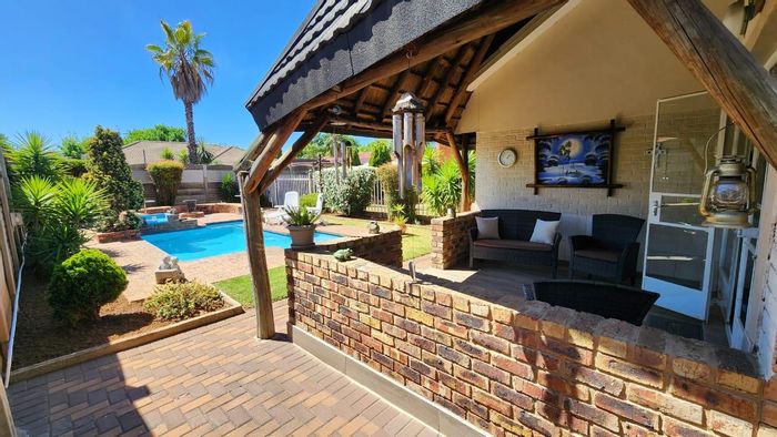 Entertainer’s oasis in a quiet, family-friendly neighbourhood, with pool, lapa and built-in braai flowing from an indoor entertainment room and lounge with fireplace; backup battery, borehole. 4 beds, 2 baths.