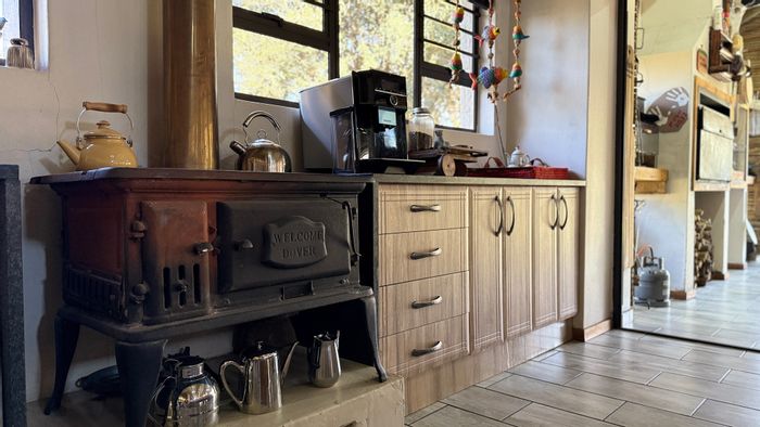 Tranquil country living with panoramic koppie views and expansive grounds, ideal for entertaining around a huge indoor fireplace and patio. Three bedrooms, two baths, double garage.
