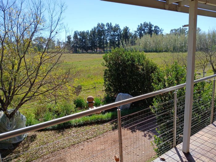 Quiet rural 4.4 ha smallholding with main house plus three extra dwellings, pool, lapa and braai, borehole about 2,500 L/h, caravan space and staff accommodation — live-and-earn.