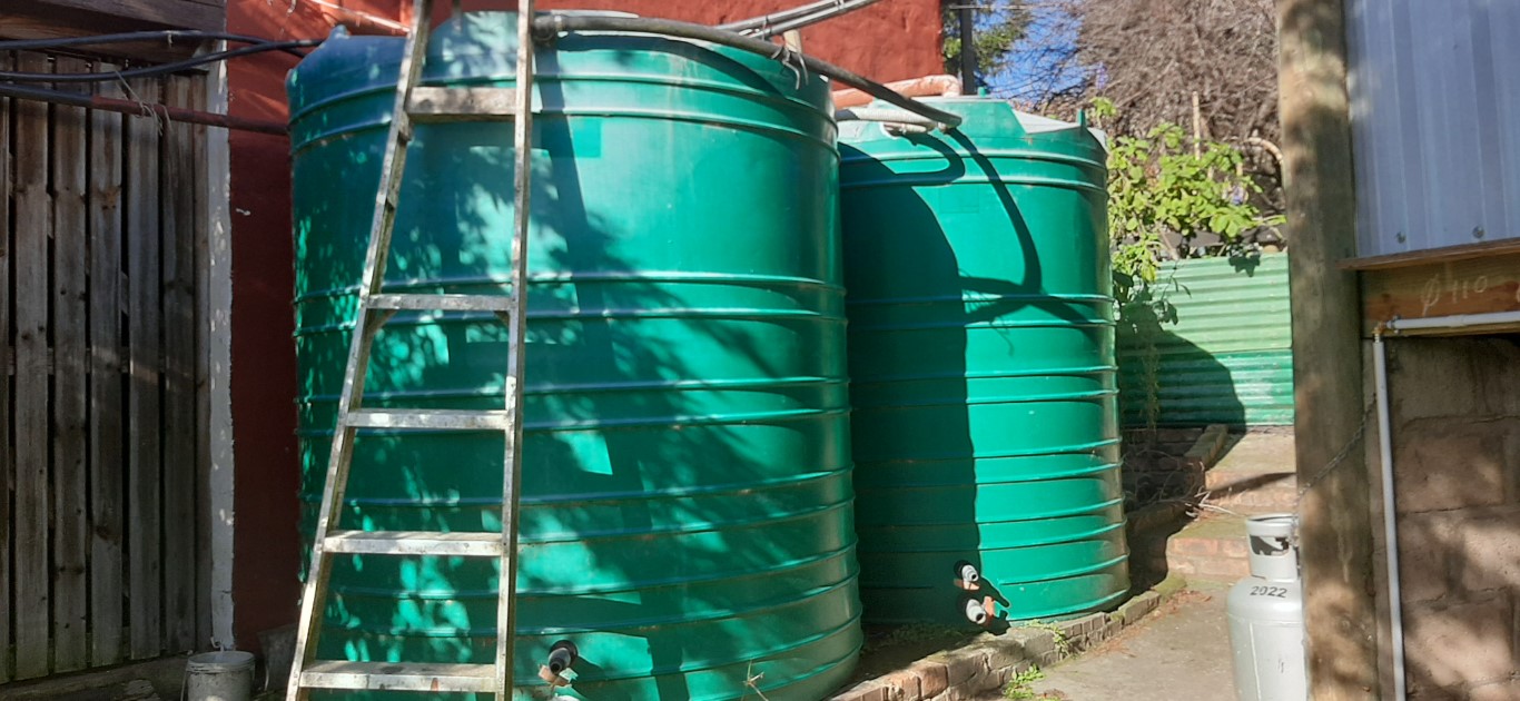 water tank under outside area guesthouse a 12m x 6 m x 2.5 dept off 180 000 L watertank under wooden deck an 8m x 4m x 2m
