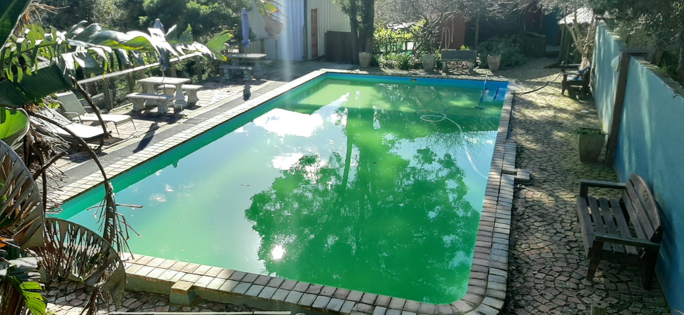 Overlooking the majestic Outeniqua Mountains, located only 10km from the George CBD and 8km from the George airport this property offers unrivaled access to some of the finest golf courses and beaches in the Garden Route. It is a combination of bed and breakfast and self catering accommodations. The property also includes a main house ( 4 bedrooms, 4 bathrooms approximately 550m2). There is a newly installed solar system and several water storage facilities making it self sufficient and off grid, yet having Eskom as backup power.