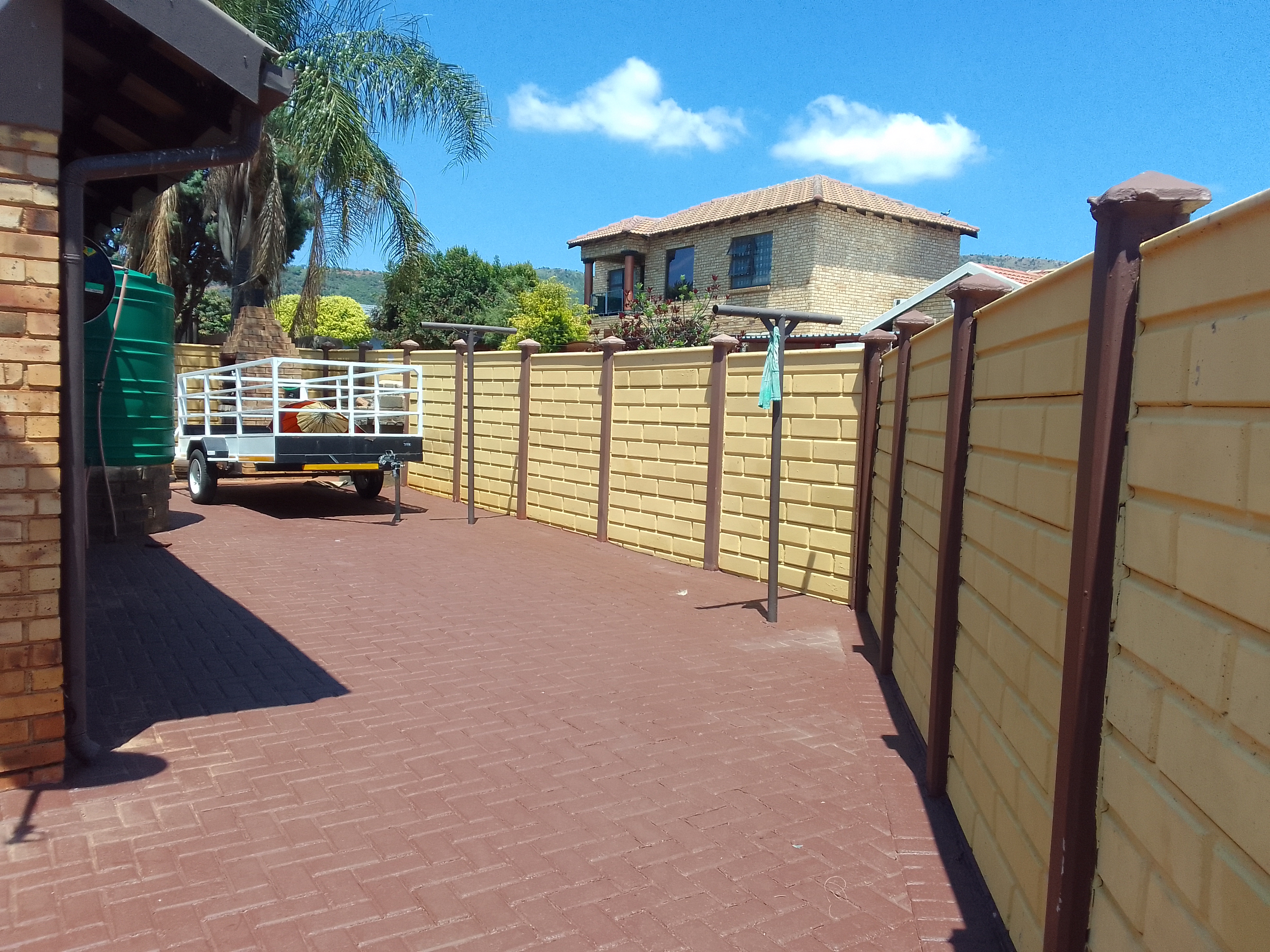 Practical features make this home even more appealing. A 5,000-litre water tank ensures reliable supply, and an air-conditioner keeps you cool during Rustenburg’s warm summers. Two Wendy houses outside provide excellent additional storage for tools and valuables.