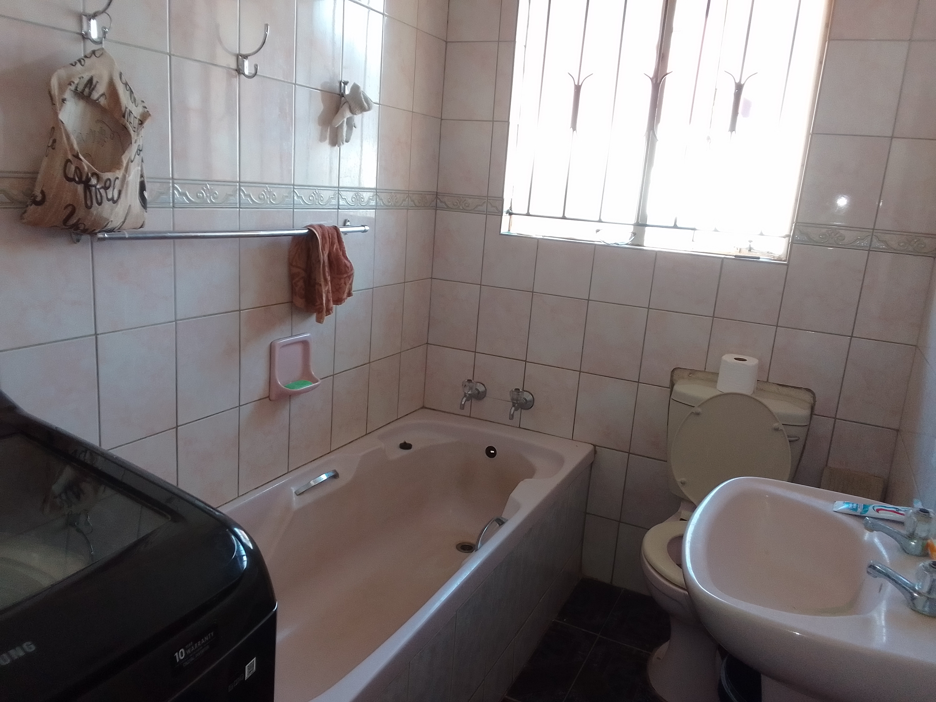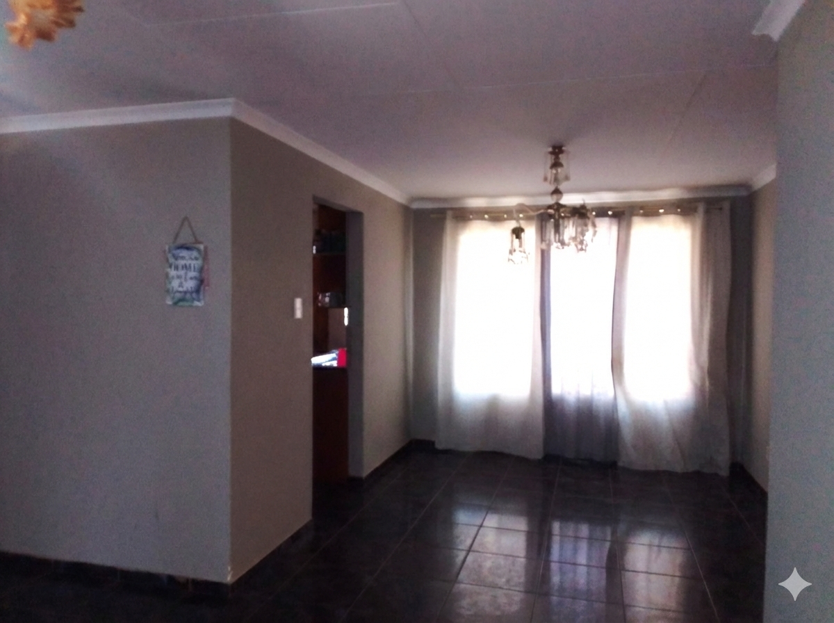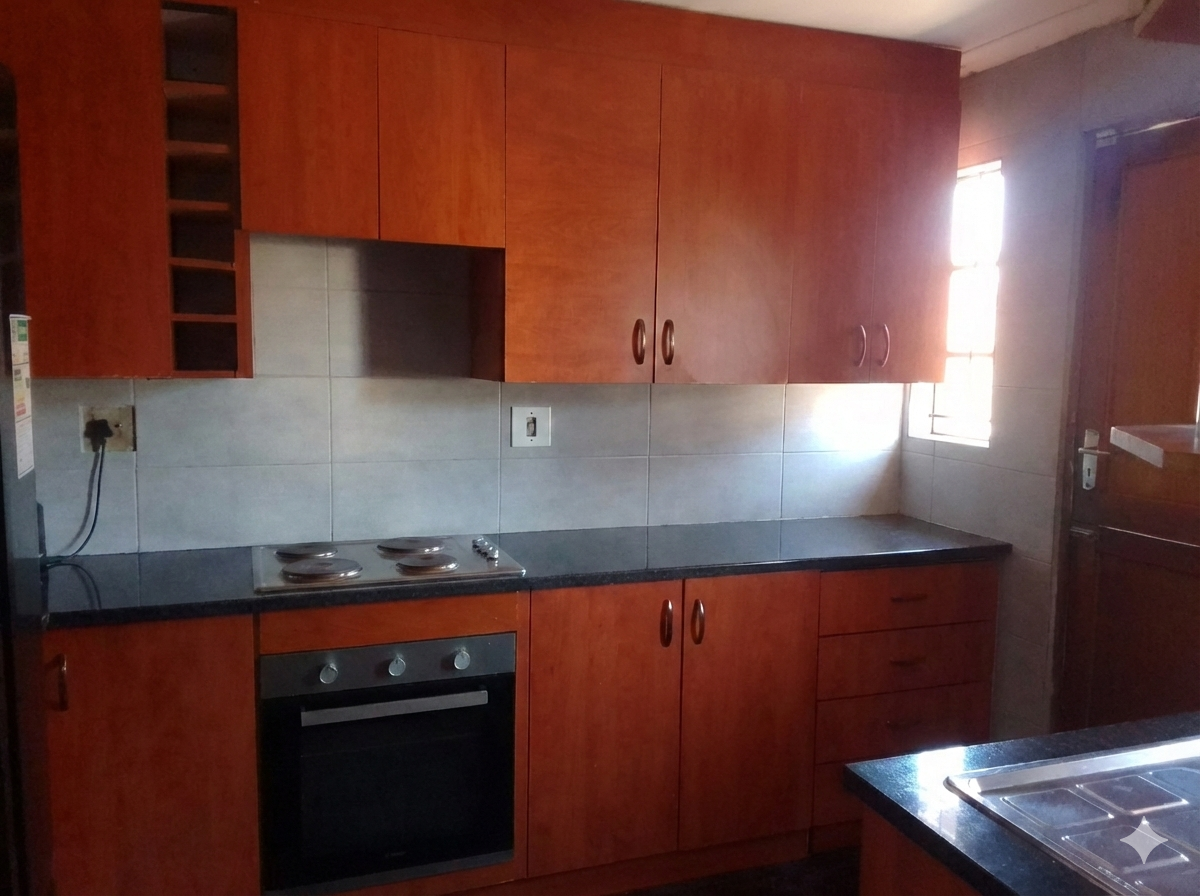 The open-plan lounge and dining area feature modern tiled floors and elegant chandeliers, creating a warm and inviting atmosphere. The fully fitted kitchen is well designed to meet all a chef’s needs.