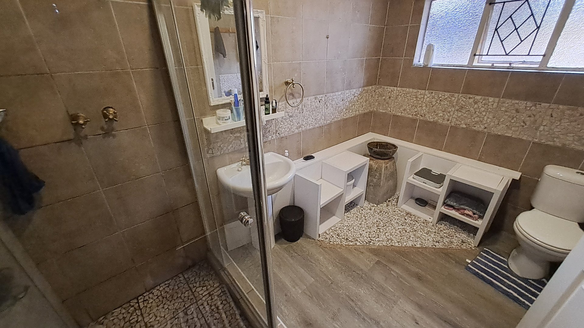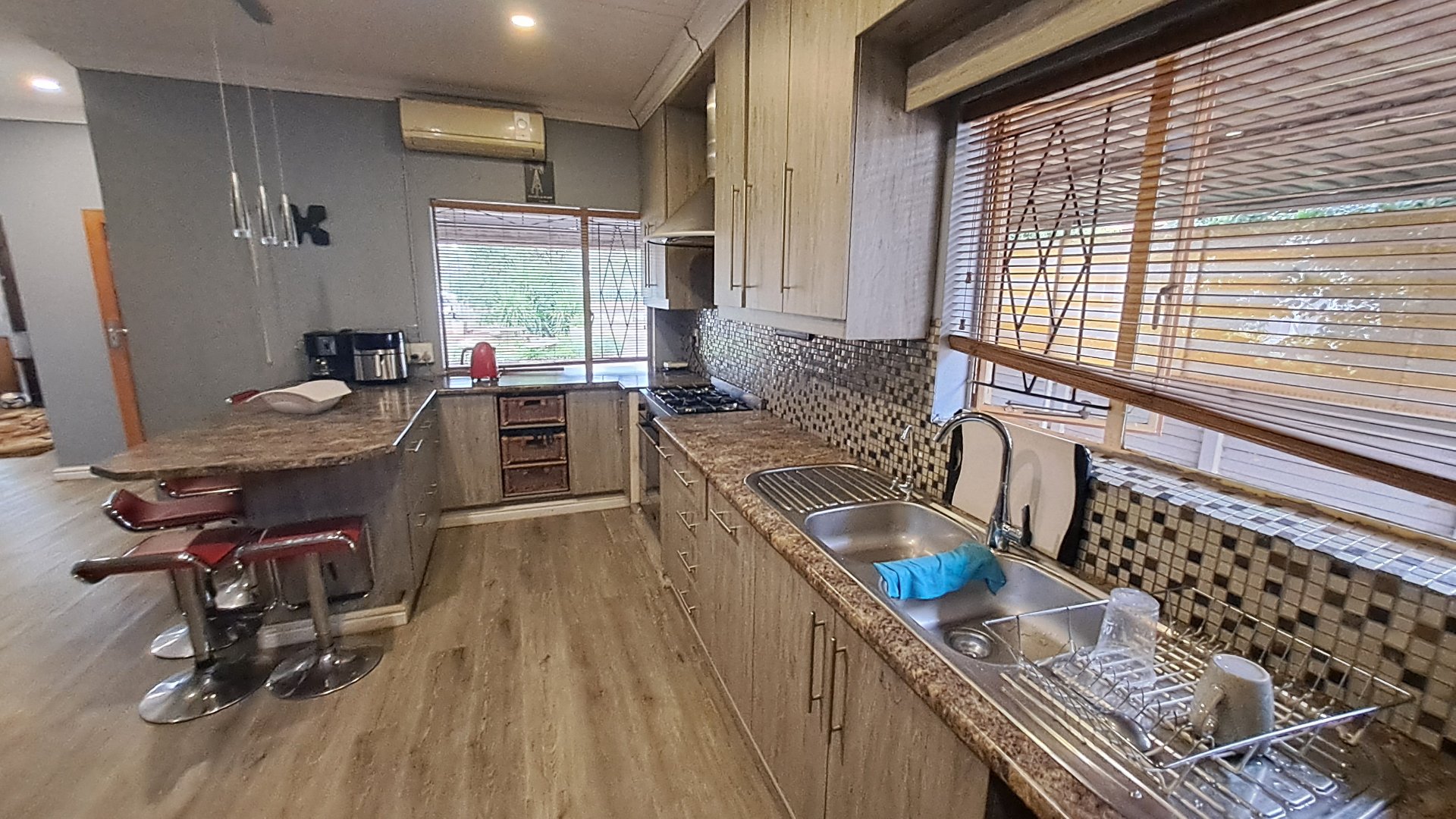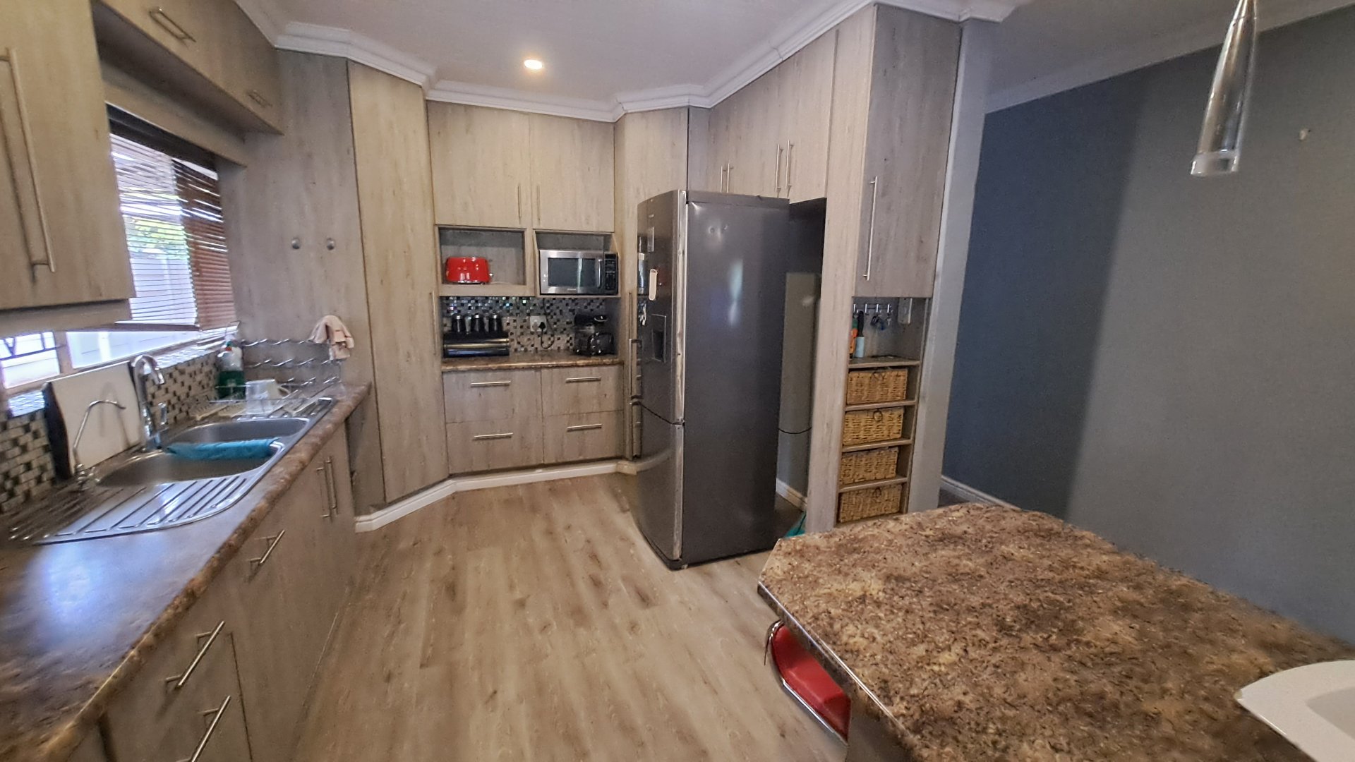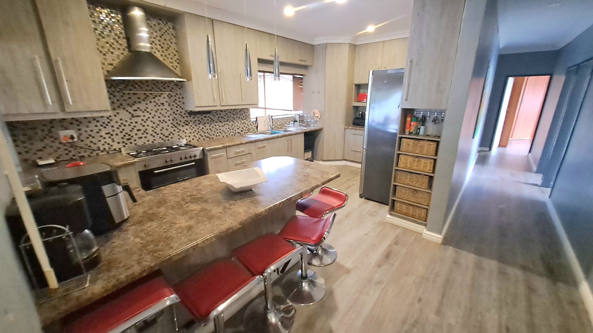 - Large, modern kitchen with granite counter tops, extraction fan, loose standing gas stove/electrical oven (negotiable for inclusion in sale), space for a double door fridge/freezer