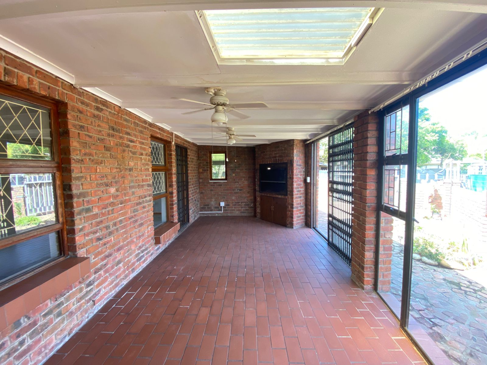 Both bedrooms are generously sized, bathed in natural light, and come with built-in cupboards for ample storage. The property also includes a Wendy house, ideal for storing tools, gardening equipment, or even as a small workshop for DIY projects.