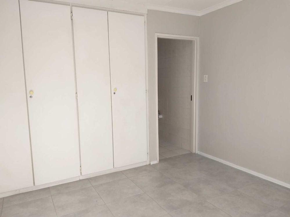 The kitchen is open plan to the light filled living room that has sliding doors that open to the back garden. The garden is just big enough for some flower beds on the one side and has a covered patio side where you can braai and entertain friends and family.