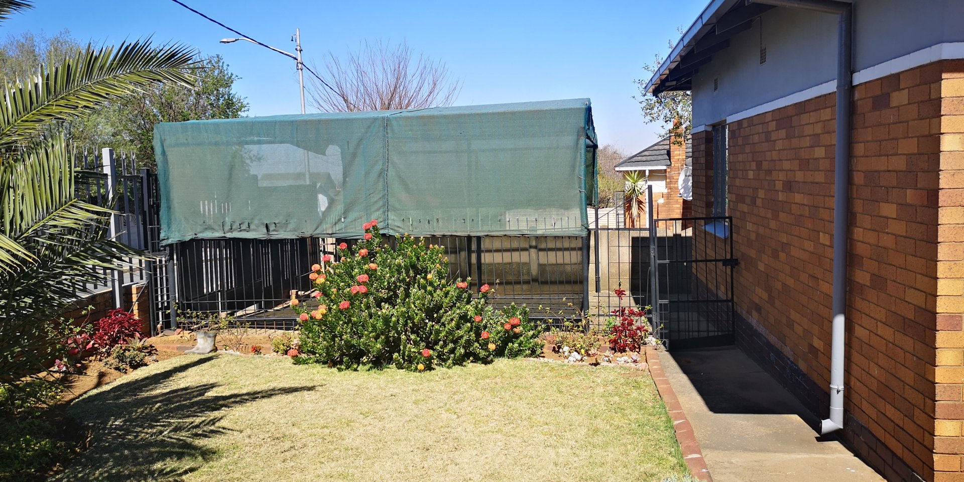 There is a single garage, double carports, palisade fencing with 2 entrances as it is a corner stand.