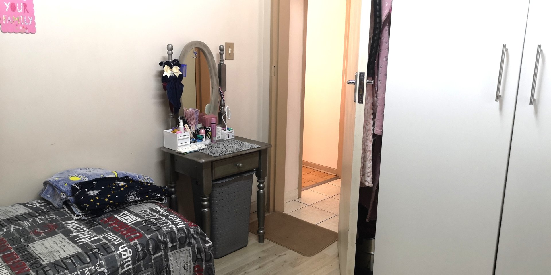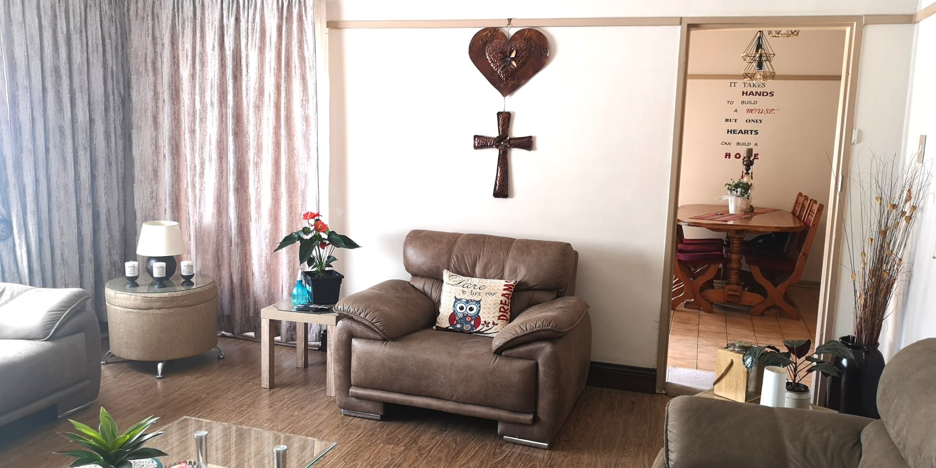 This home boasted 3 bedrooms with built in cupboards, one bathroom with a separate toilet. The entire house is tiled and no painting required. It has a large kitchen which has an expansive separate laundry which has a built cupboards which allows for storage galore.