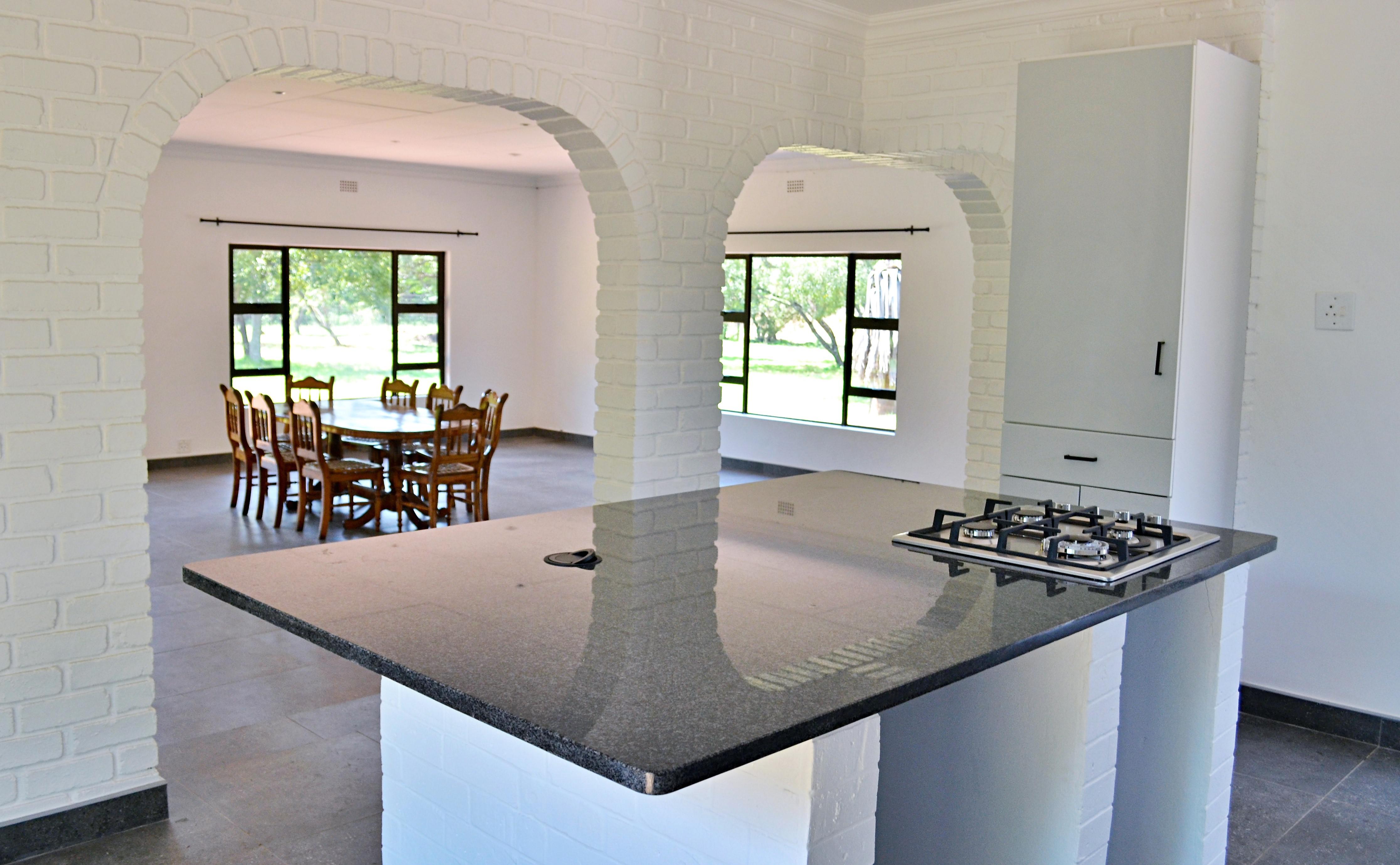 Very conveniently located on a corner 1-hectare stand. This very beautifully and tastefully renovated home offers a stylish new island prep bench kitchen and walk-in pantry with an open plan arched view of the lounge and dining room. A big sliding door leads out onto a good-sized patio for lazy day sundowners. There is also enough space in the garden next to the patio for a pool should one like to put one in.