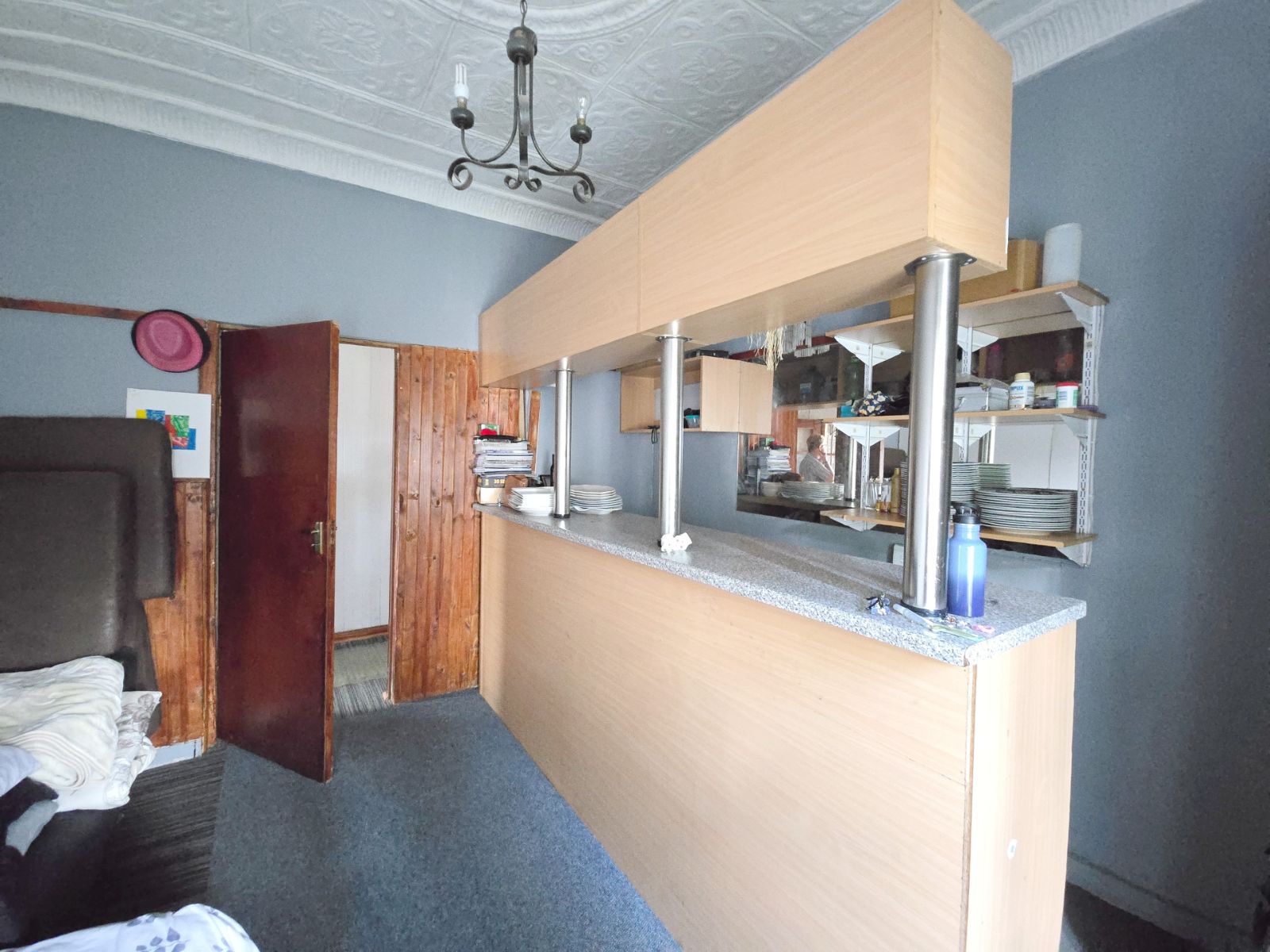 Spacious living room with build in bar