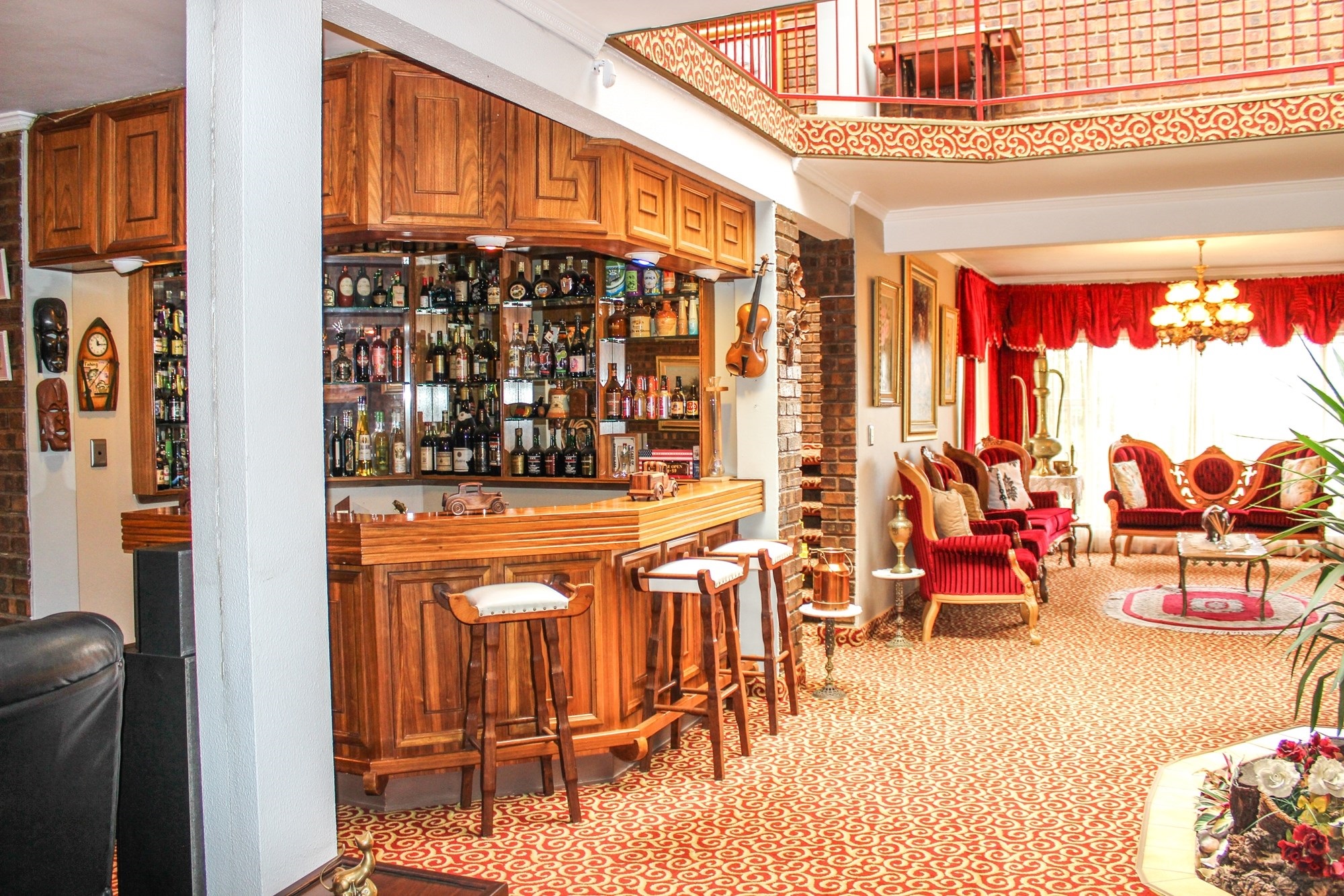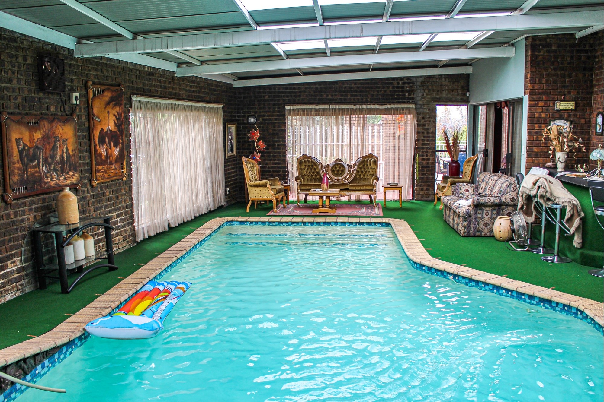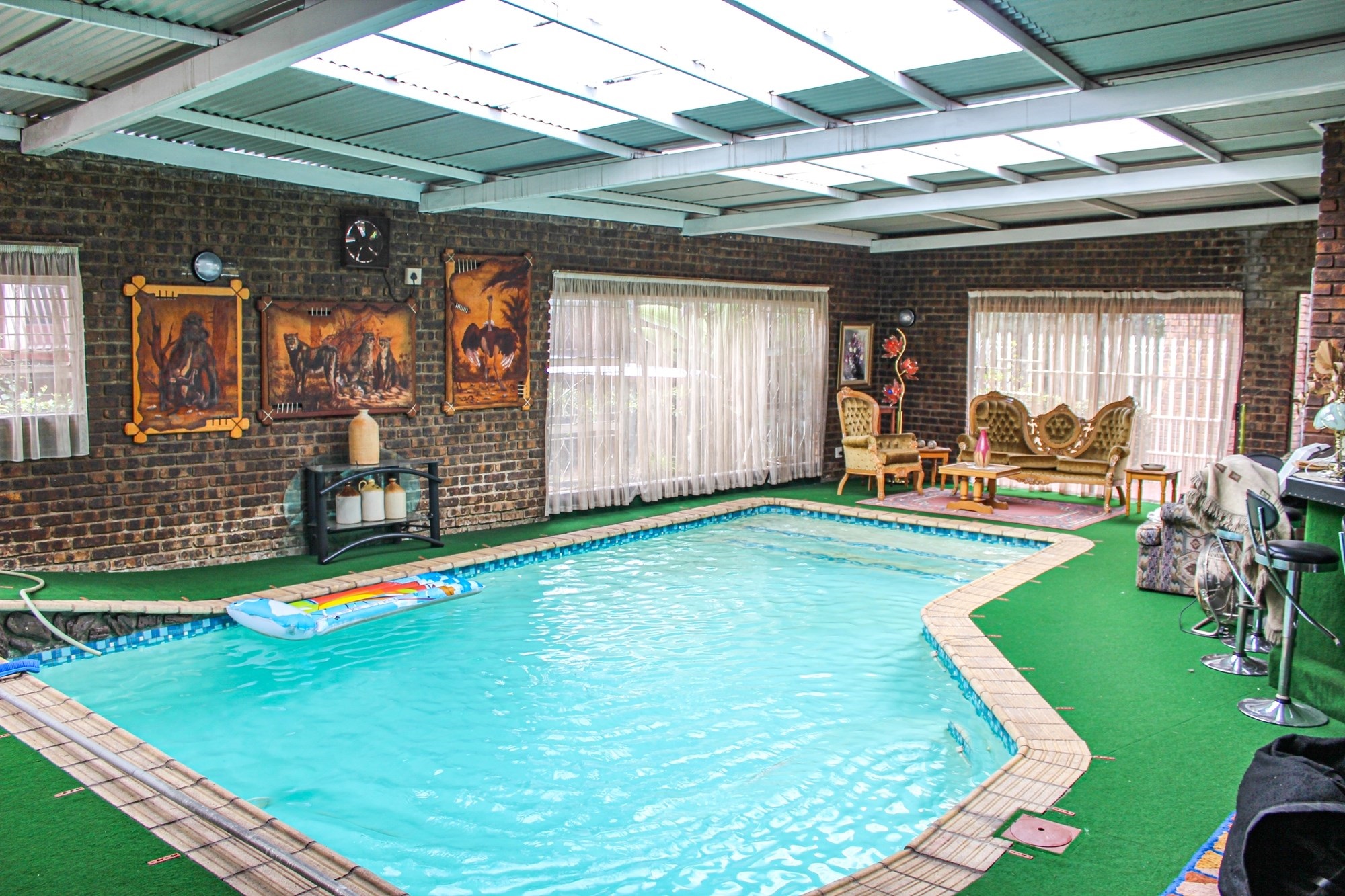 On the entertainment level, indulge in a large indoor heated swimming pool with a second built-in bar, ideal for year-round enjoyment. A full-size Union Billiards table is included in the sale—turn this space into the ultimate leisure zone! Adjacent lies a one-bedroom flatlet with en-suite, perfect for guests or as an additional entertainment suite.
