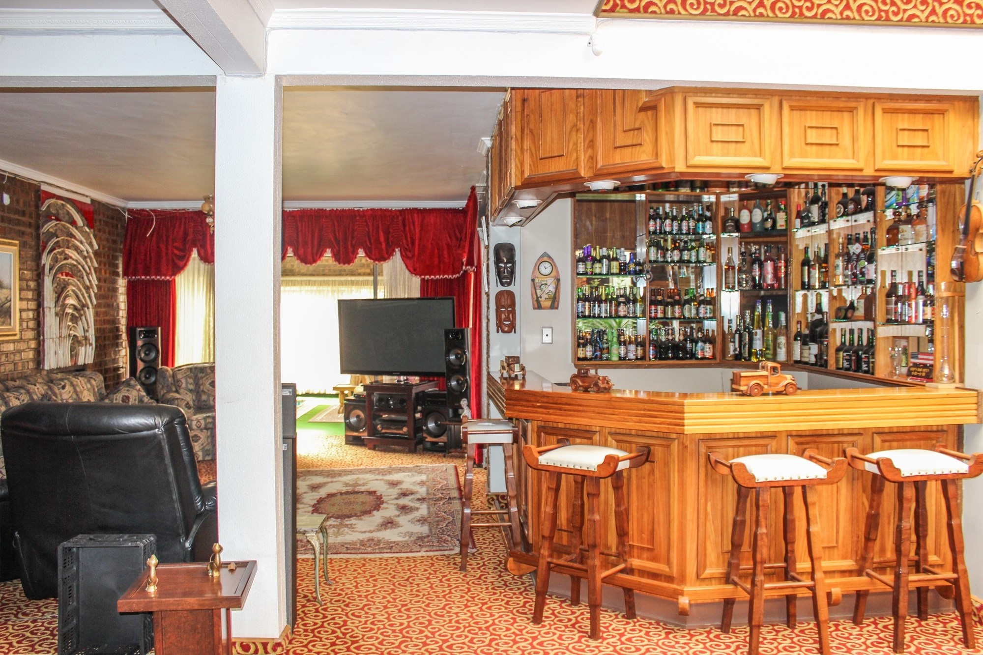 Built-in bar off the TV room