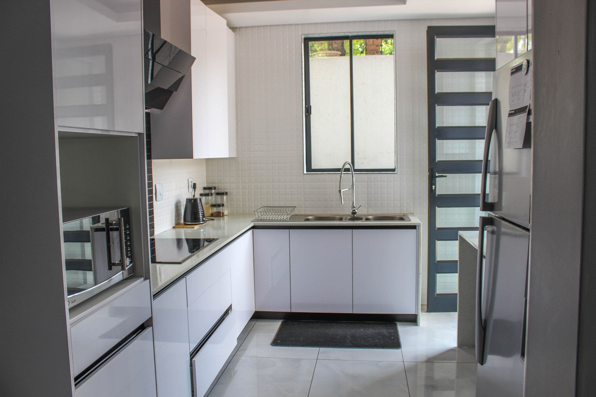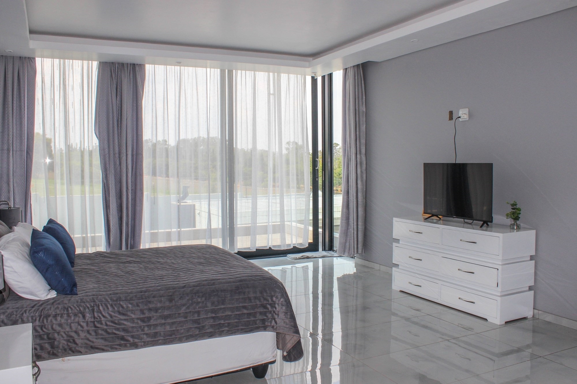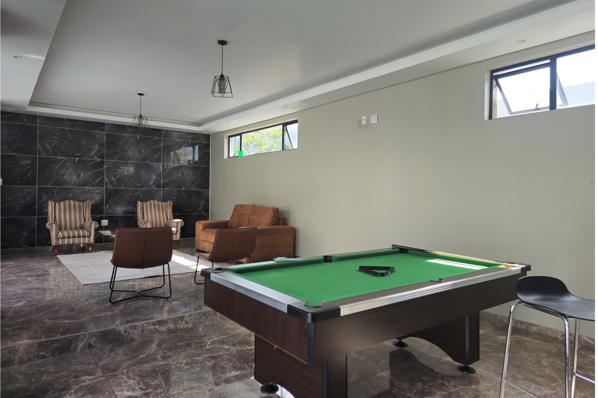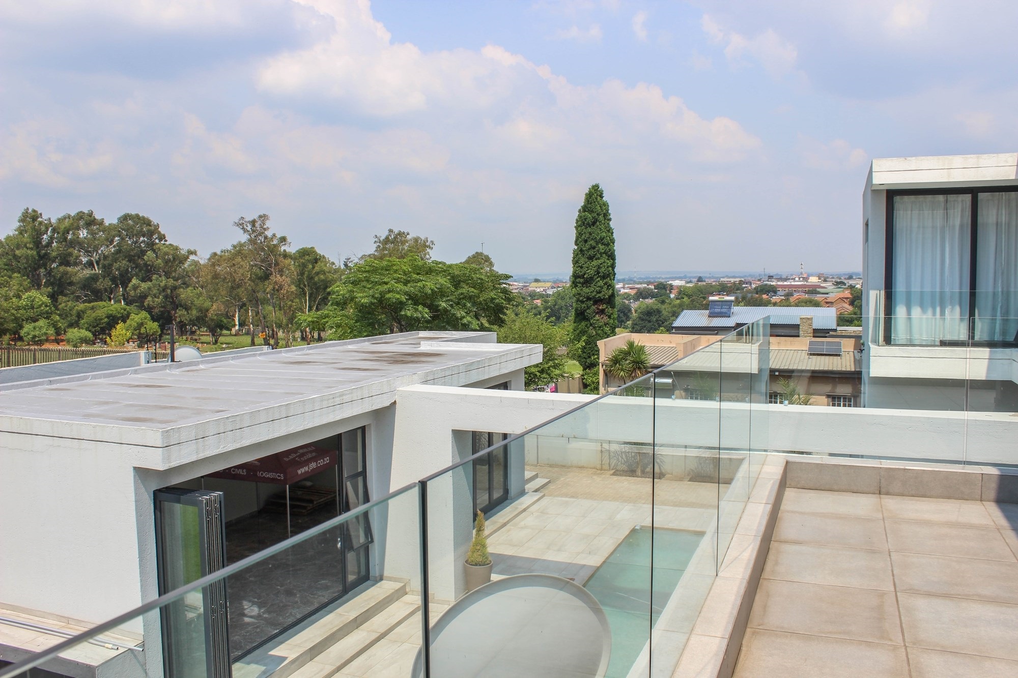 Additional features include a gym with balcony, potential sauna room, wine cellar, library, home office, and games room. Two double garages (fully tiled), staff quarters, two storage rooms, a water filtration and borehole system, Vacuflo system, and a state-of-the-art security setup ensure every convenience is at your fingertips.