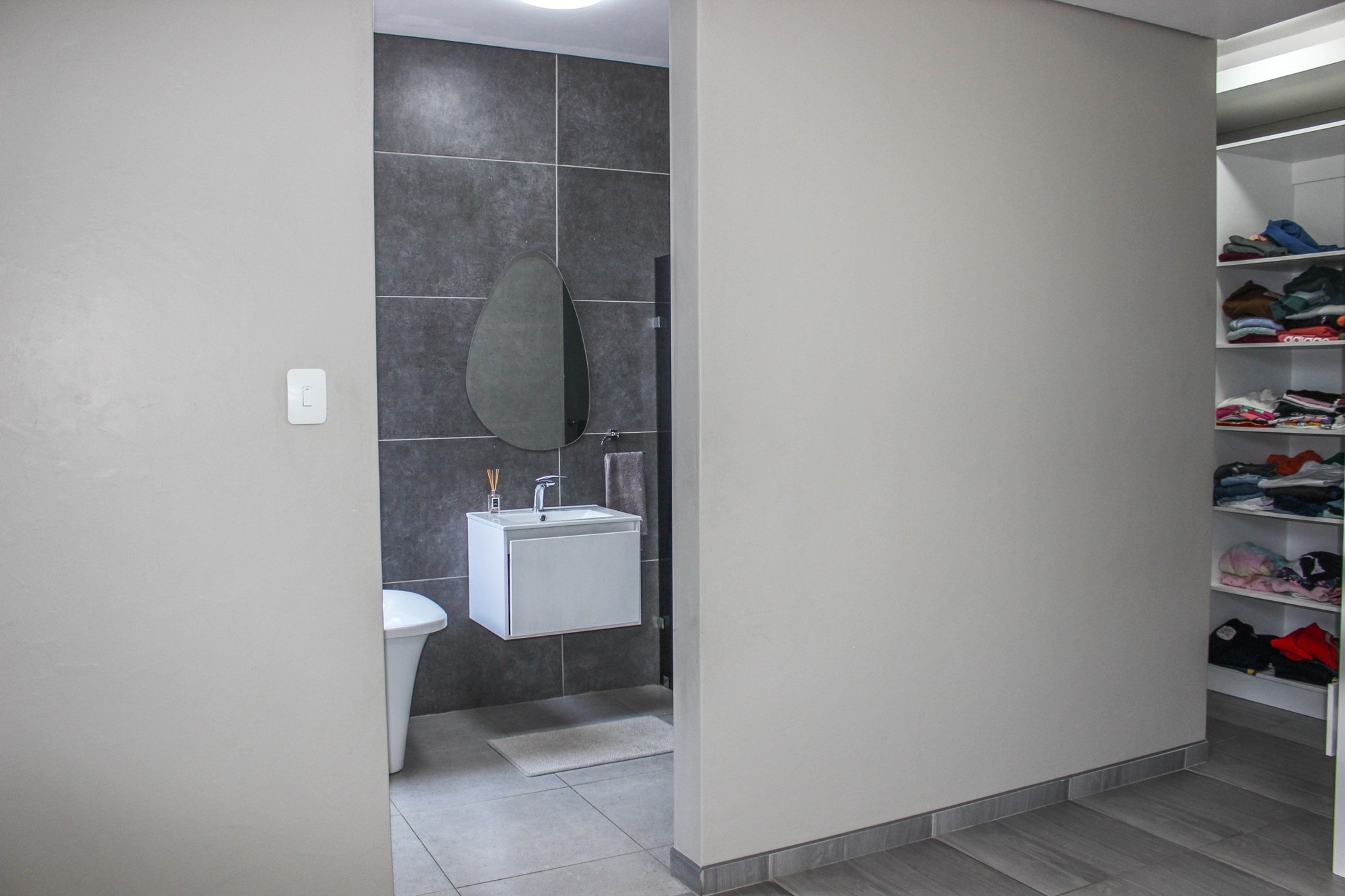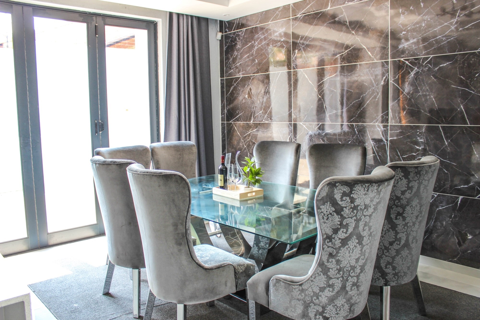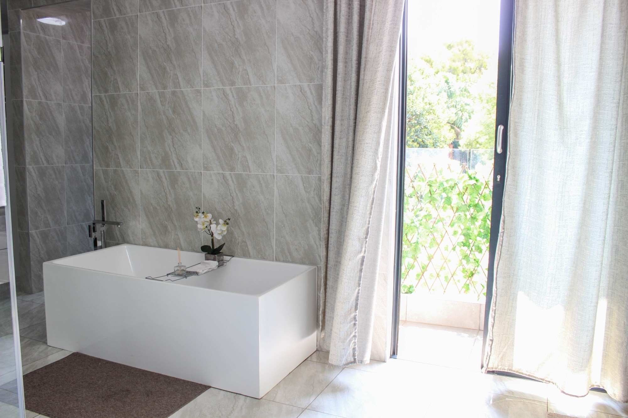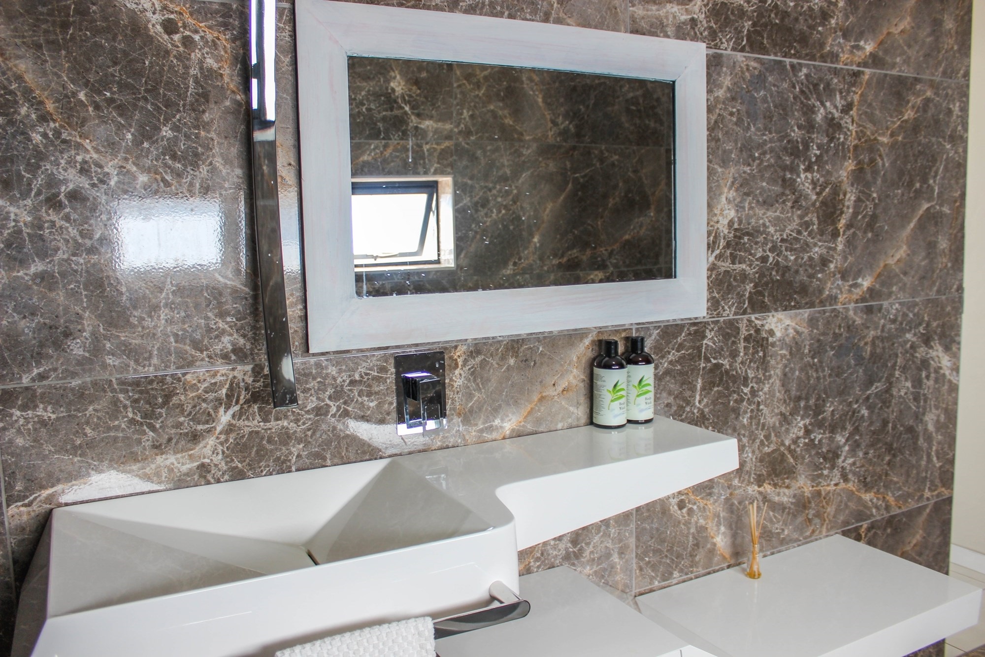 The home offers two stylish downstairs bedrooms, including a guest suite with an en-suite bathroom and poolside views. Upstairs, a pyjama lounge with balcony leads to four en-suite bedrooms. The master suite is a sanctuary, complete with balcony access, a spa-like bathroom with double jet showers, large bathtub, walk-in closet, and private pyjama lounge.