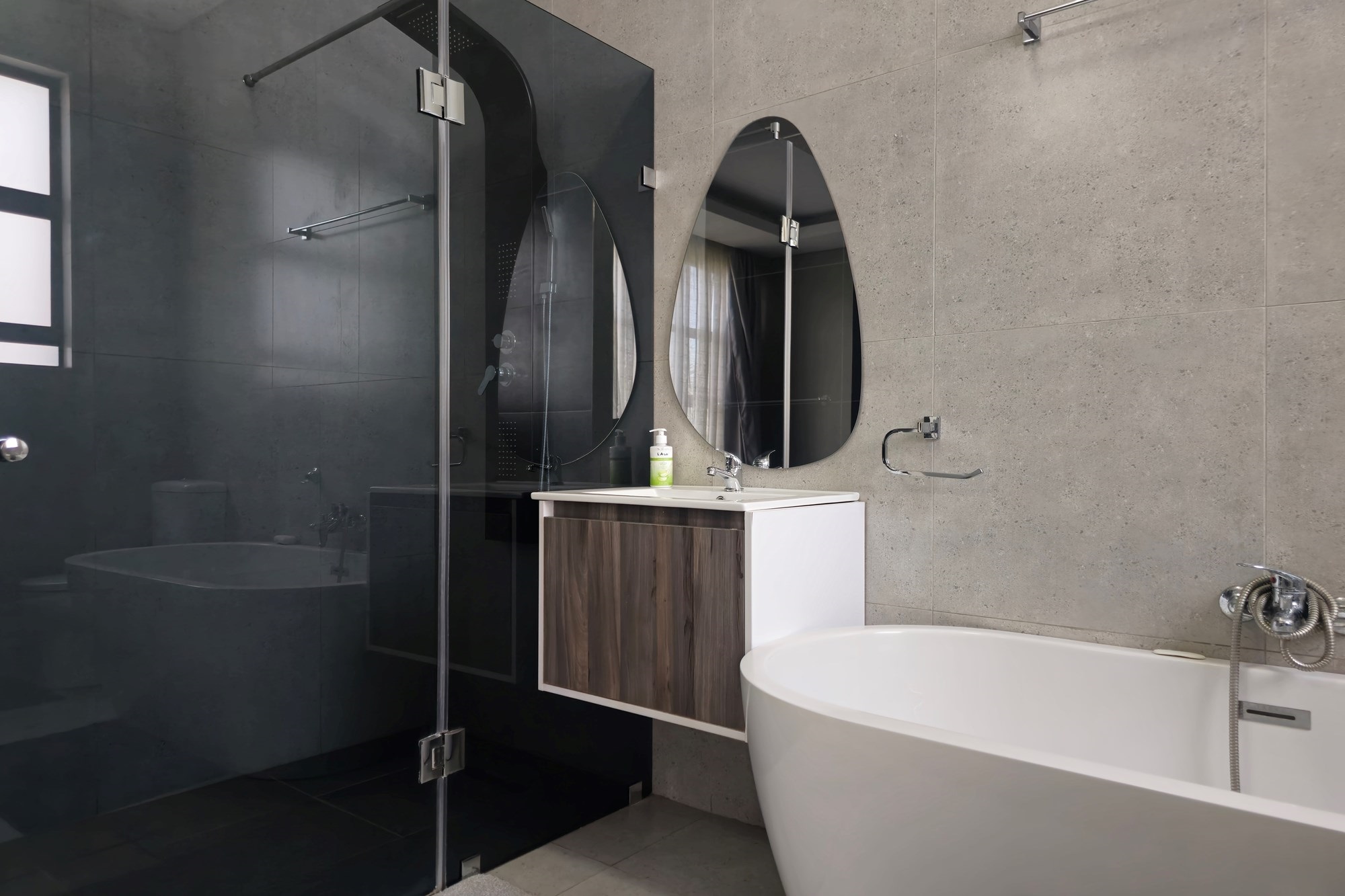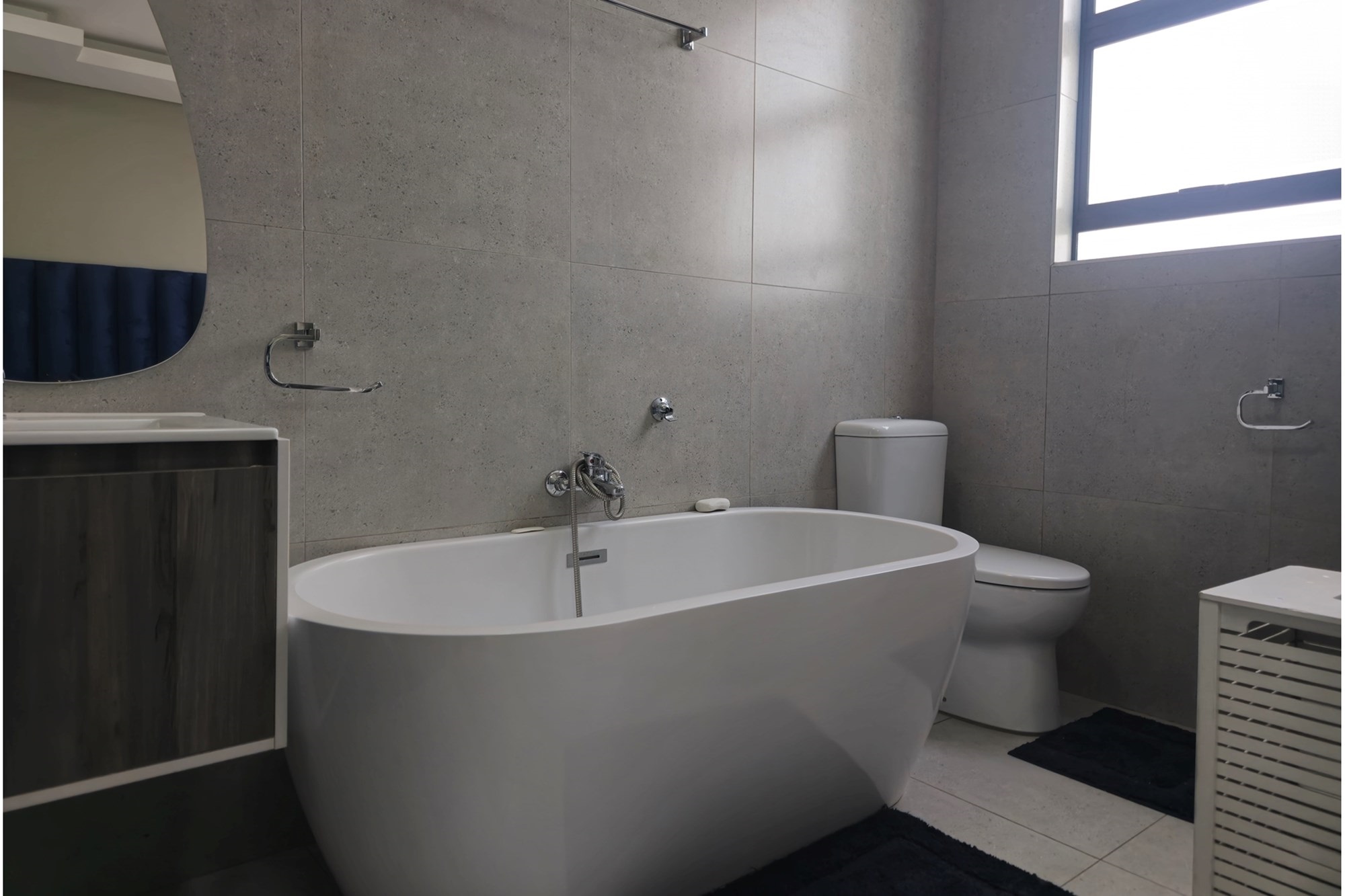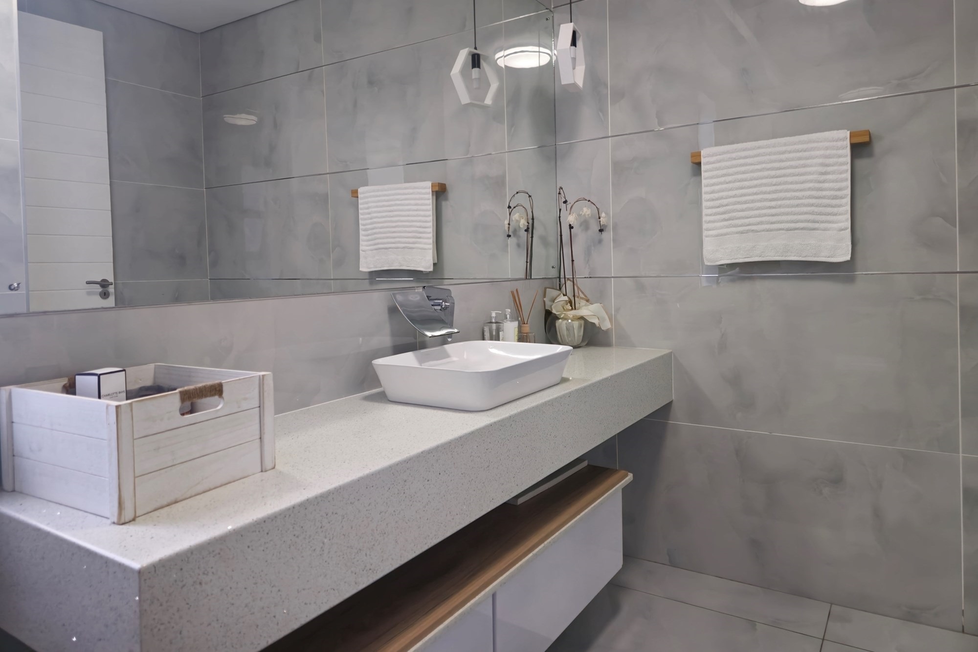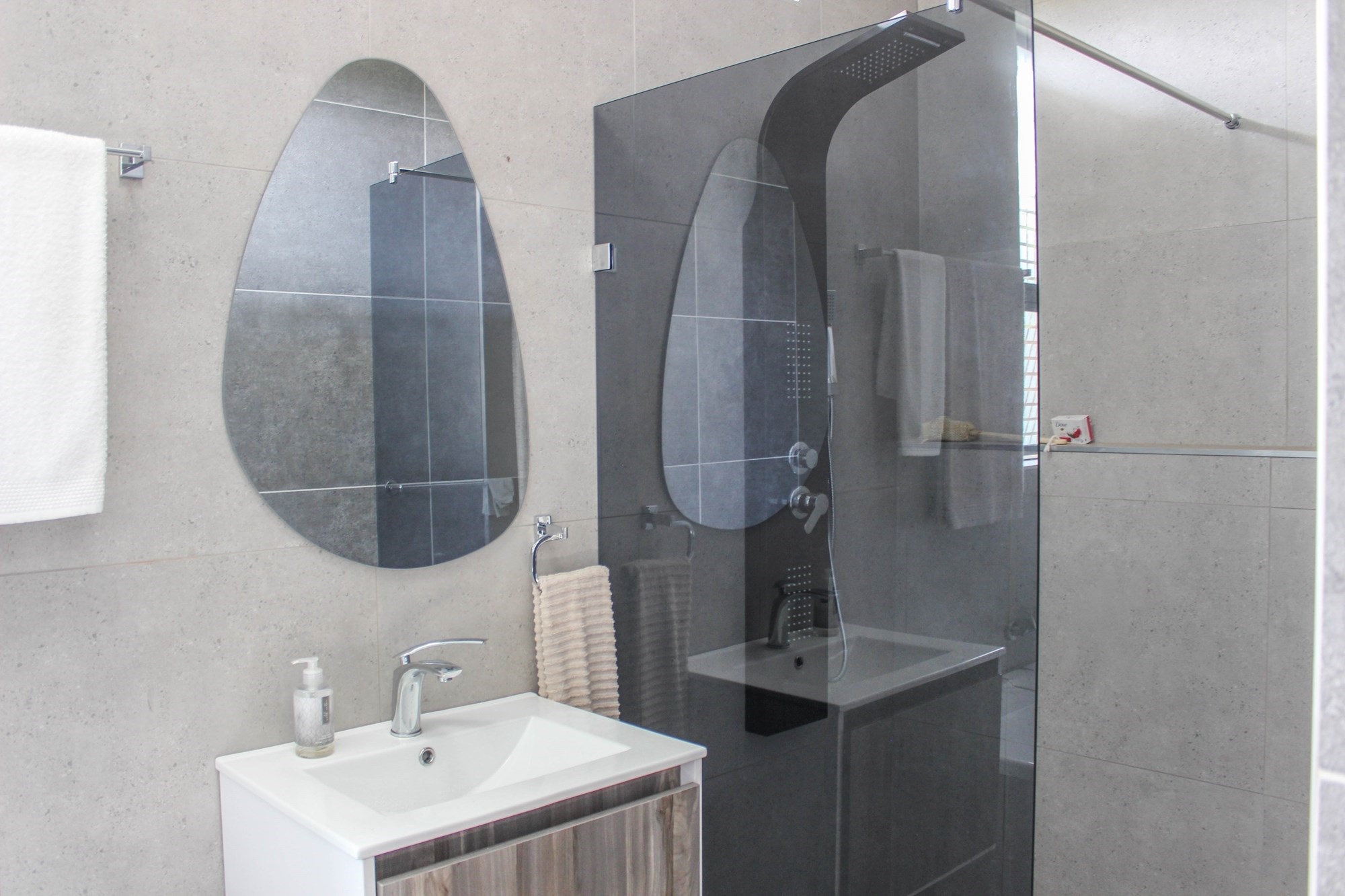 The home offers two stylish downstairs bedrooms, including a guest suite with an en-suite bathroom and poolside views. Upstairs, a pyjama lounge with balcony leads to four en-suite bedrooms. The master suite is a sanctuary, complete with balcony access, a spa-like bathroom with double jet showers, large bathtub, walk-in closet, and private pyjama lounge.