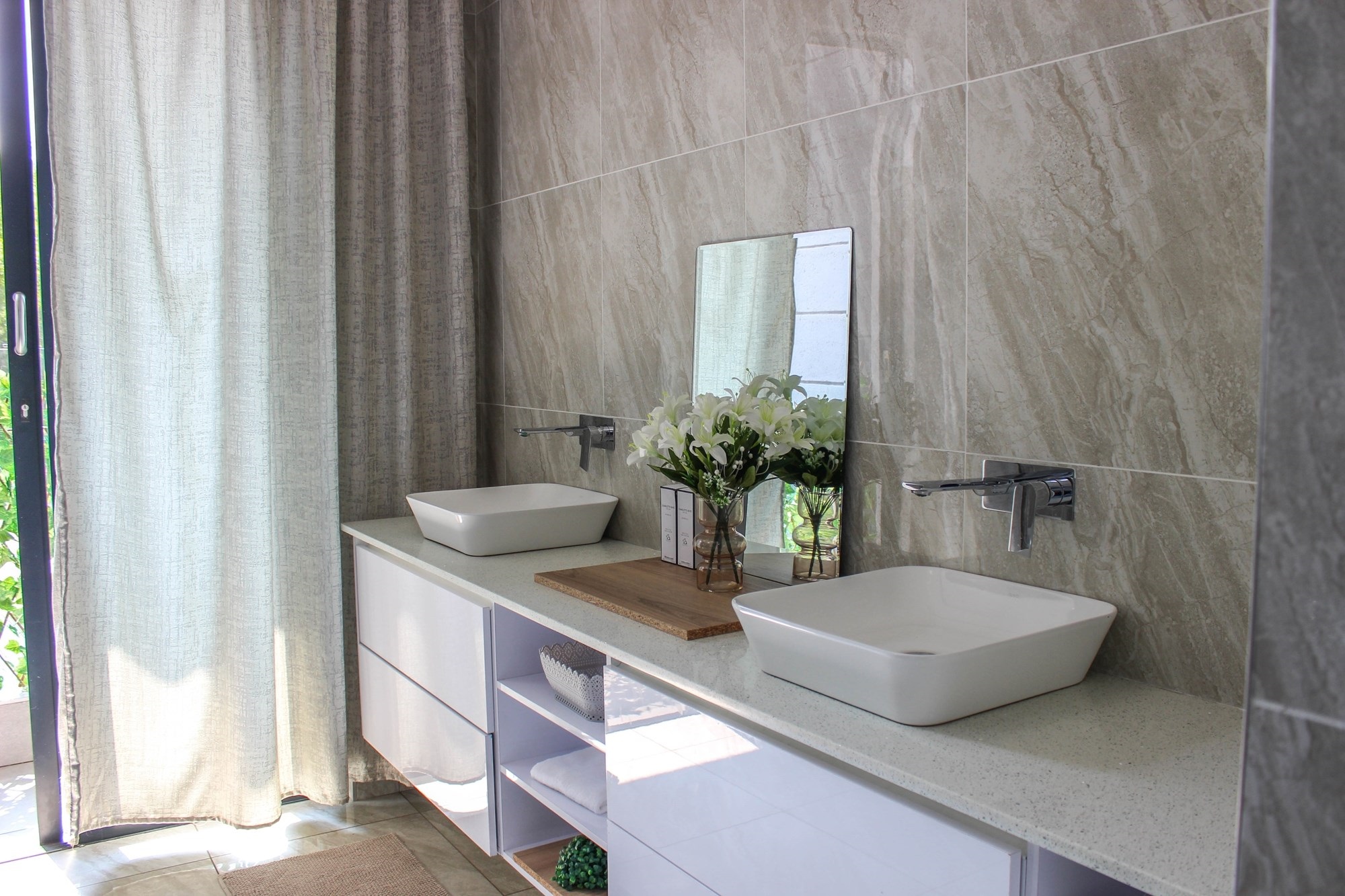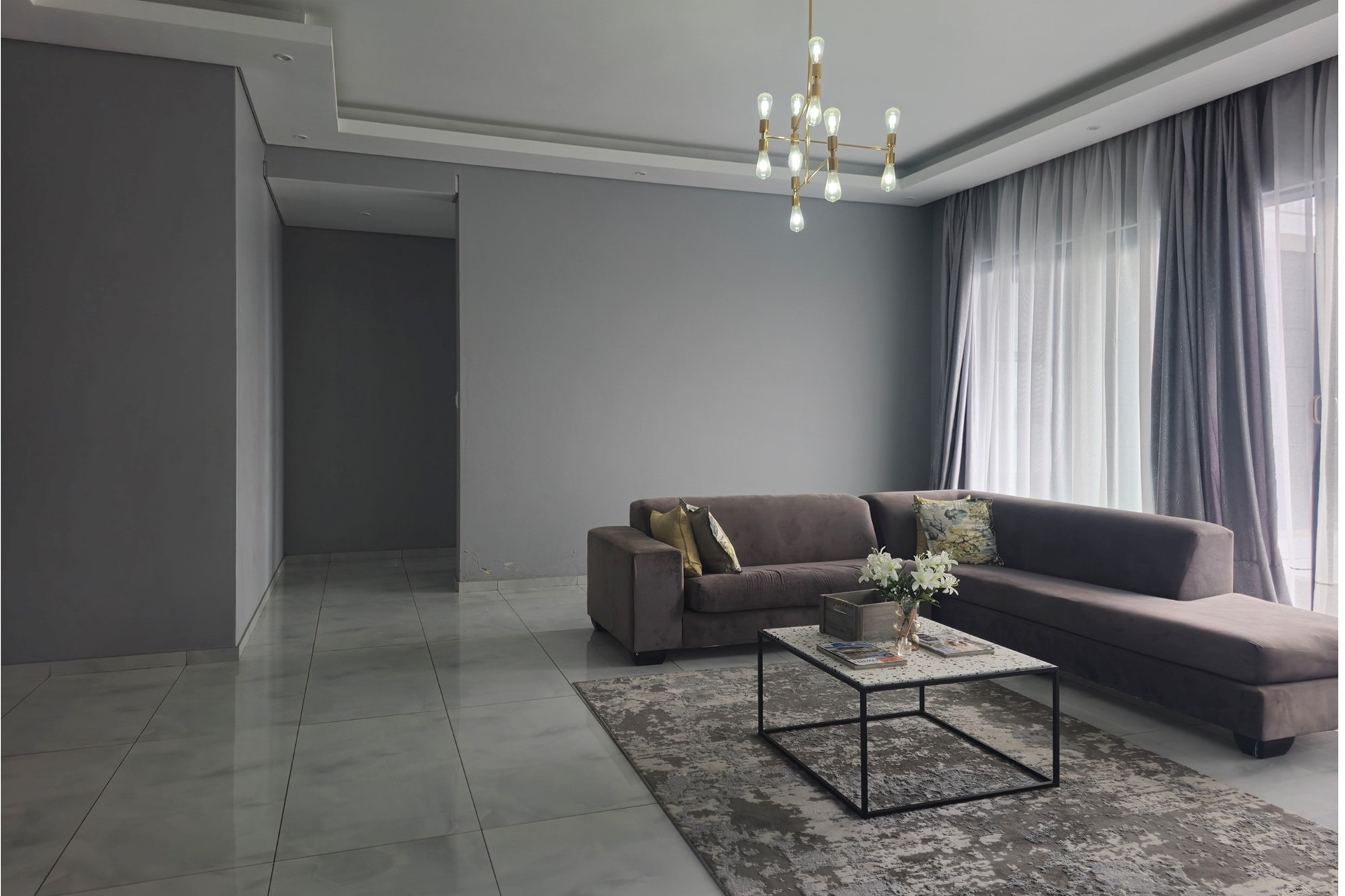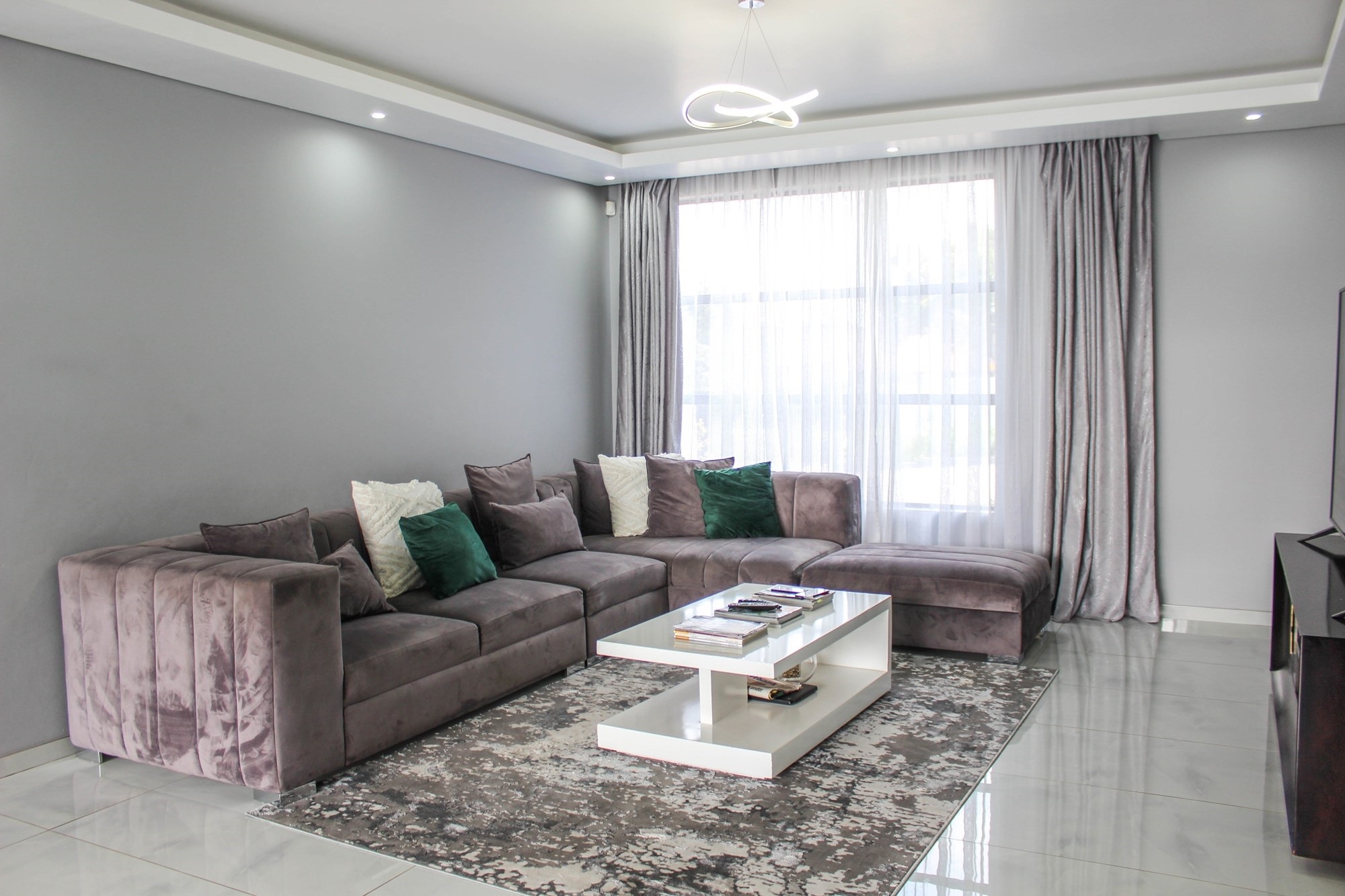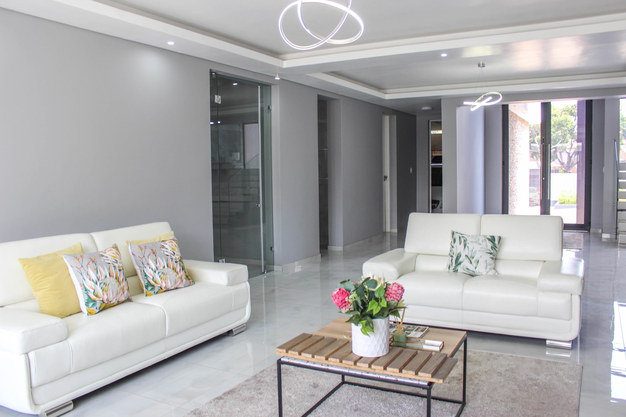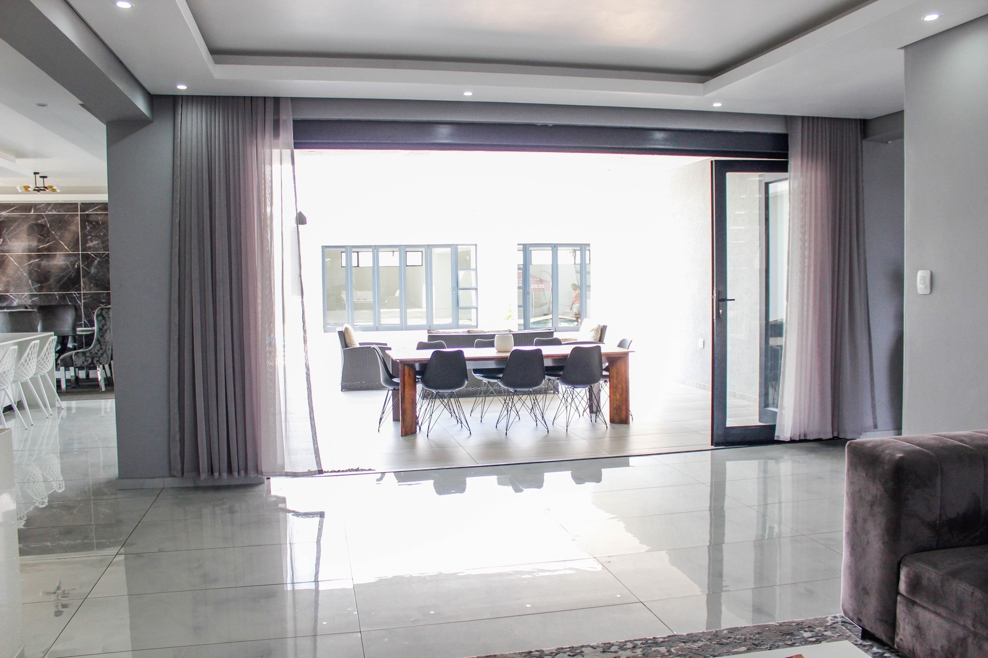 Through grand double doors, you`re greeted by a home that effortlessly blends sophistication with comfort. The open-plan living area features two lounges with stacking doors that create seamless indoor-outdoor flow. A partially completed cinema room promises cozy movie nights for the whole family.