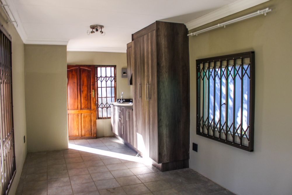 The dining room, with its built-in braai and seamless garden access, makes entertaining a breeze — ideal for both cozy dinners and large celebrations. The kitchen, truly the heart of the home, impresses with oak-finished cupboards, sleek stone countertops, and a premium Smeg oven featuring a 6-plate gas stove. A walk-in pantry, extra-length electric oven, and combined scullery/laundry add practicality and charm.
