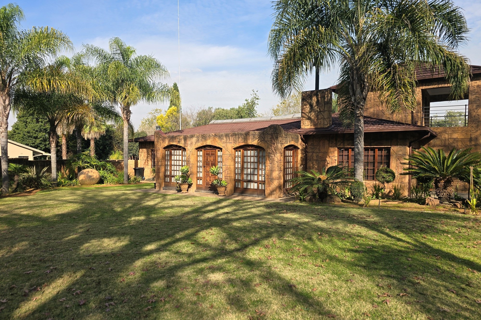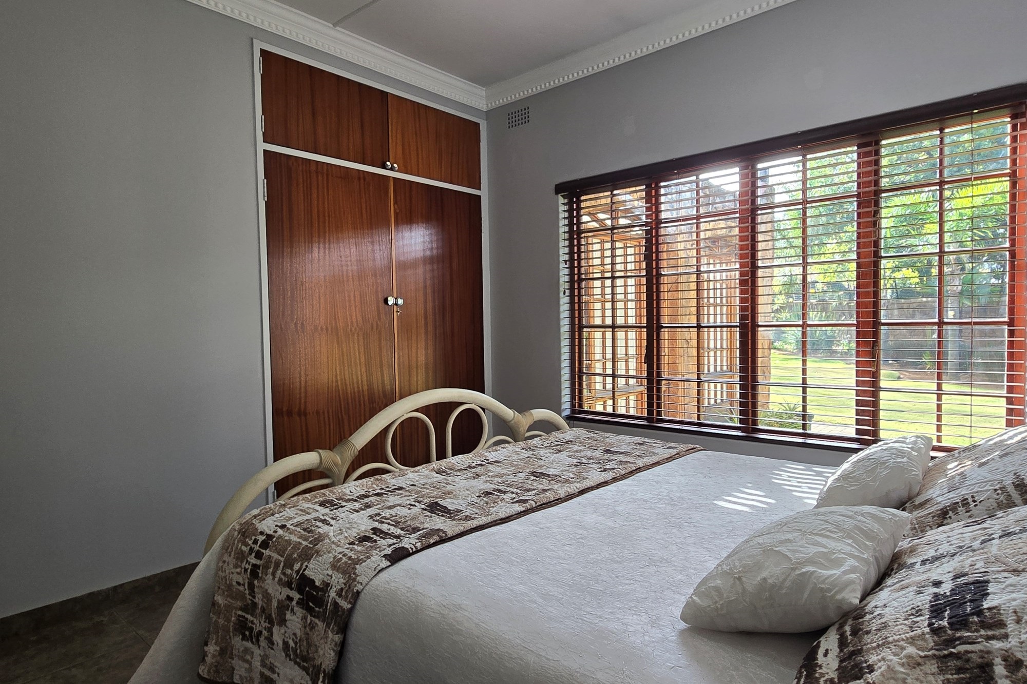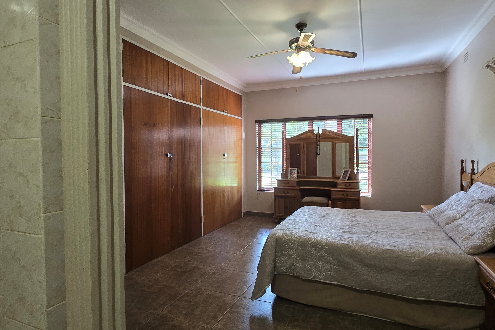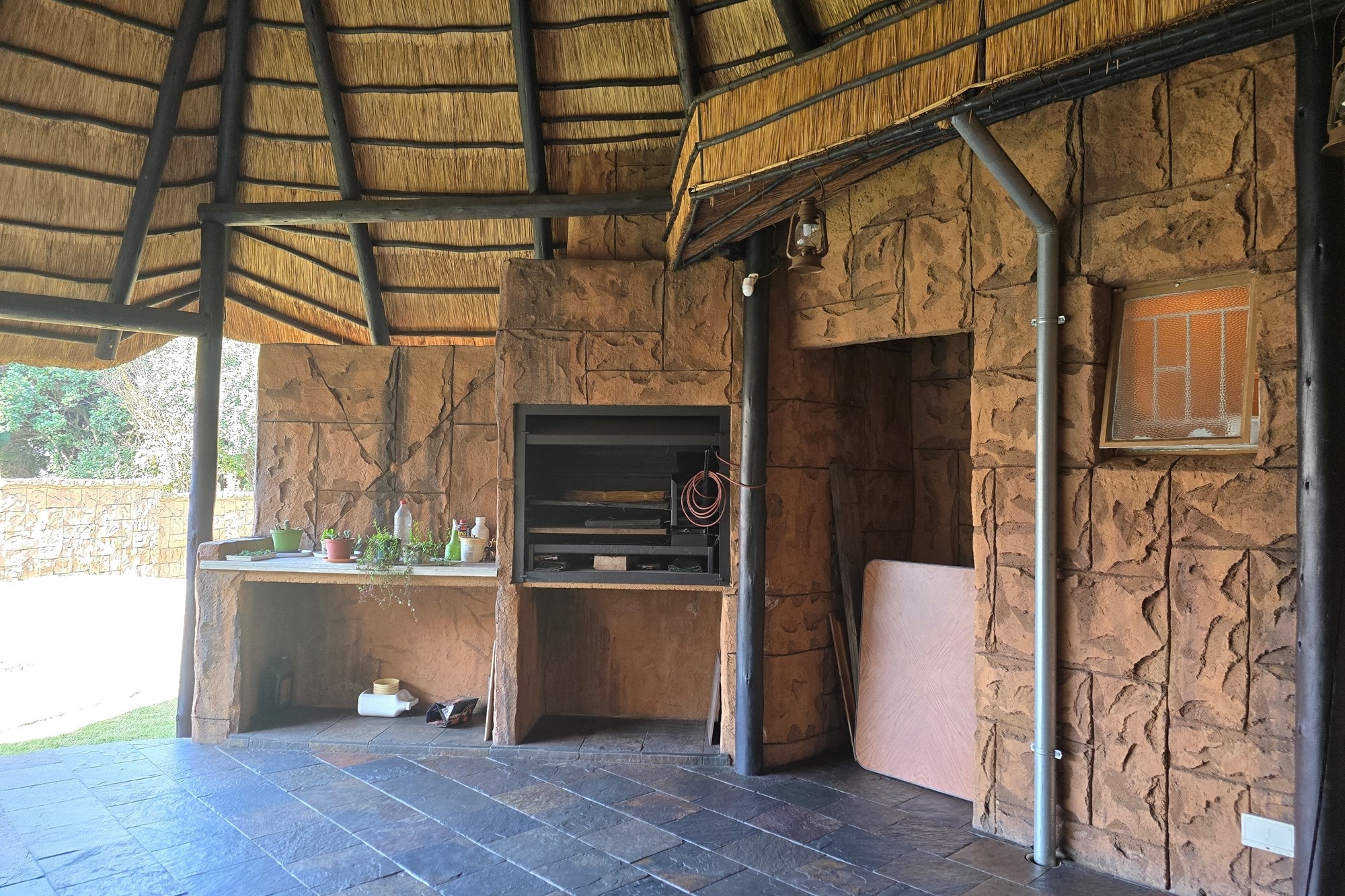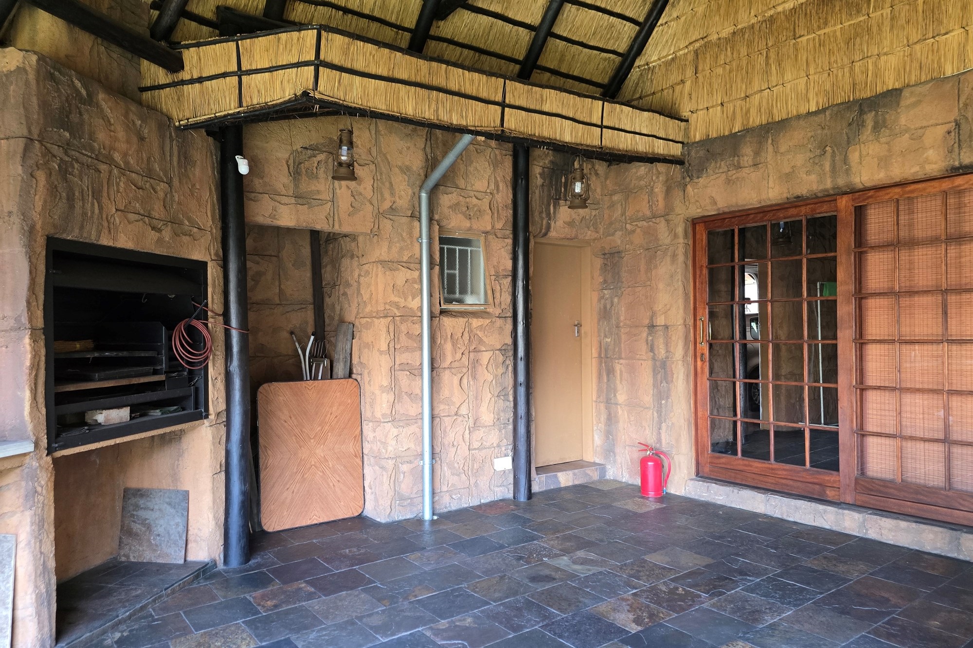 An entertainer’s dream awaits off the kitchen – a large indoor entertainment room with sliding doors opening to a covered patio and built-in braai. The home also offers a separate laundry room, which could double as staff quarters with its own bathroom.