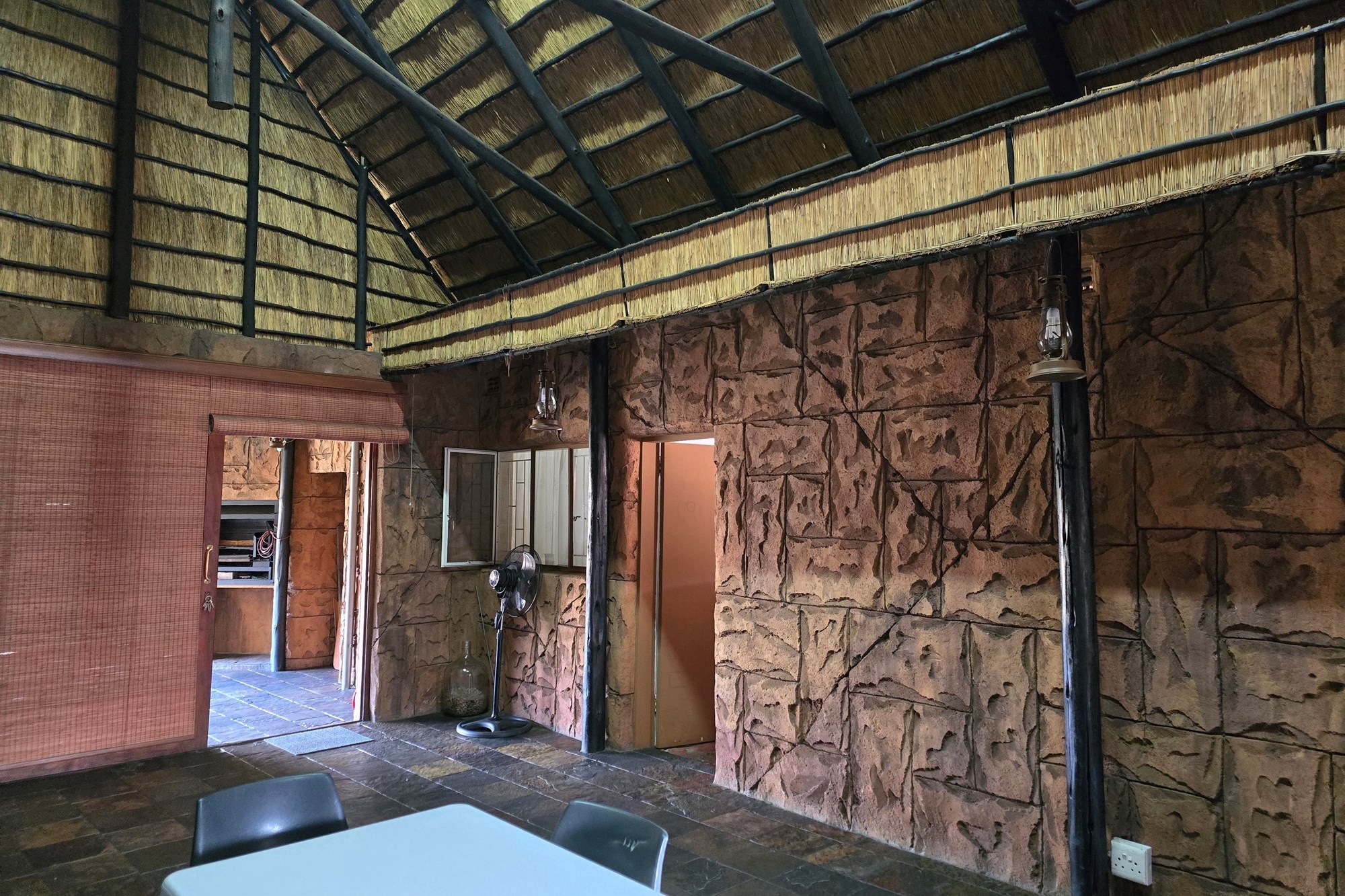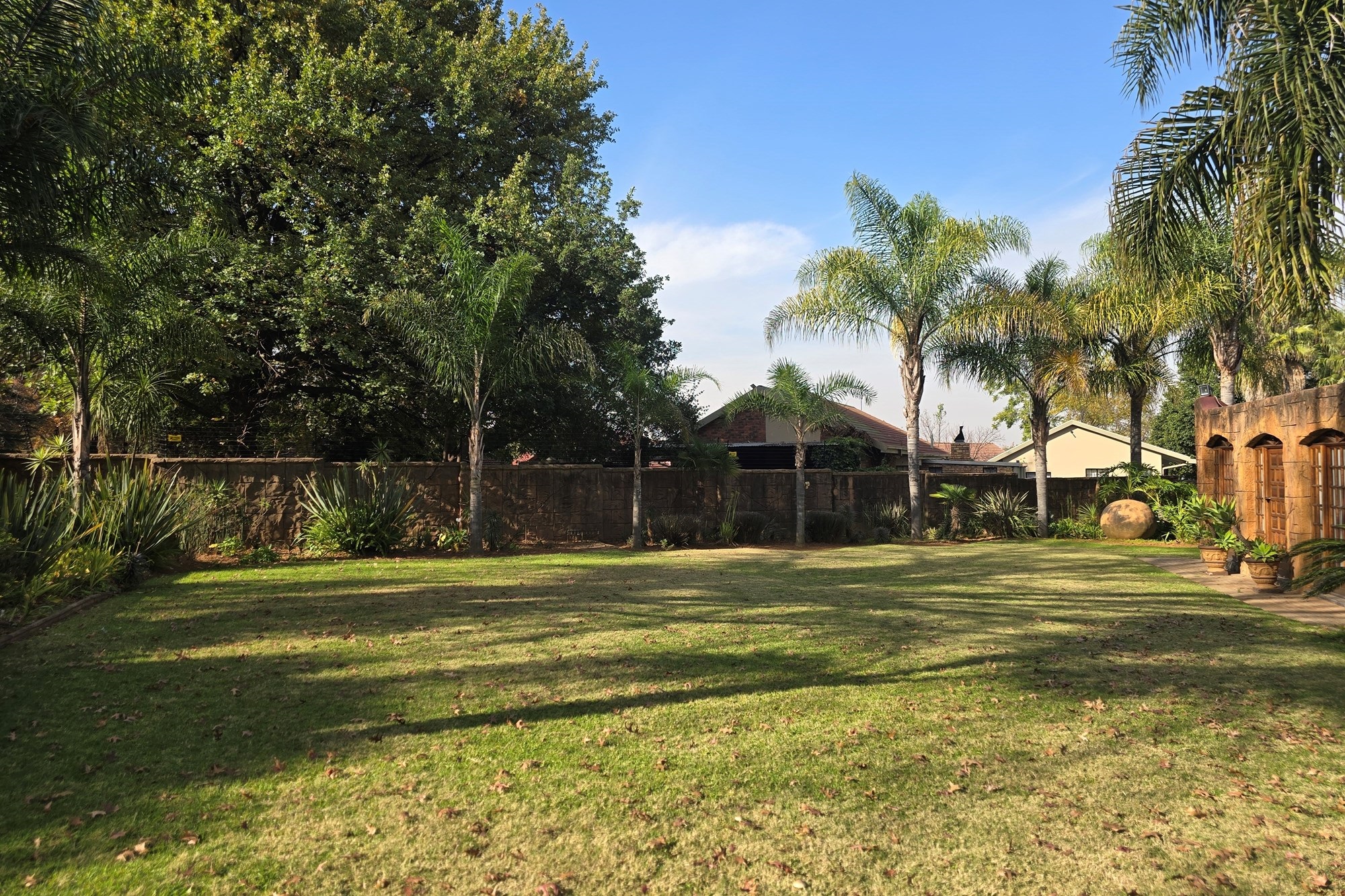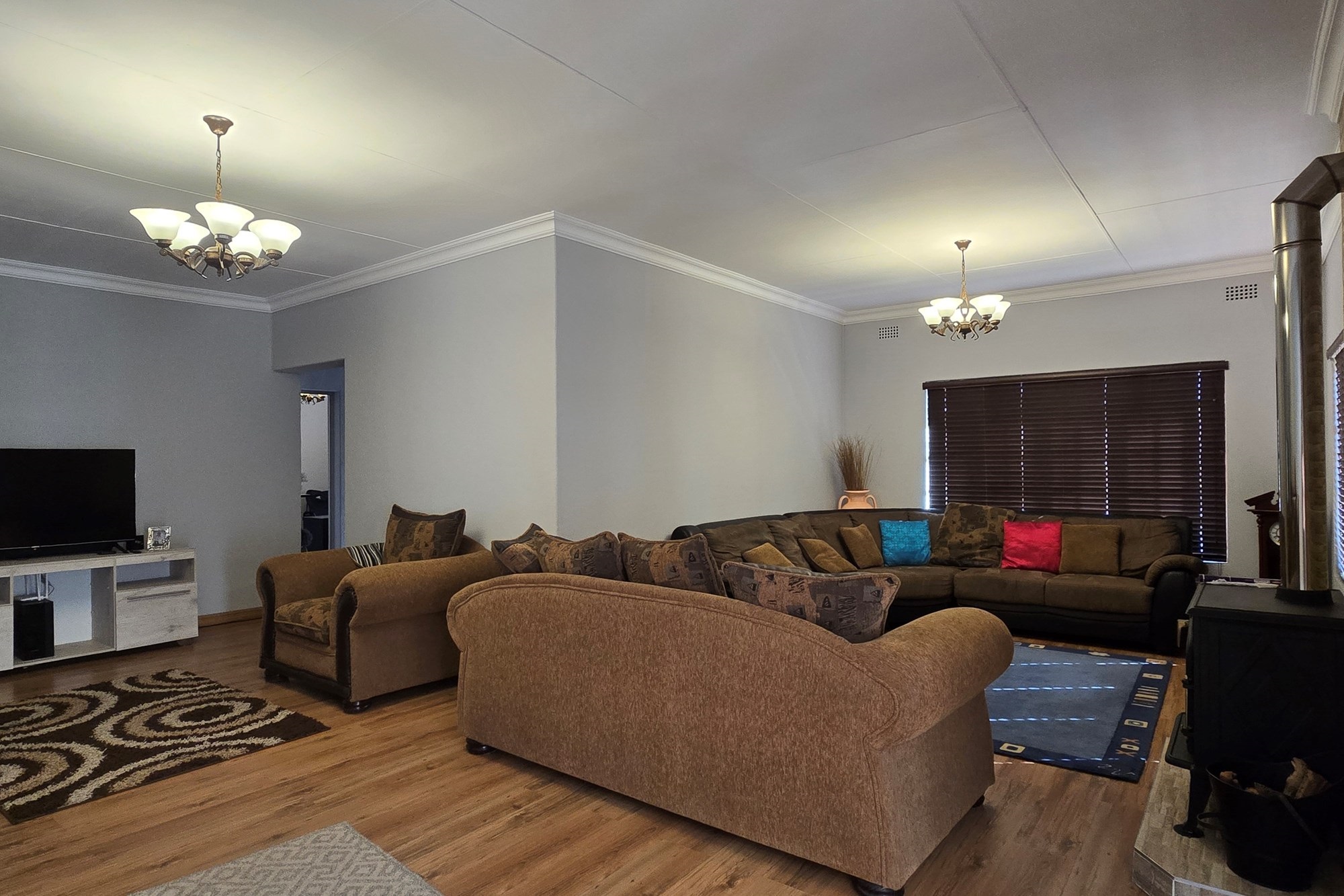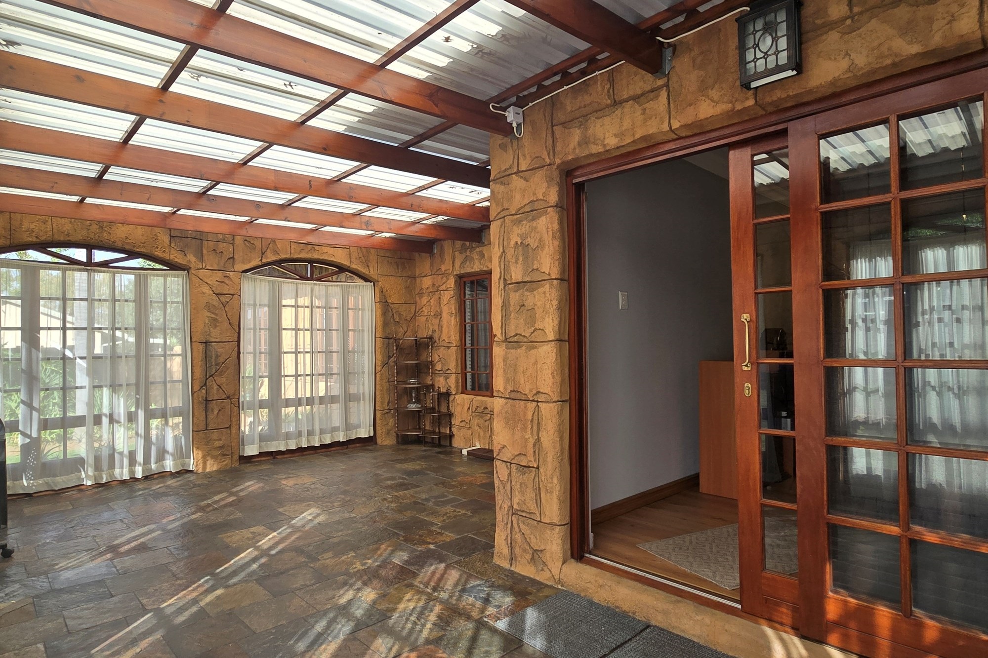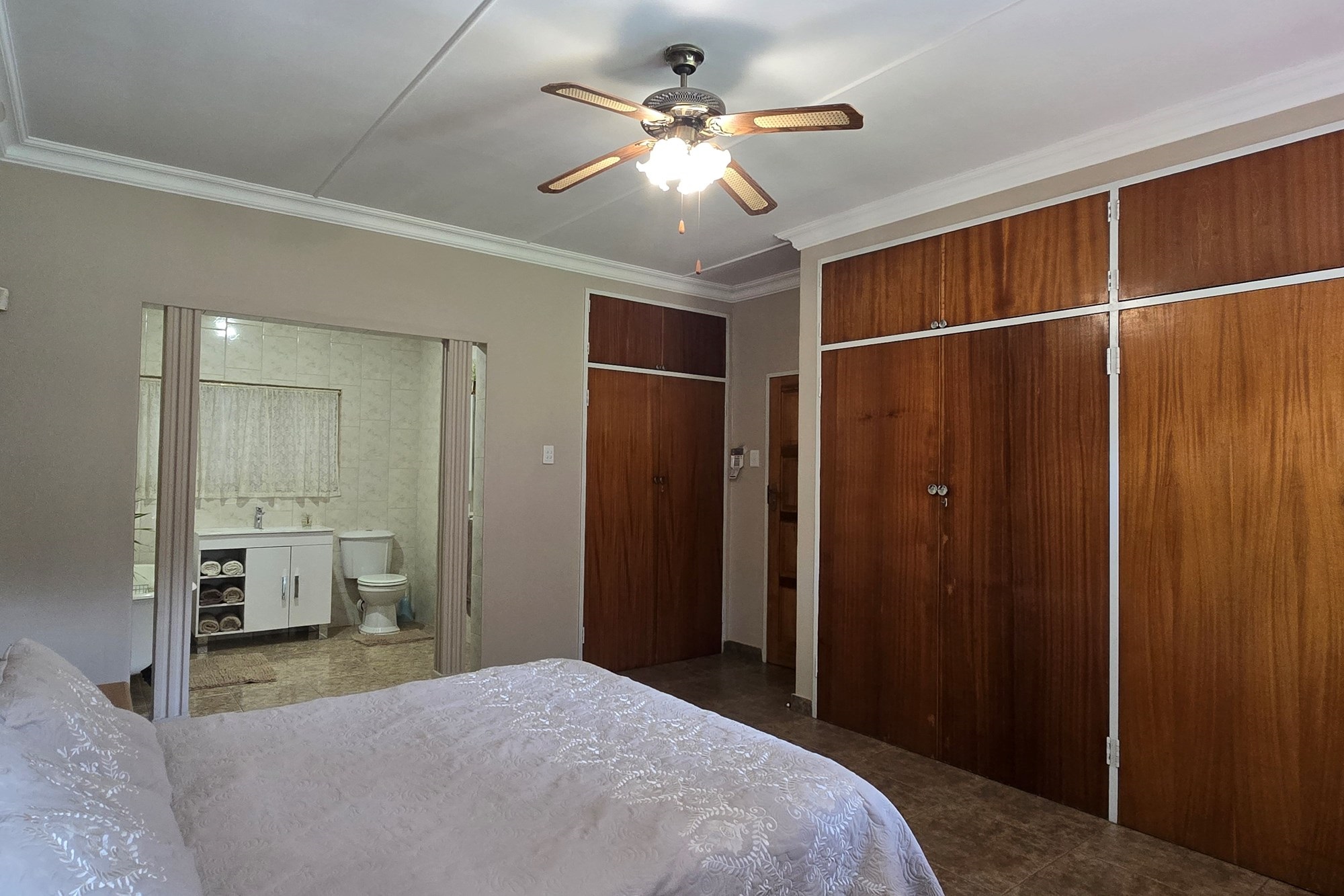 An entertainer’s dream awaits off the kitchen – a large indoor entertainment room with sliding doors opening to a covered patio and built-in braai. The home also offers a separate laundry room, which could double as staff quarters with its own bathroom.