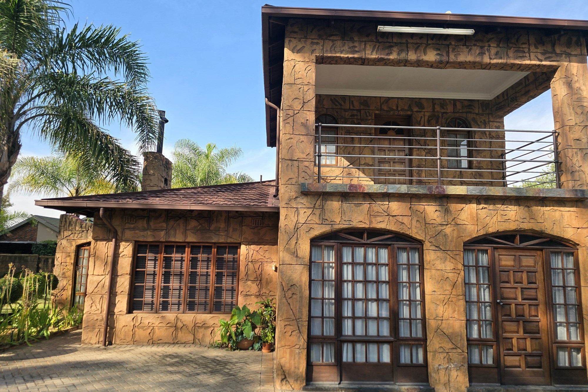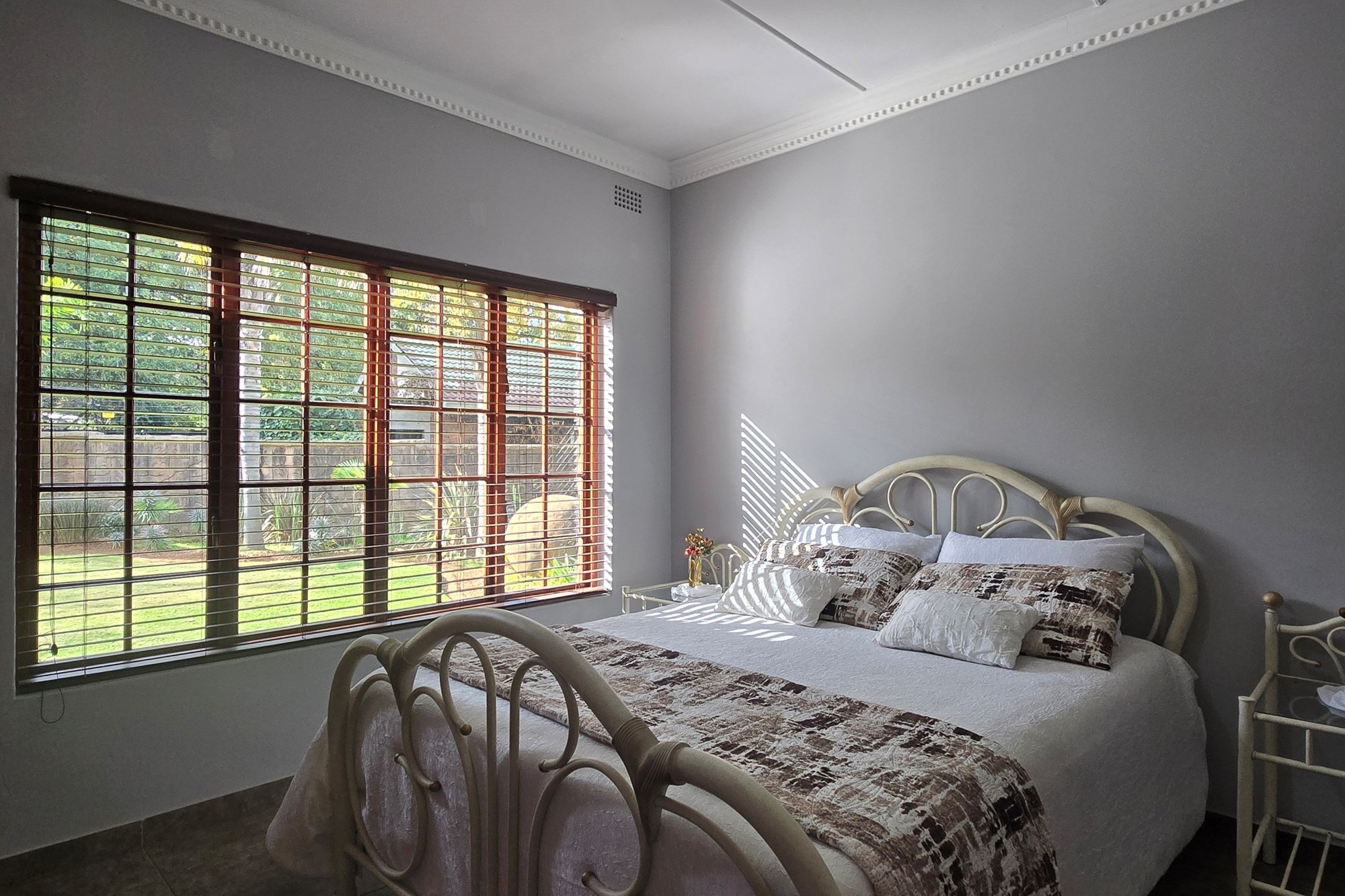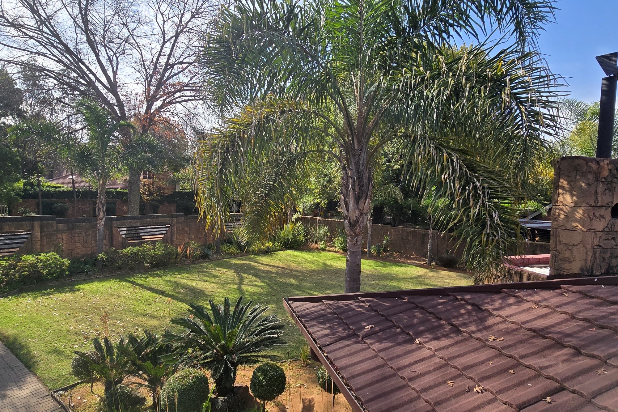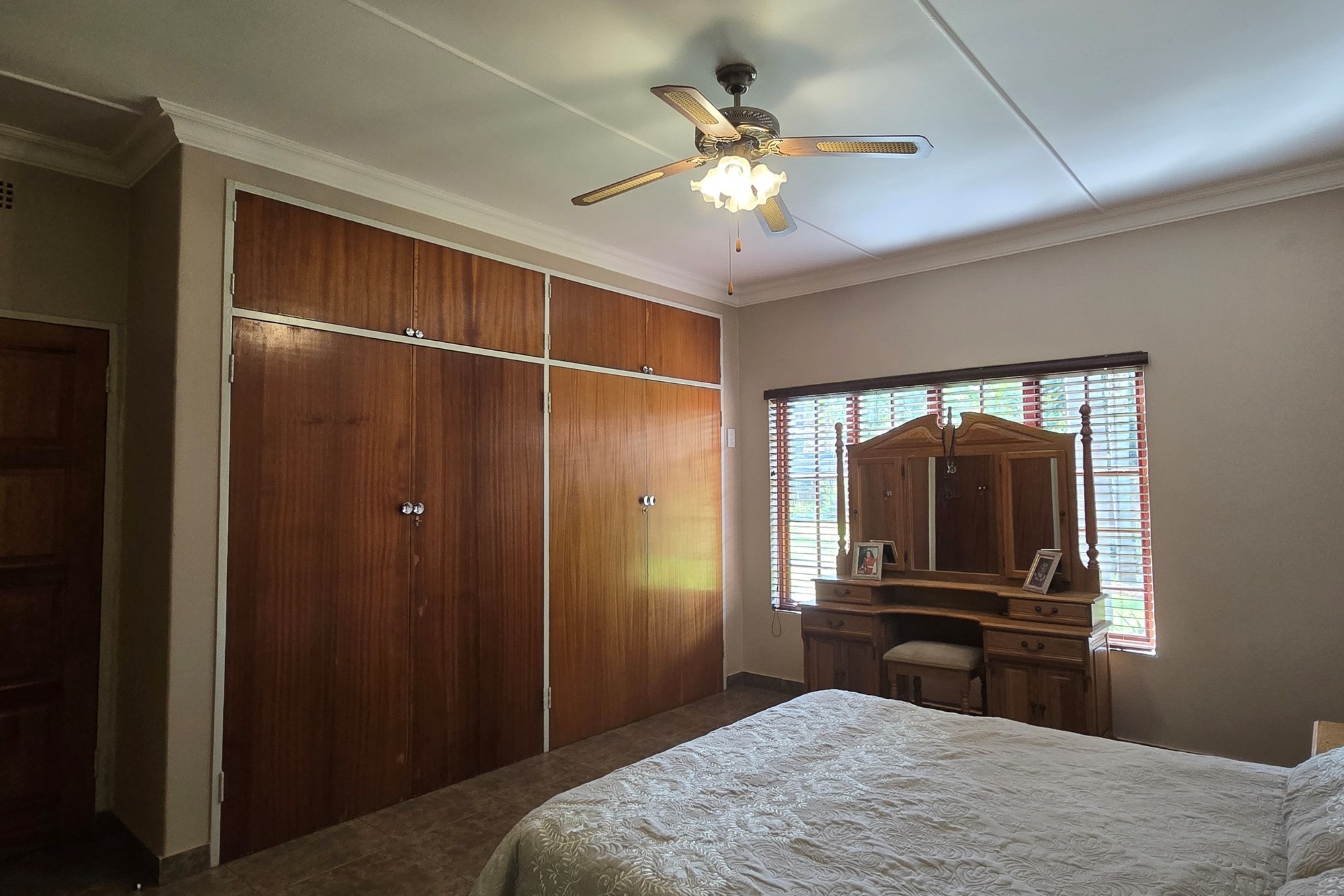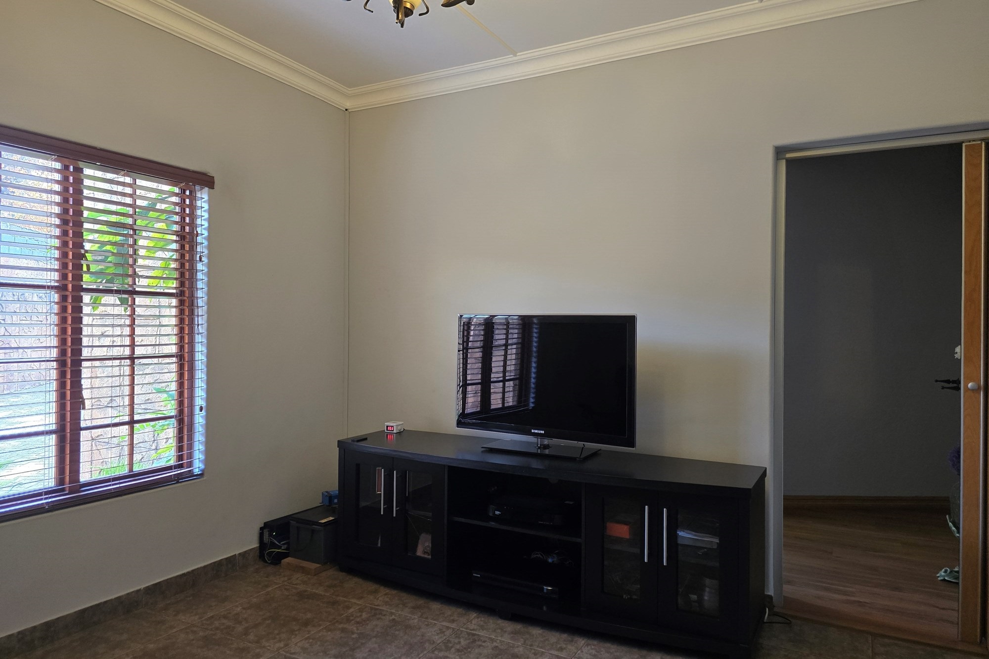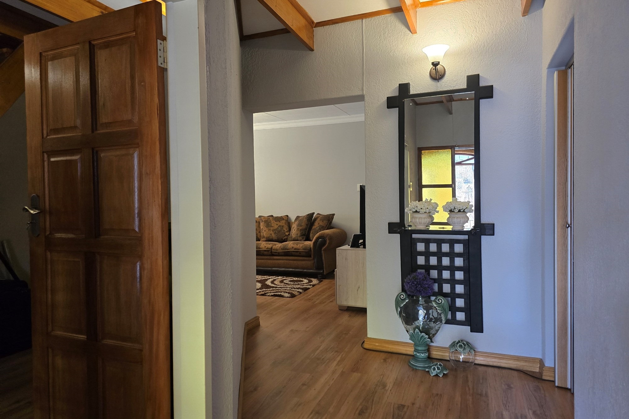 An entertainer’s dream awaits off the kitchen – a large indoor entertainment room with sliding doors opening to a covered patio and built-in braai. The home also offers a separate laundry room, which could double as staff quarters with its own bathroom.