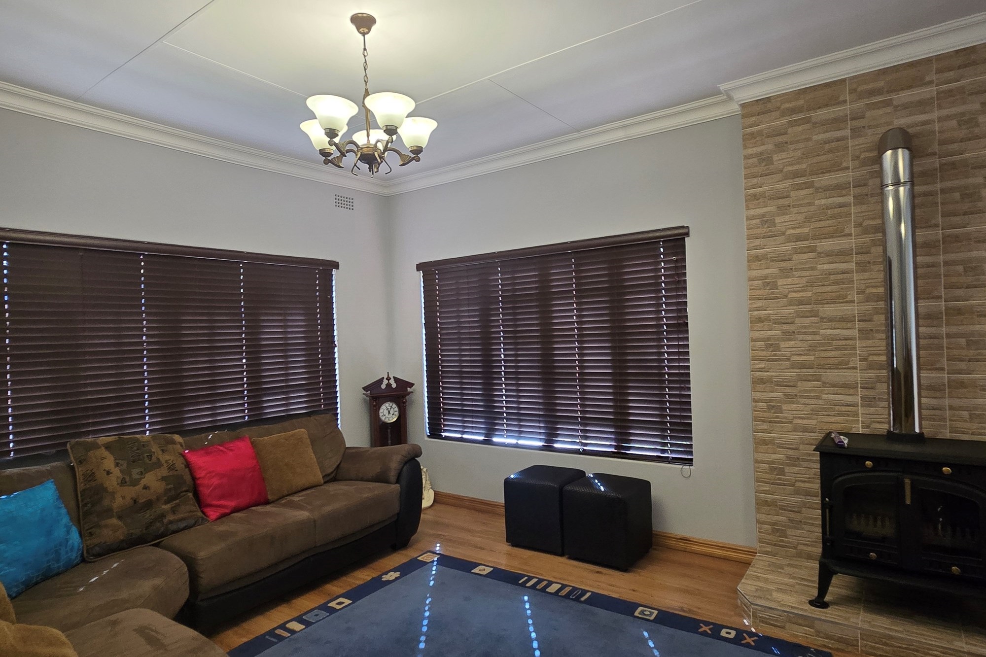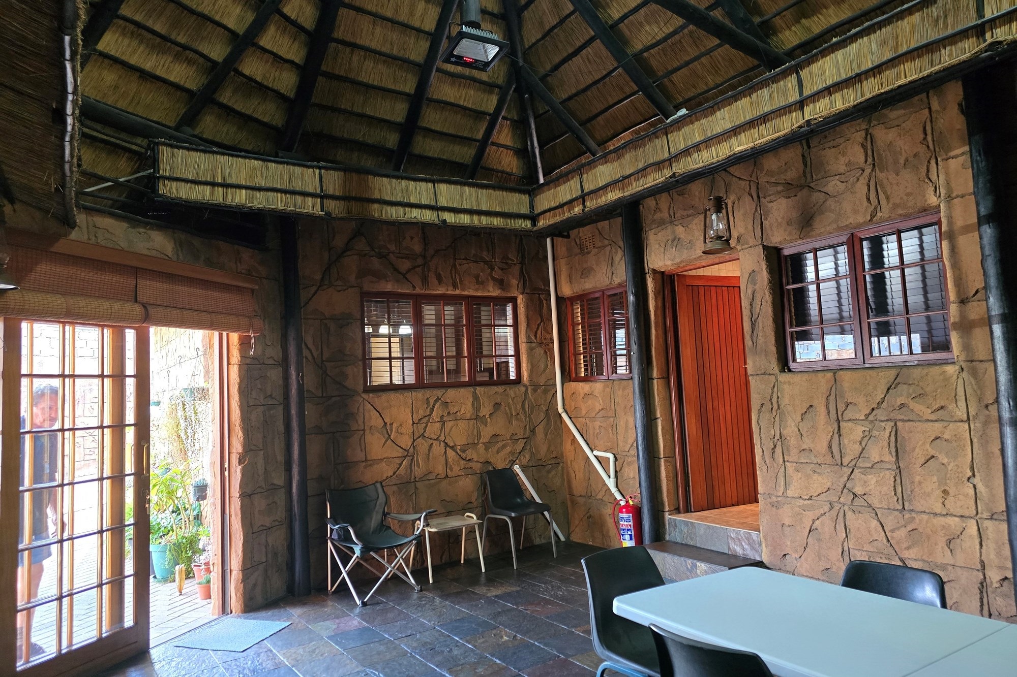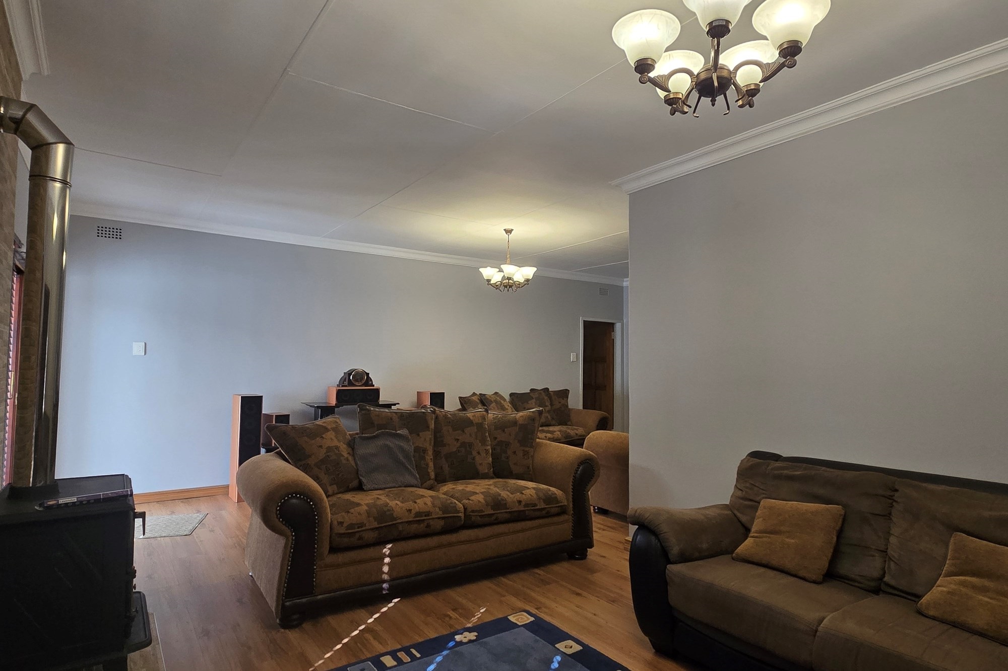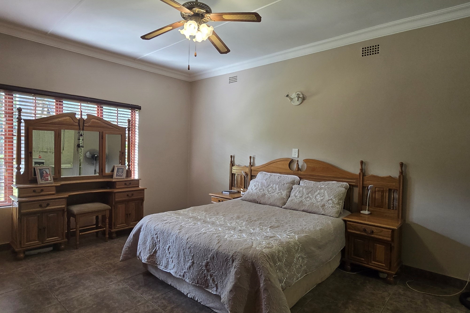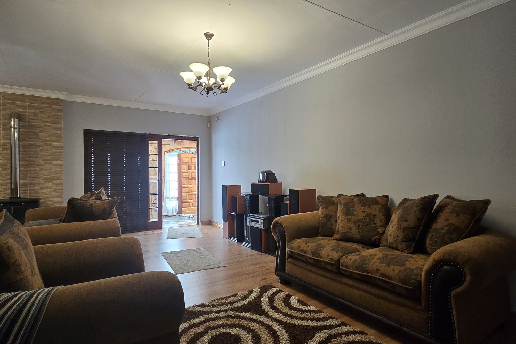 An entertainer’s dream awaits off the kitchen – a large indoor entertainment room with sliding doors opening to a covered patio and built-in braai. The home also offers a separate laundry room, which could double as staff quarters with its own bathroom.