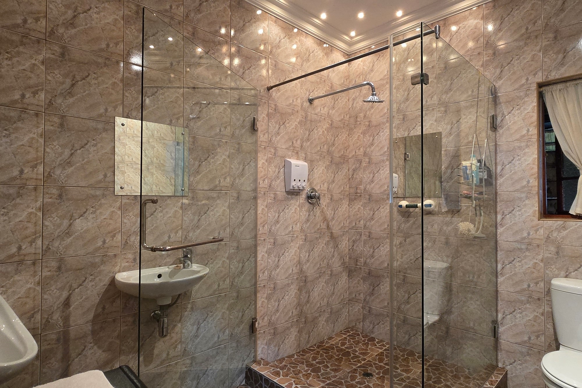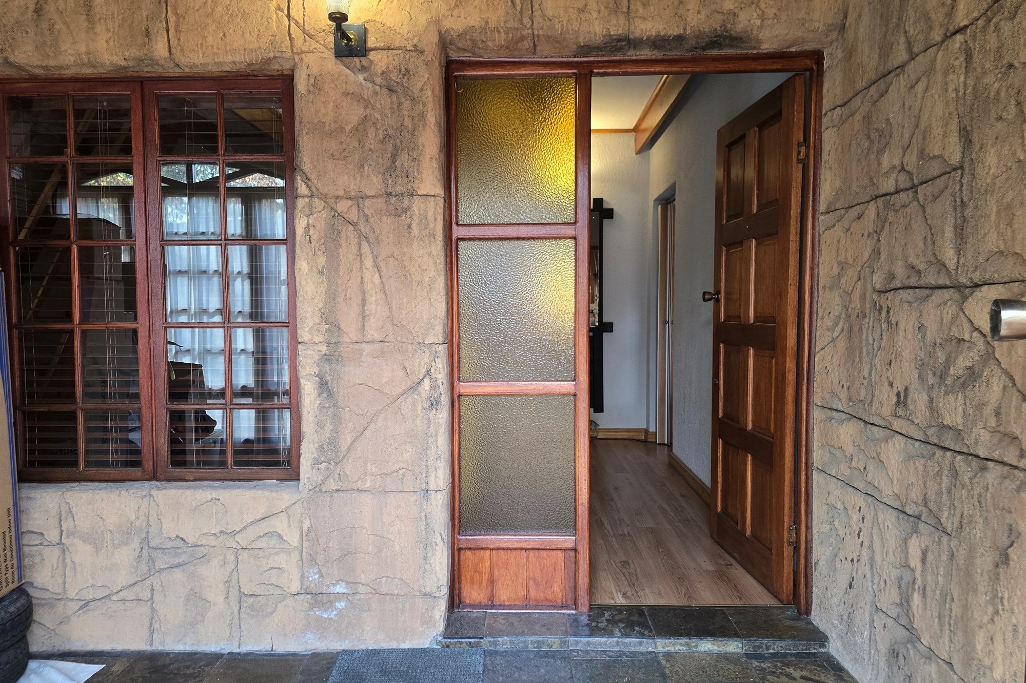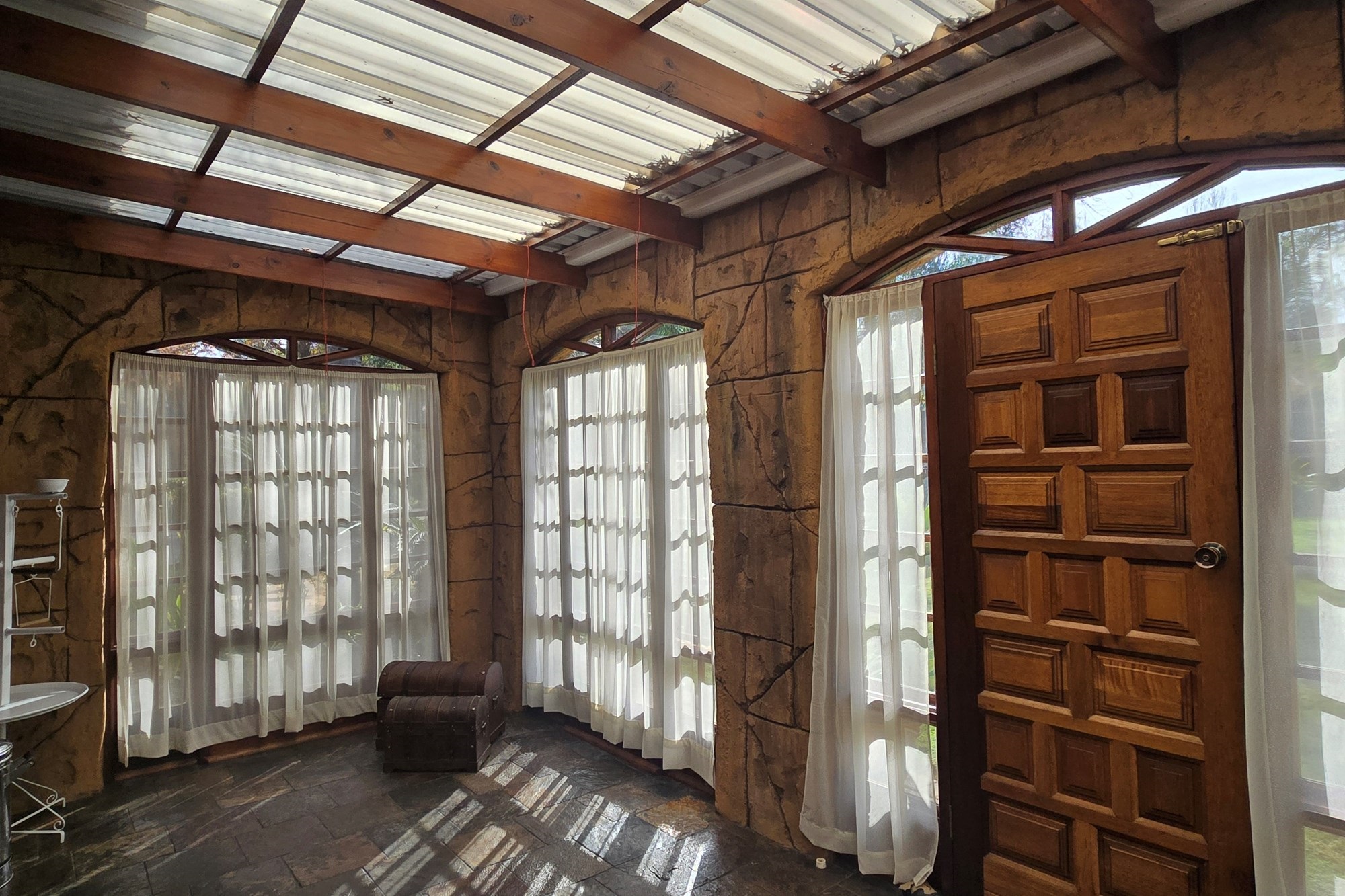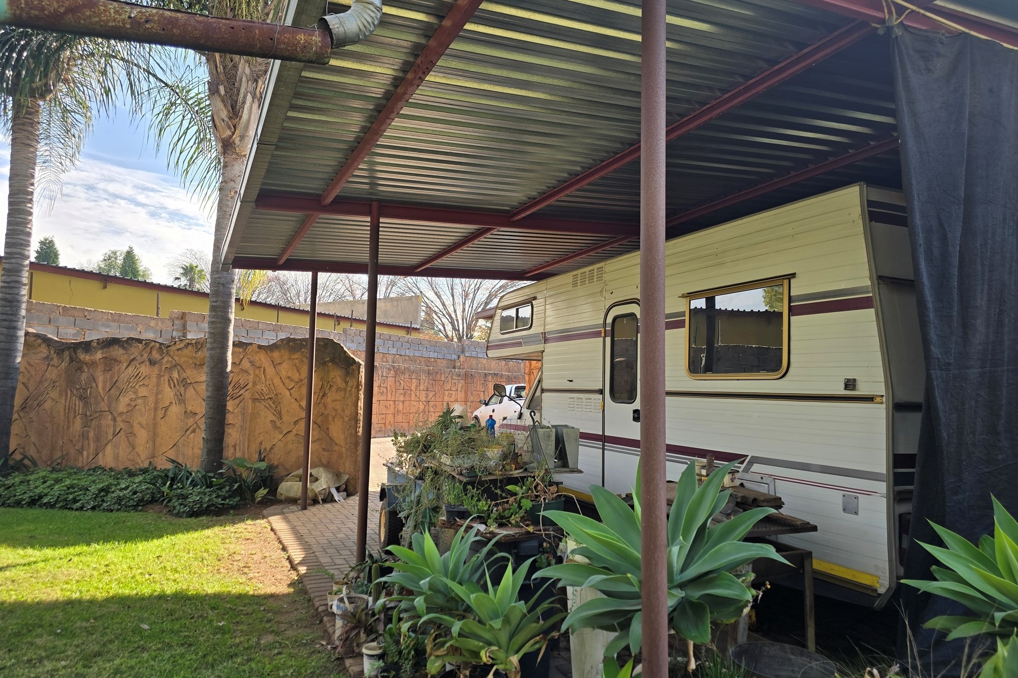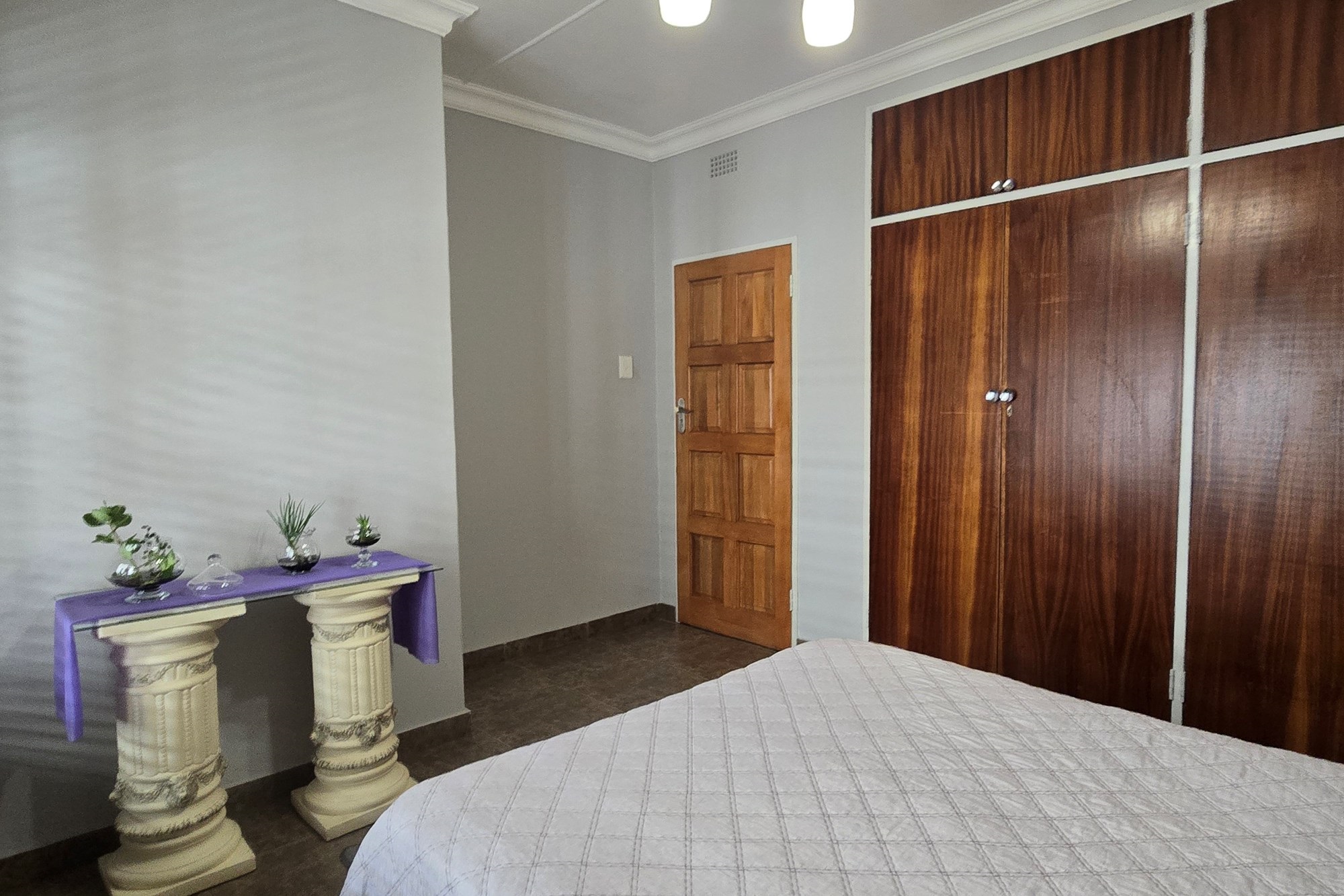An entertainer’s dream awaits off the kitchen – a large indoor entertainment room with sliding doors opening to a covered patio and built-in braai. The home also offers a separate laundry room, which could double as staff quarters with its own bathroom.