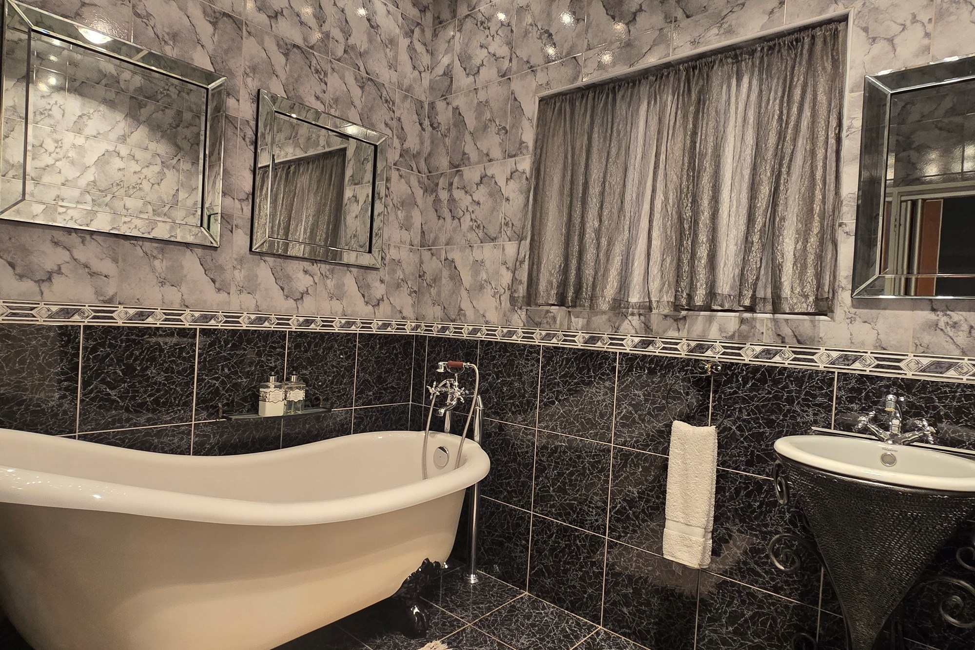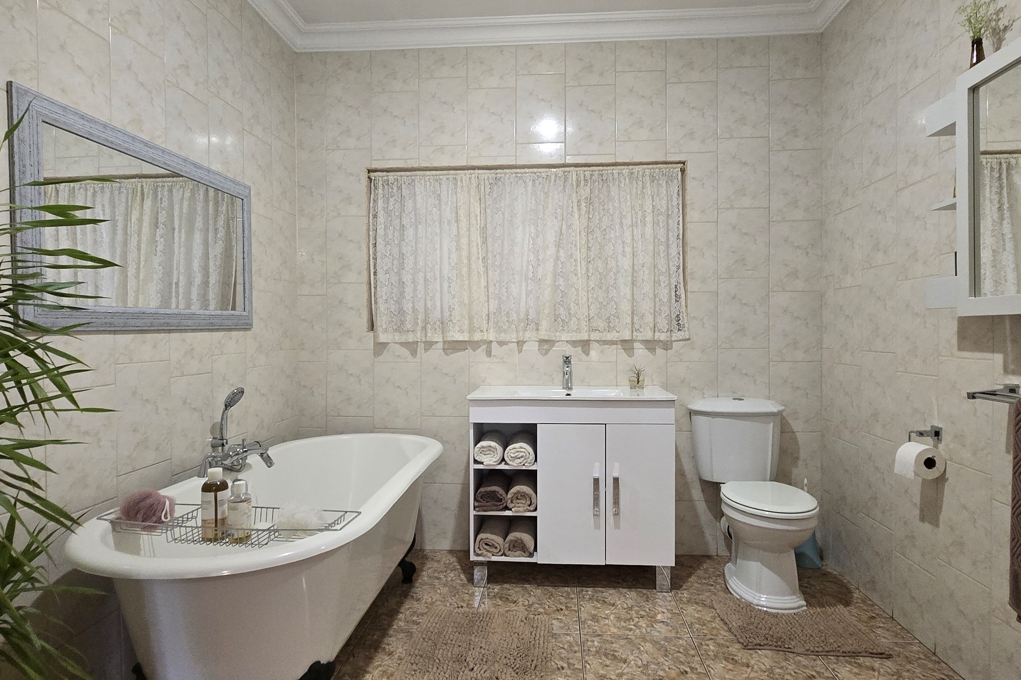 The main bedroom boasts a serene en-suite bathroom with a clawfoot bath for that spa-like feel.