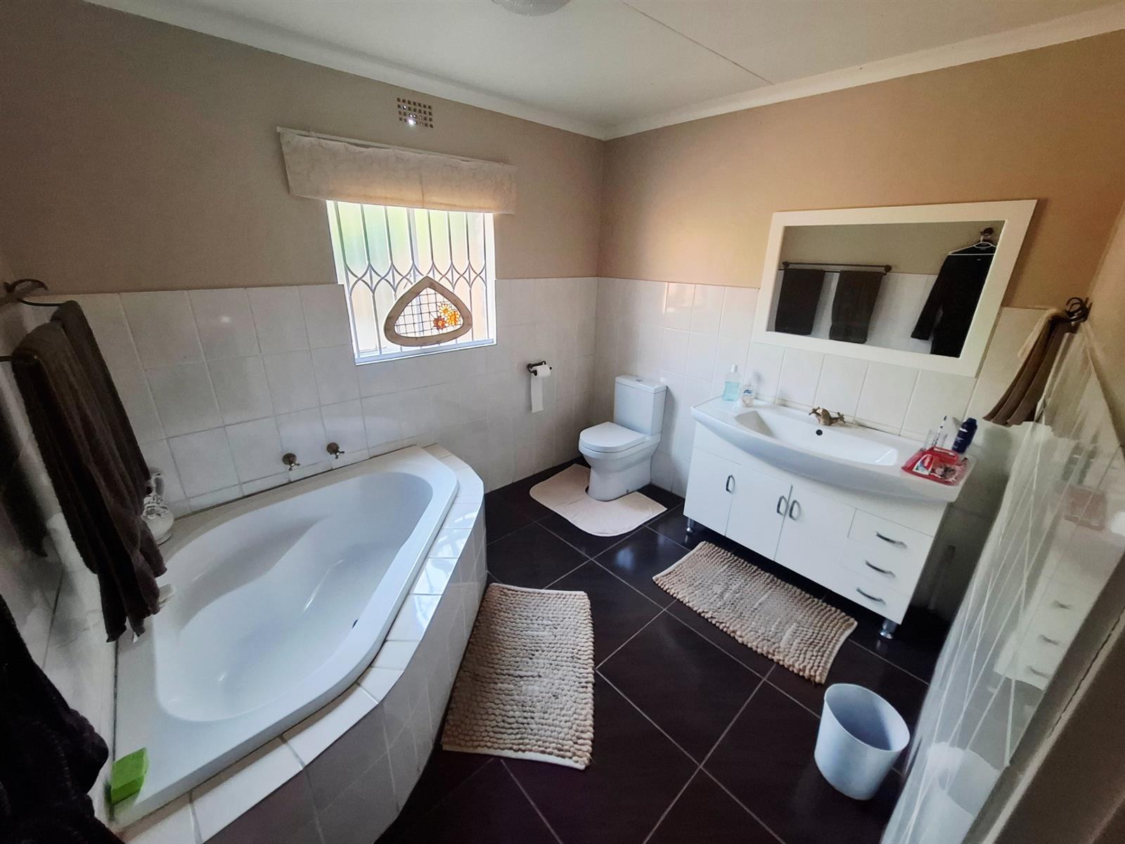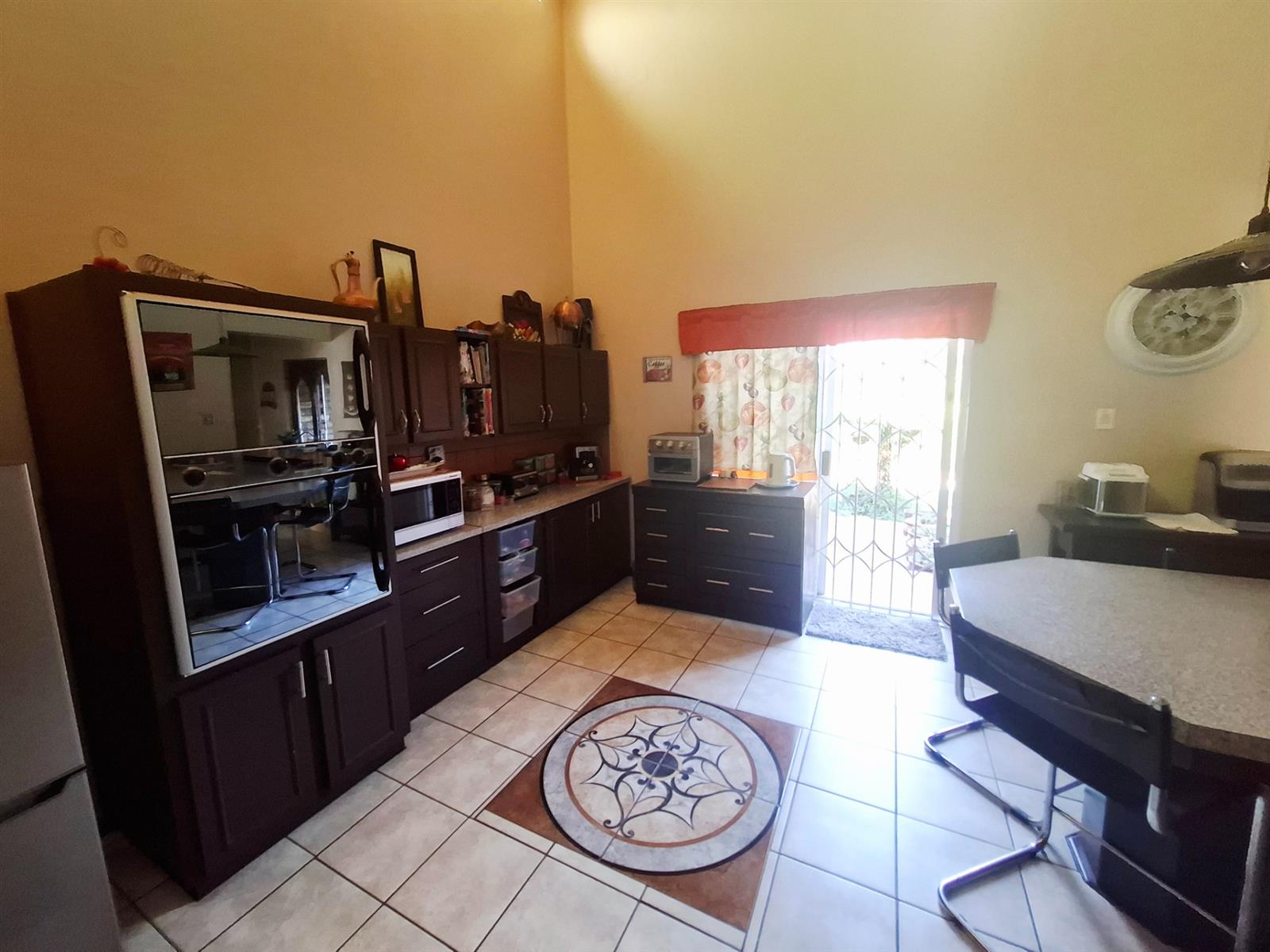 From the moment you arrive, you’re greeted by a motorised gate leading to a large, landscaped garden, lush with greenery, fruit trees, and succulents. The garden is kept vibrant with a manual sprinkler system, making it easy to maintain throughout the year. The home is fully secured with palisade fencing, burglar bars, and Trellidor security doors on most windows and doors, offering peace of mind and privacy.