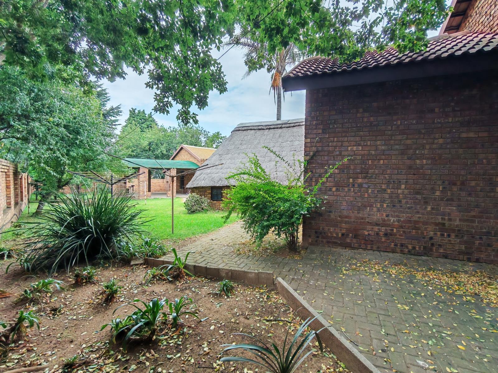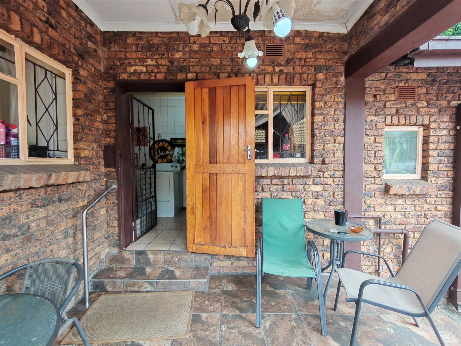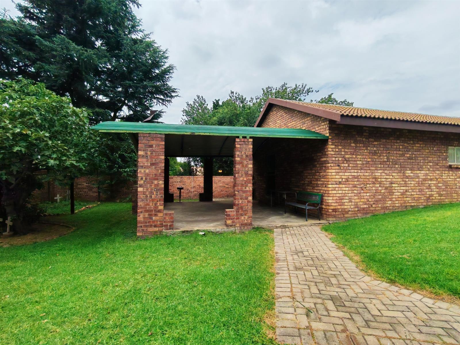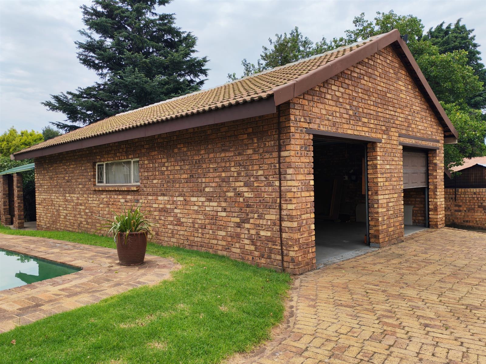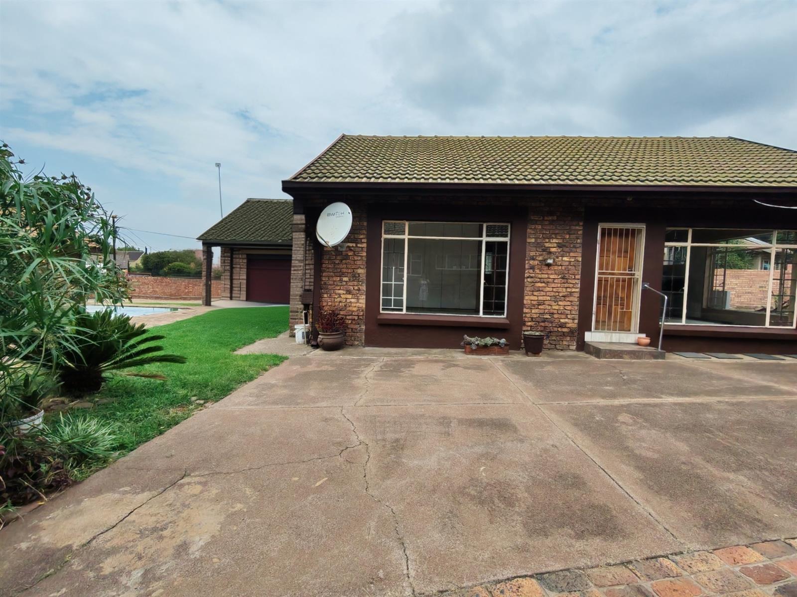 Upon entering through the majestic security gates, you will find the main house on your left and the flat on your right. There is also a sparkling pool, lapa, covered braai area and a garage with entertainment area as well as several parking spaces on the stand.