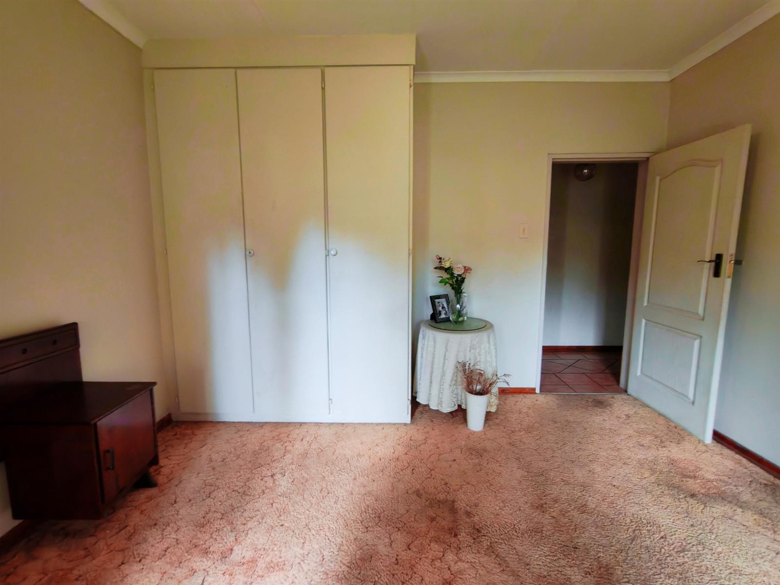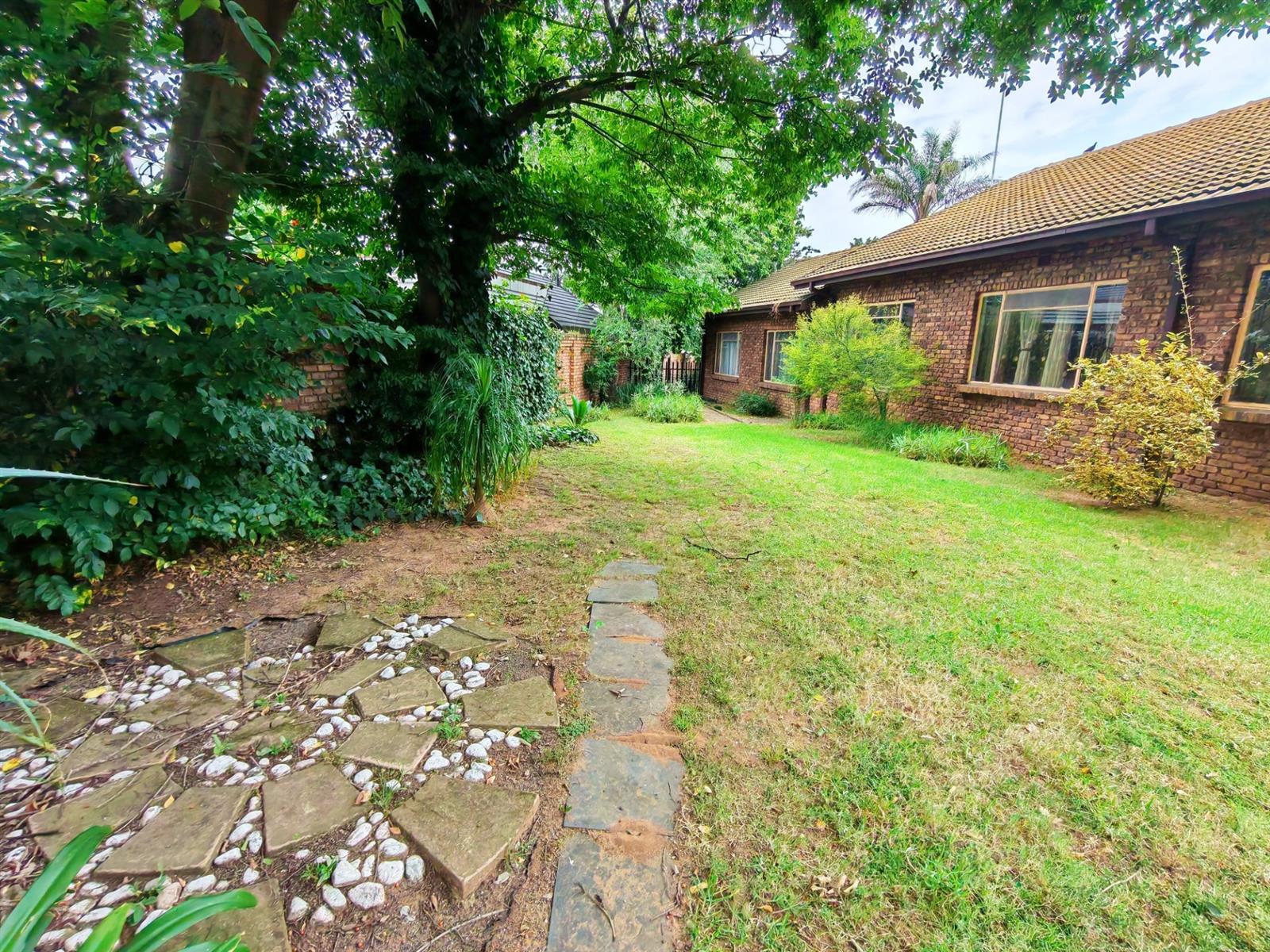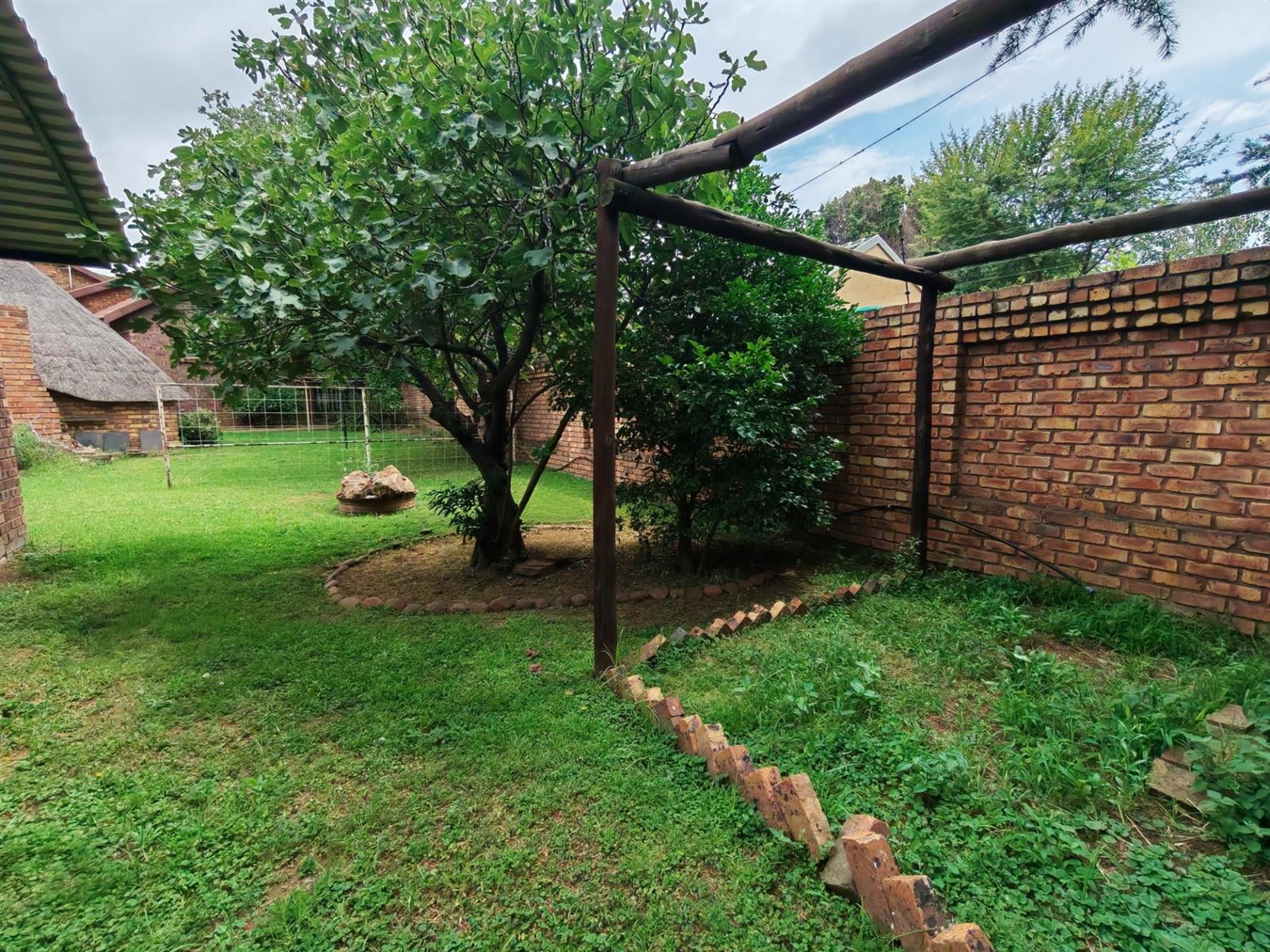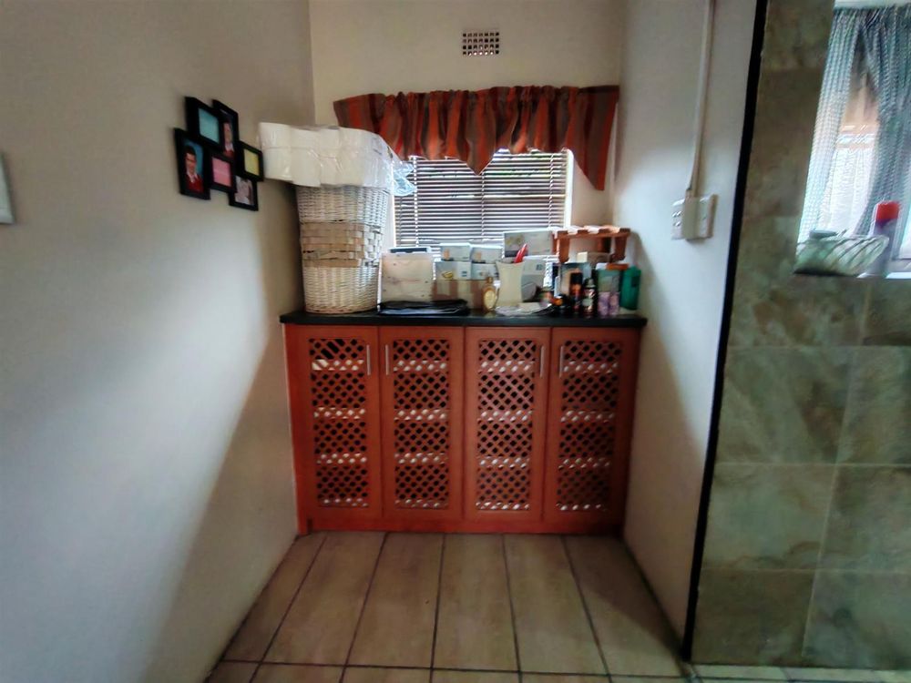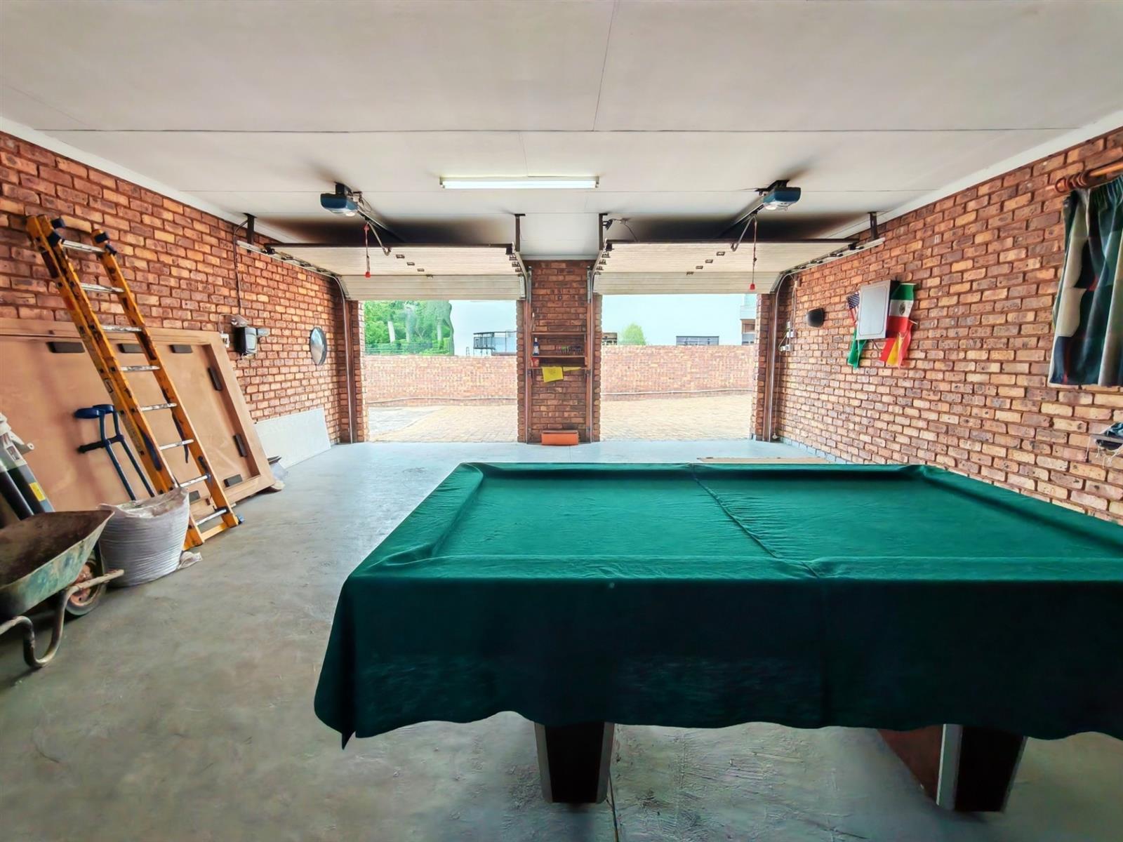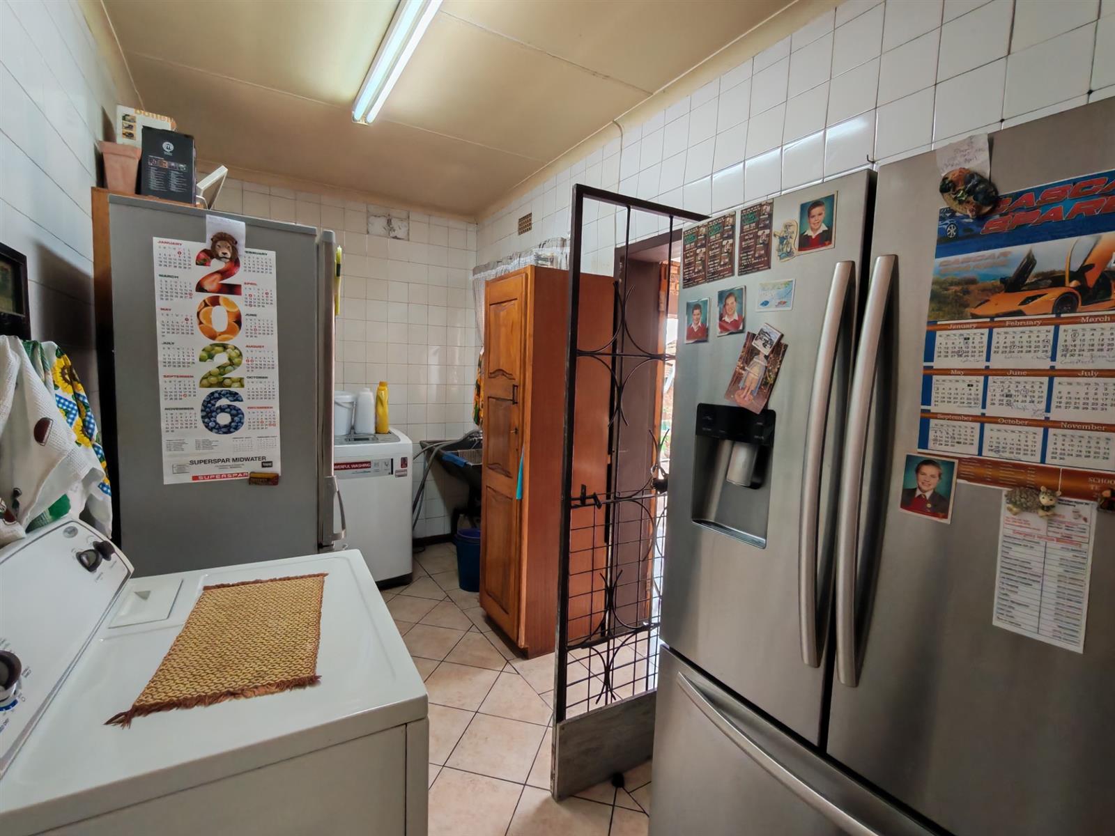 Upon entering through the majestic security gates, you will find the main house on your left and the flat on your right. There is also a sparkling pool, lapa, covered braai area and a garage with entertainment area as well as several parking spaces on the stand.