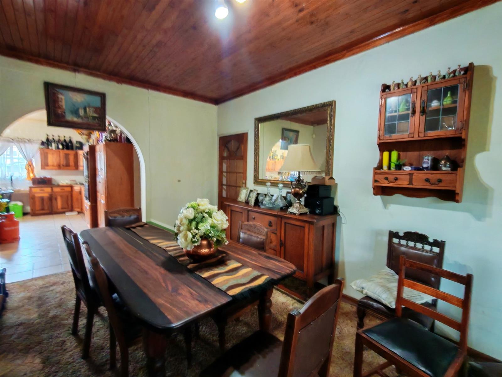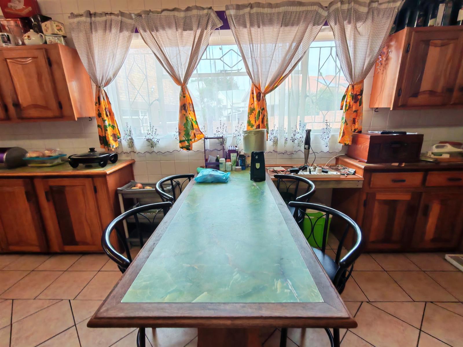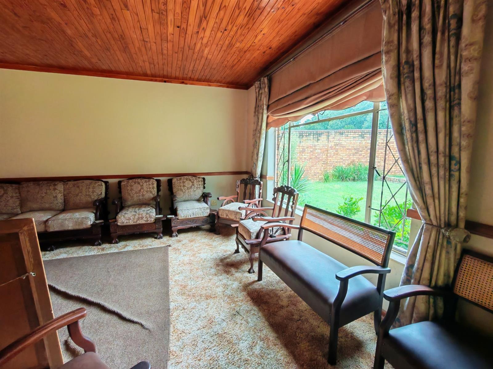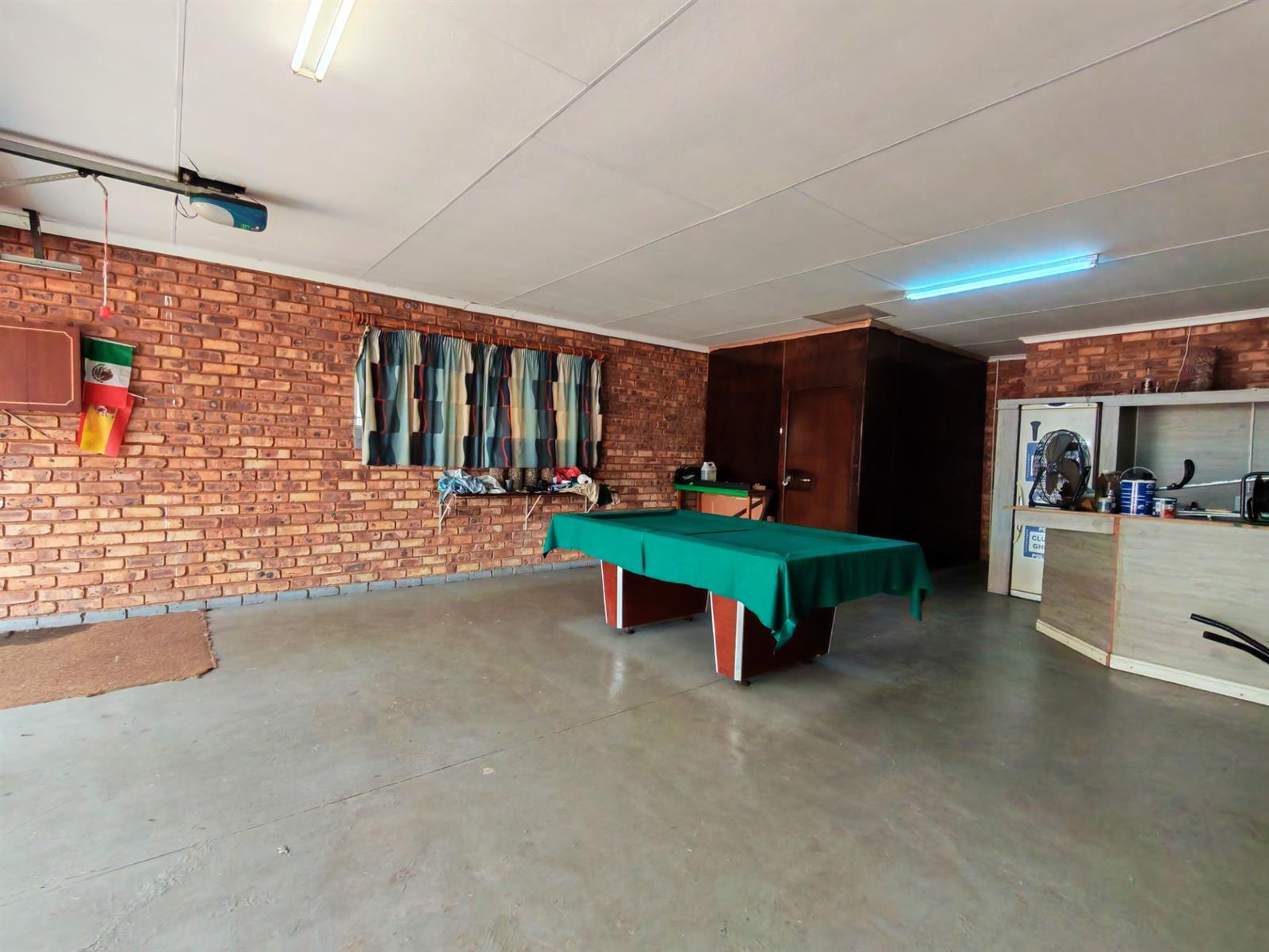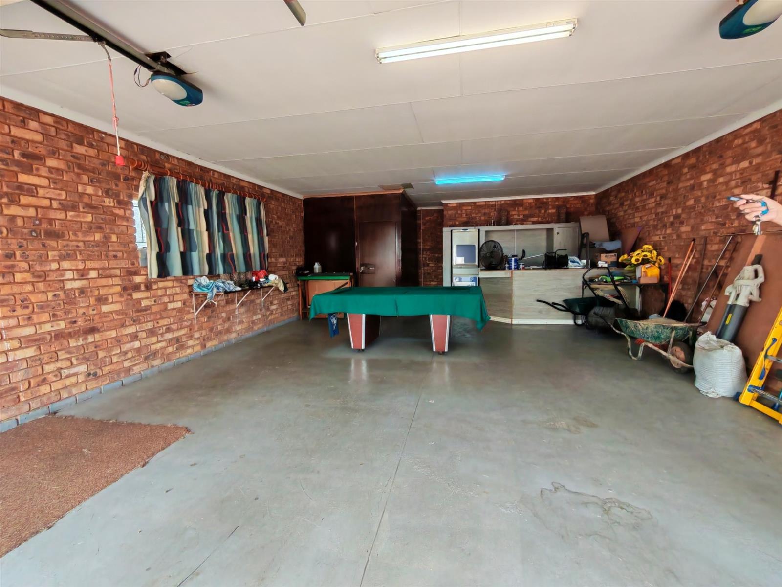 Upon entering through the majestic security gates, you will find the main house on your left and the flat on your right. There is also a sparkling pool, lapa, covered braai area and a garage with entertainment area as well as several parking spaces on the stand.