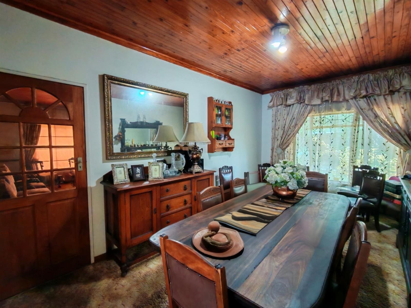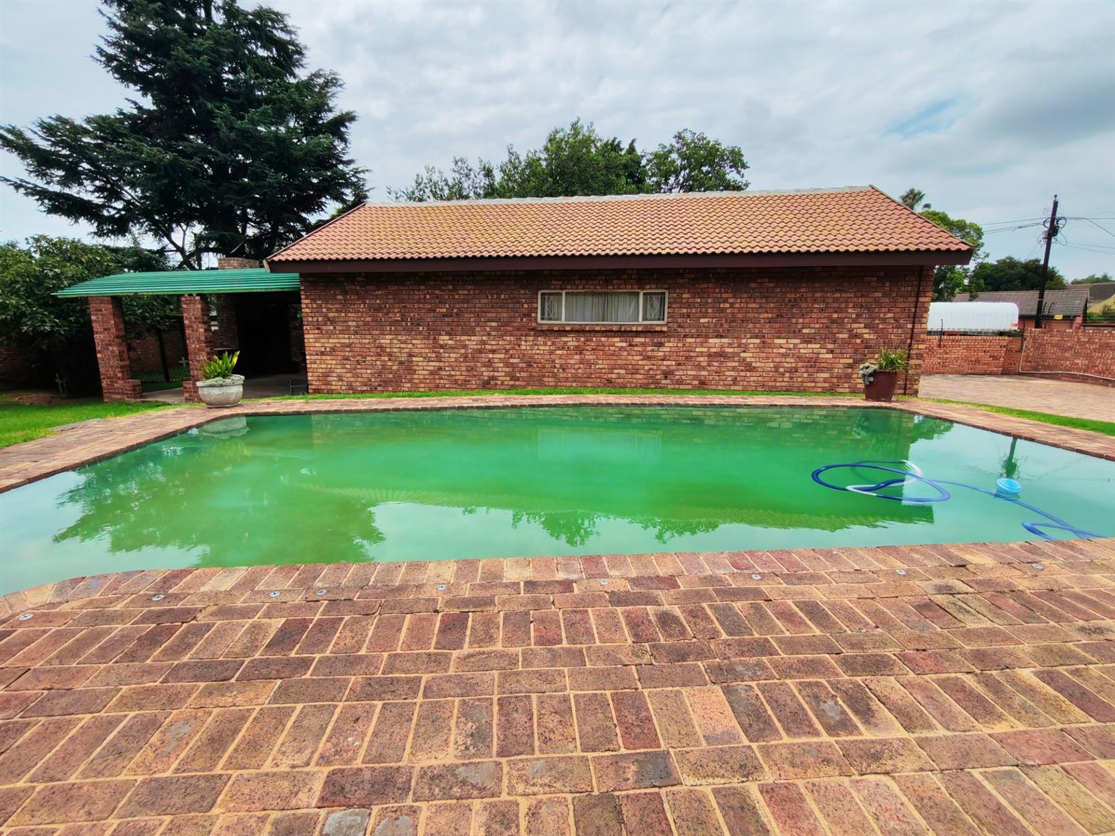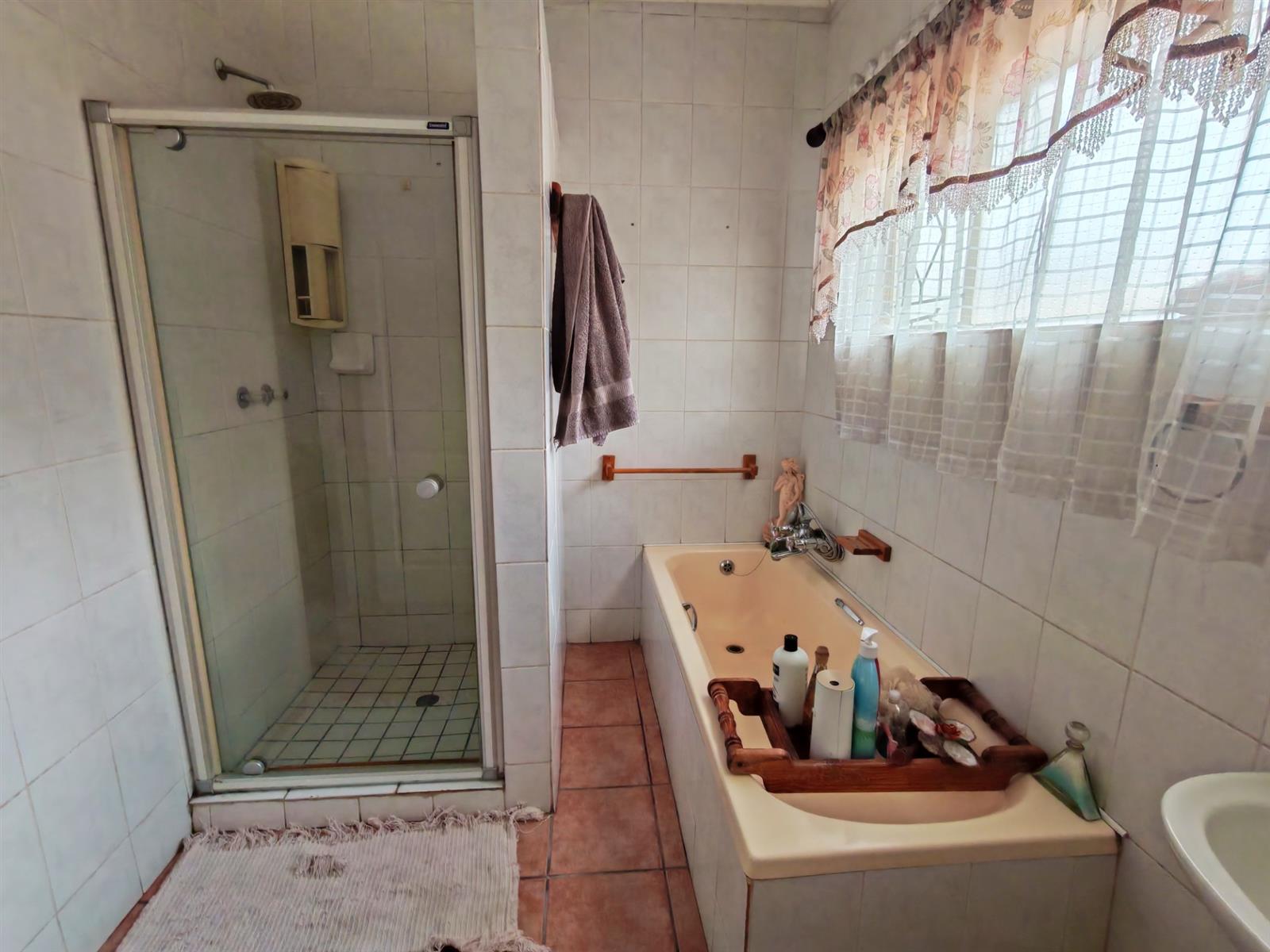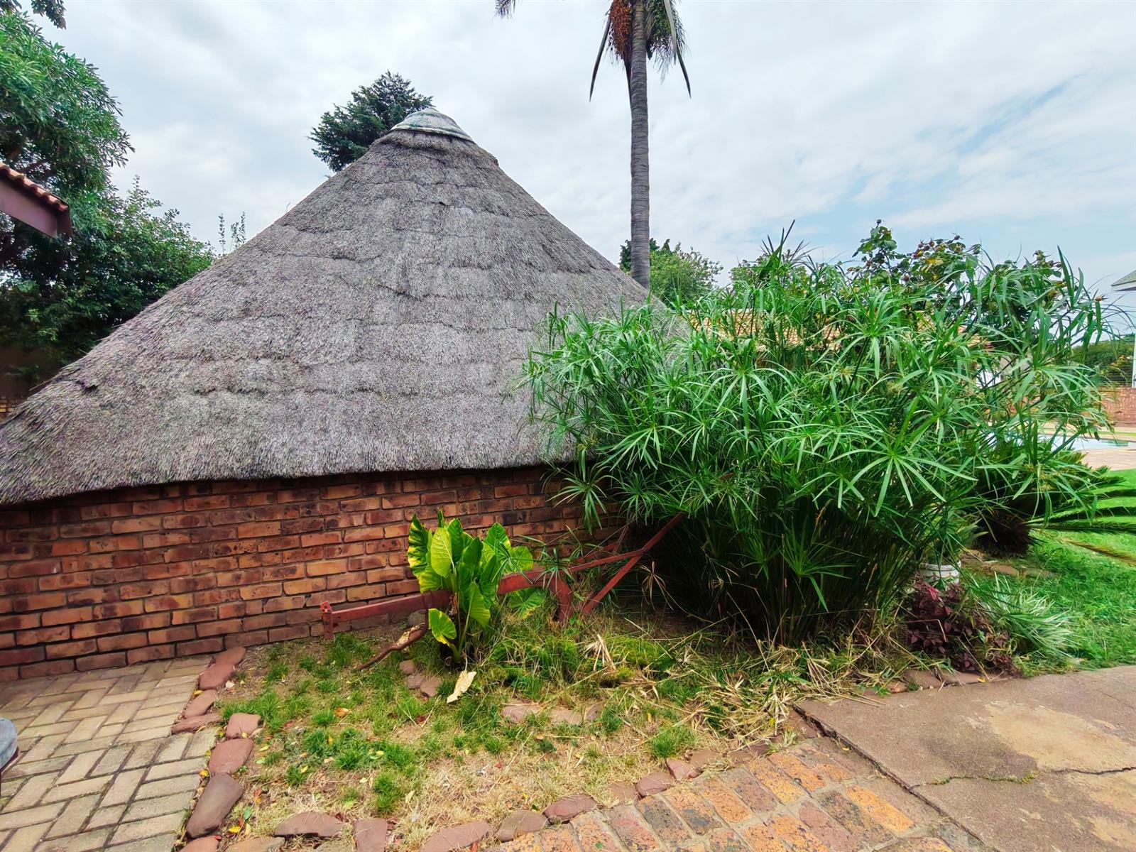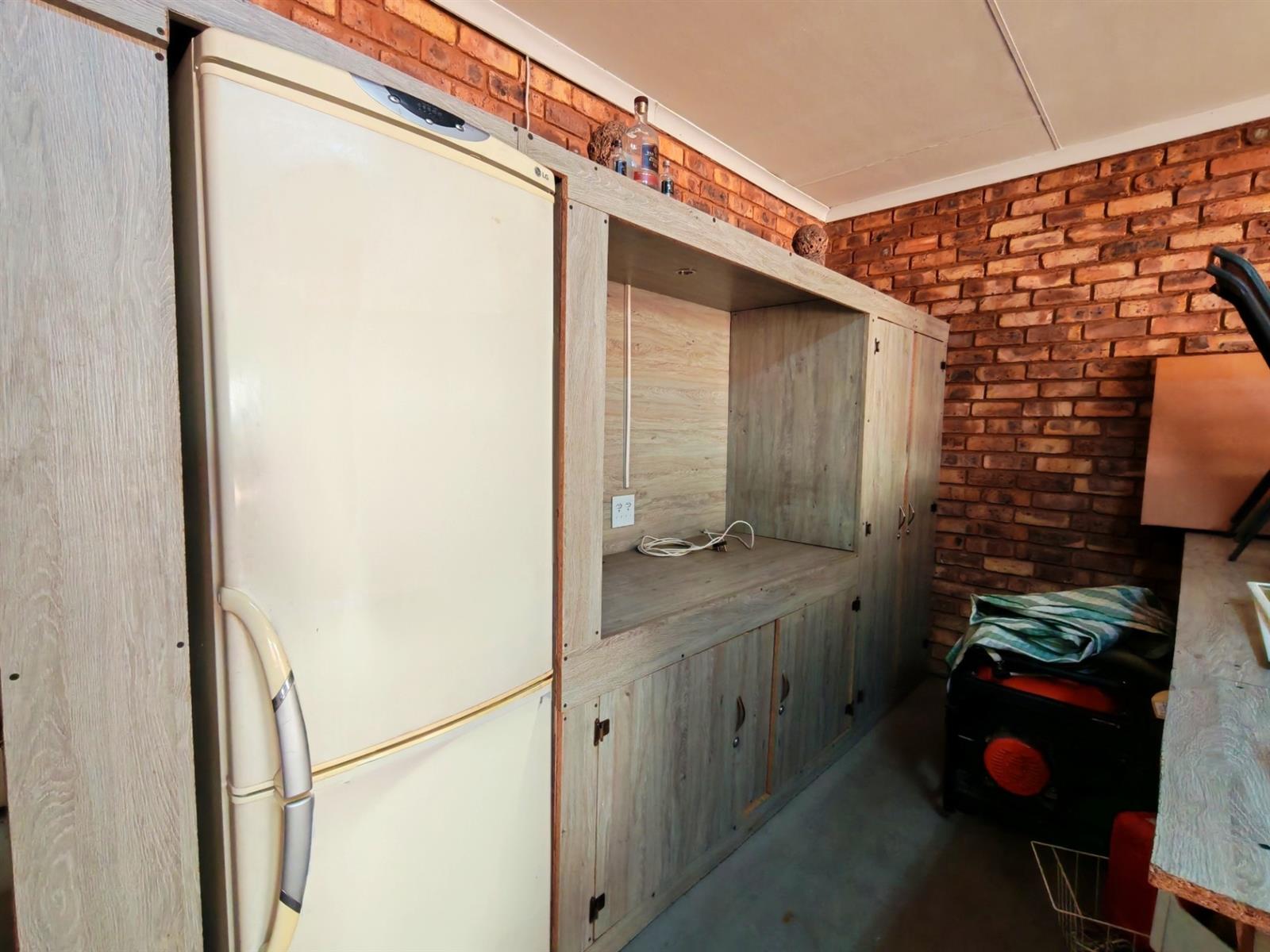 Upon entering through the majestic security gates, you will find the main house on your left and the flat on your right. There is also a sparkling pool, lapa, covered braai area and a garage with entertainment area as well as several parking spaces on the stand.