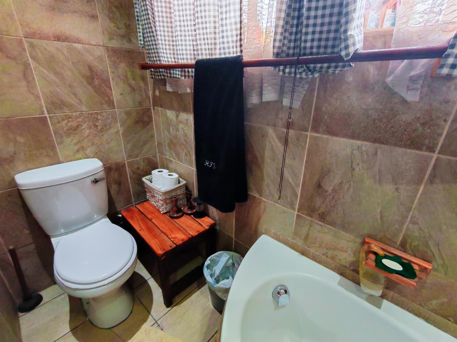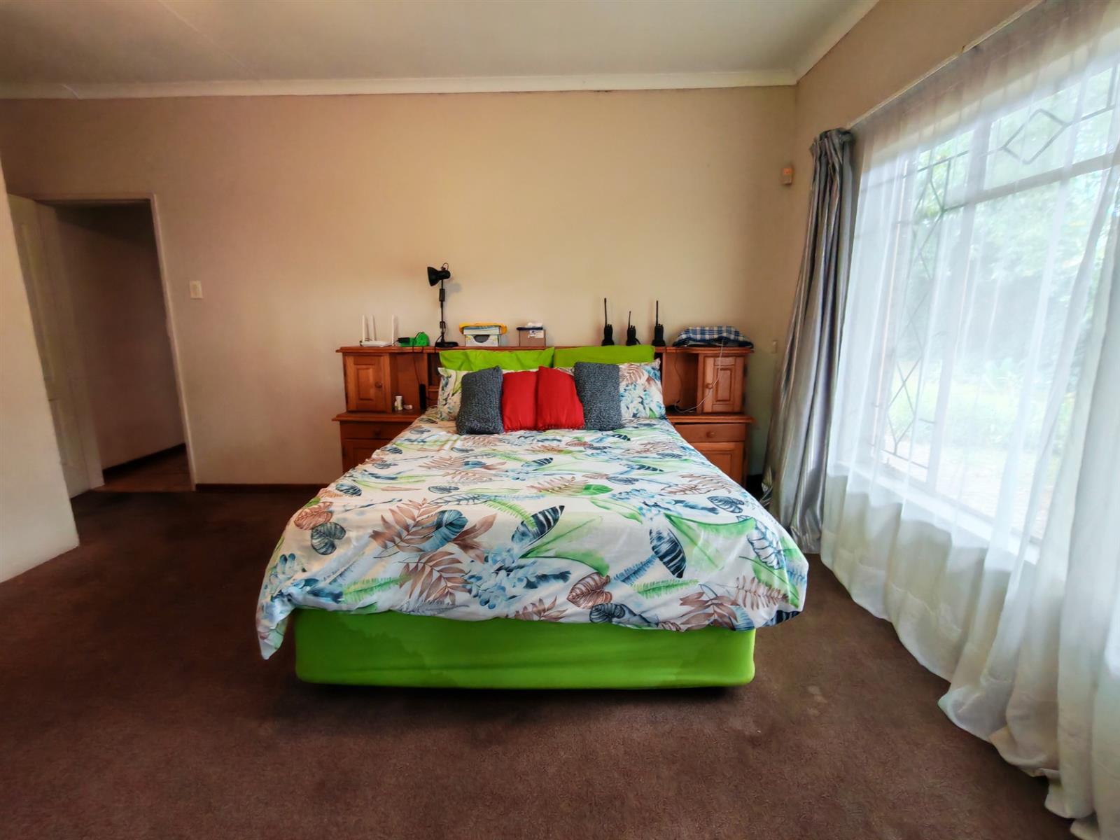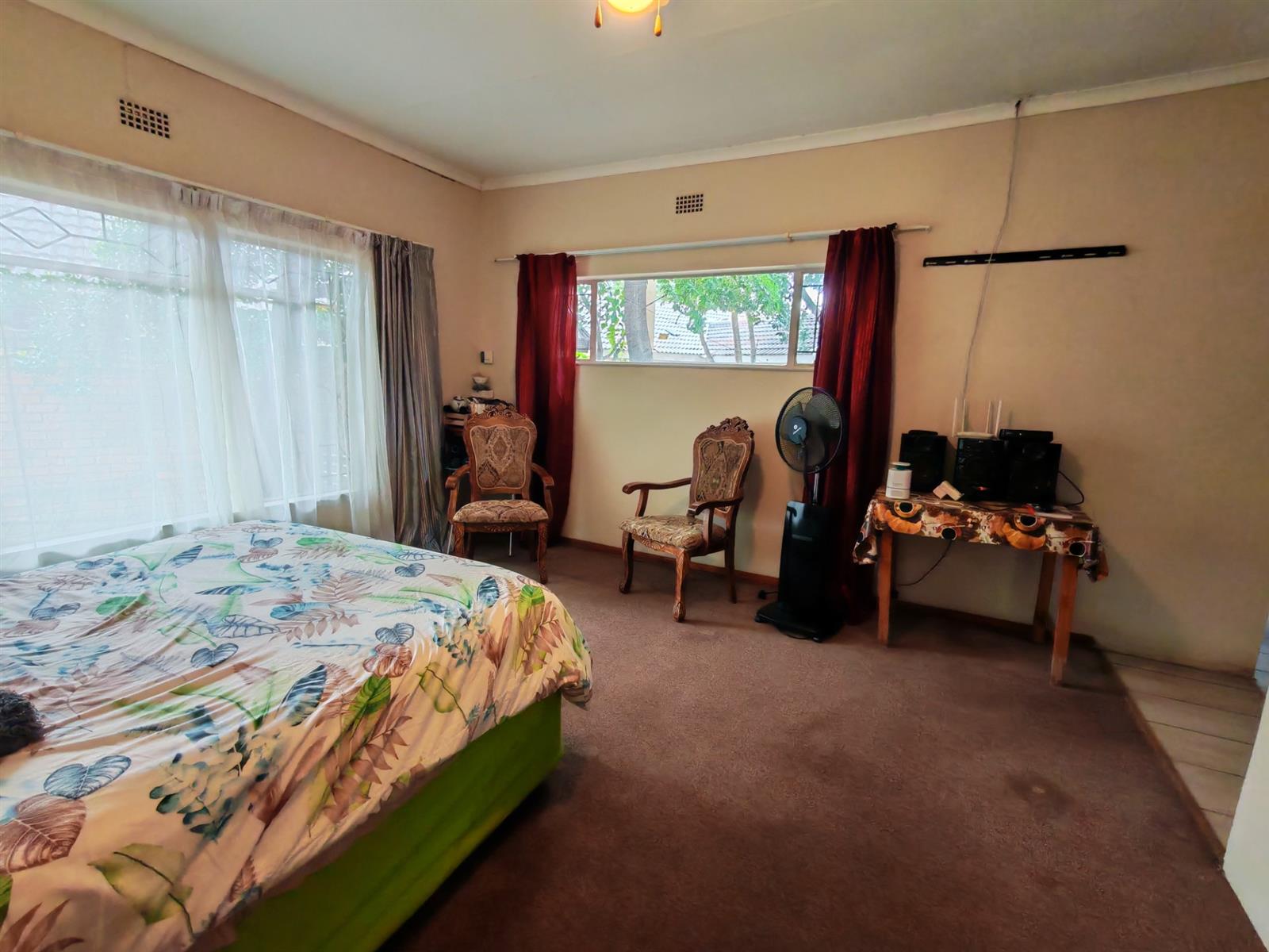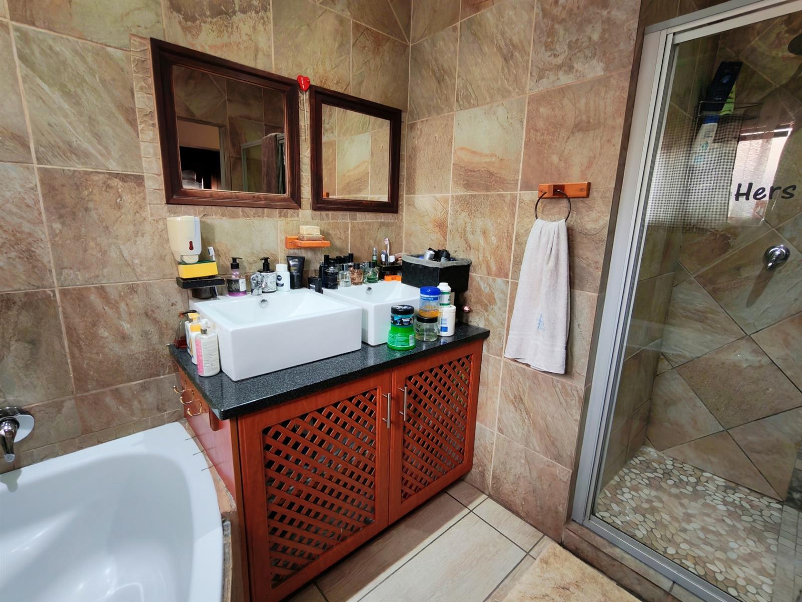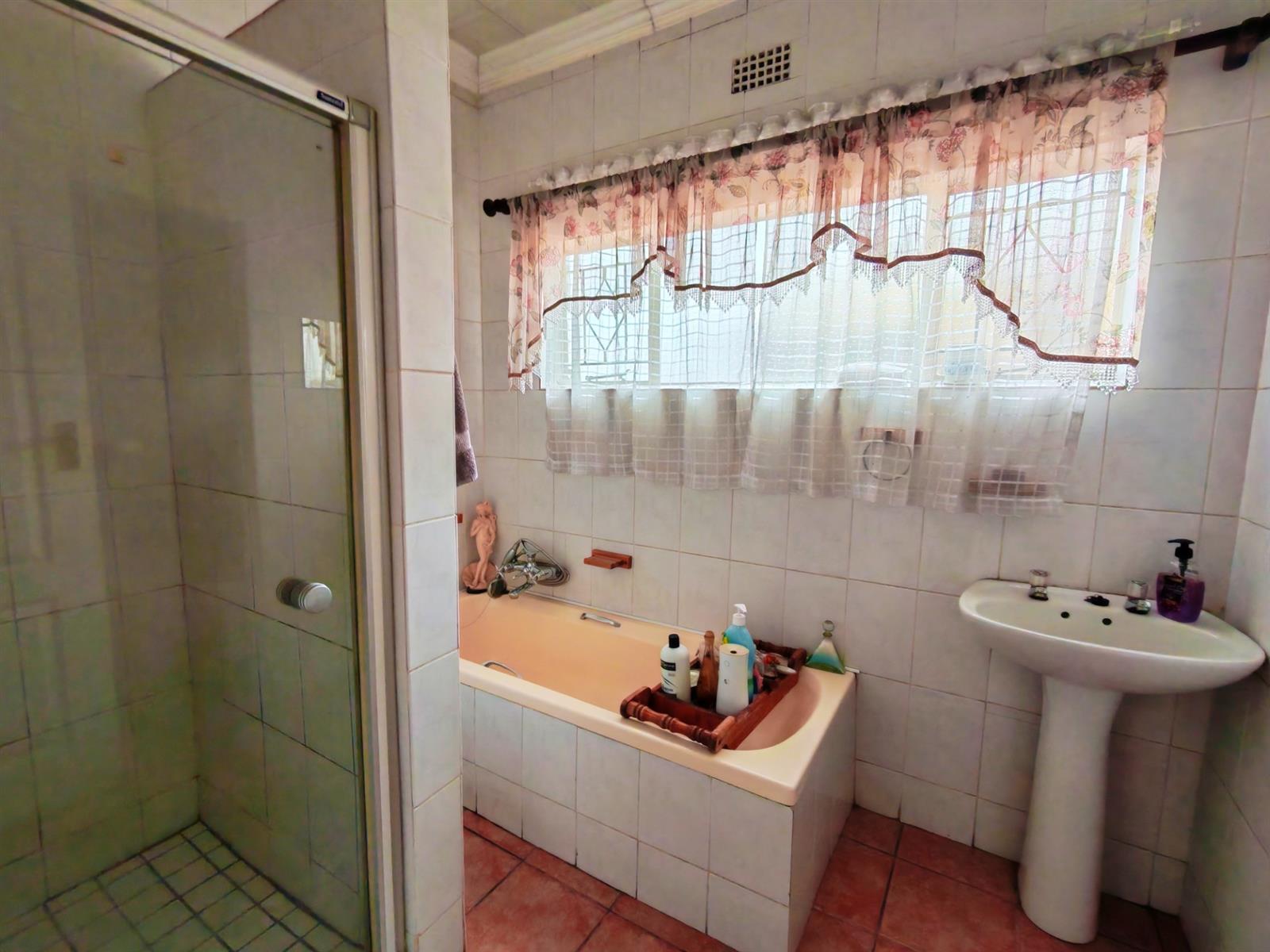 Upon entering through the majestic security gates, you will find the main house on your left and the flat on your right. There is also a sparkling pool, lapa, covered braai area and a garage with entertainment area as well as several parking spaces on the stand.